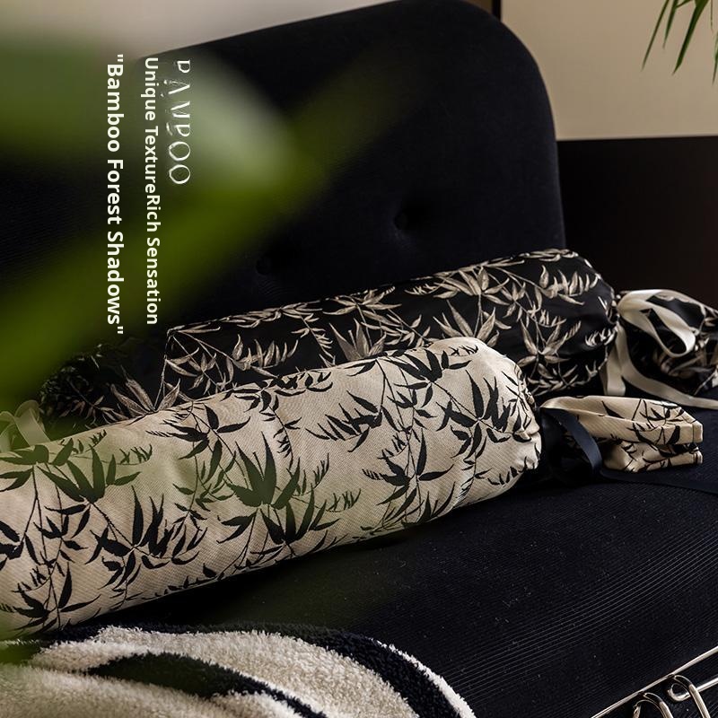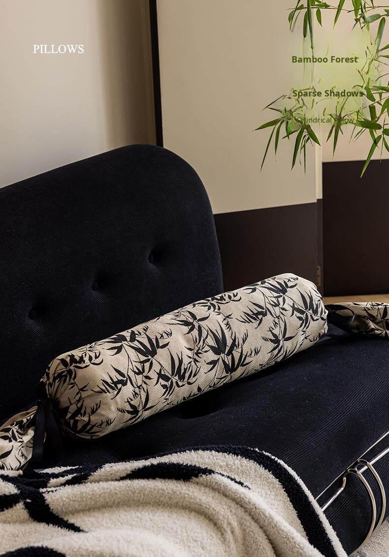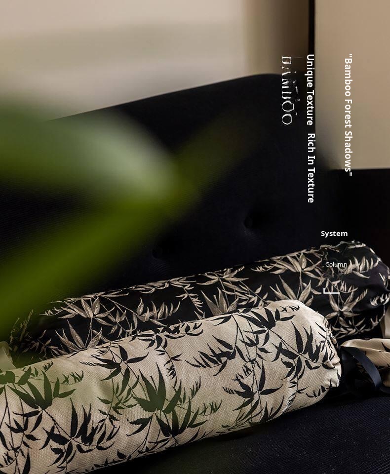 Sparse Bamboo Shadows - White Jade Cylindrical Tie Pillow