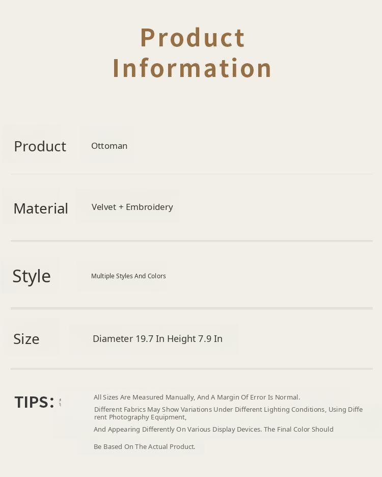 Diameter 19.69in, Height 7.87in [High-Grade Velvet, Fine Embroidery]