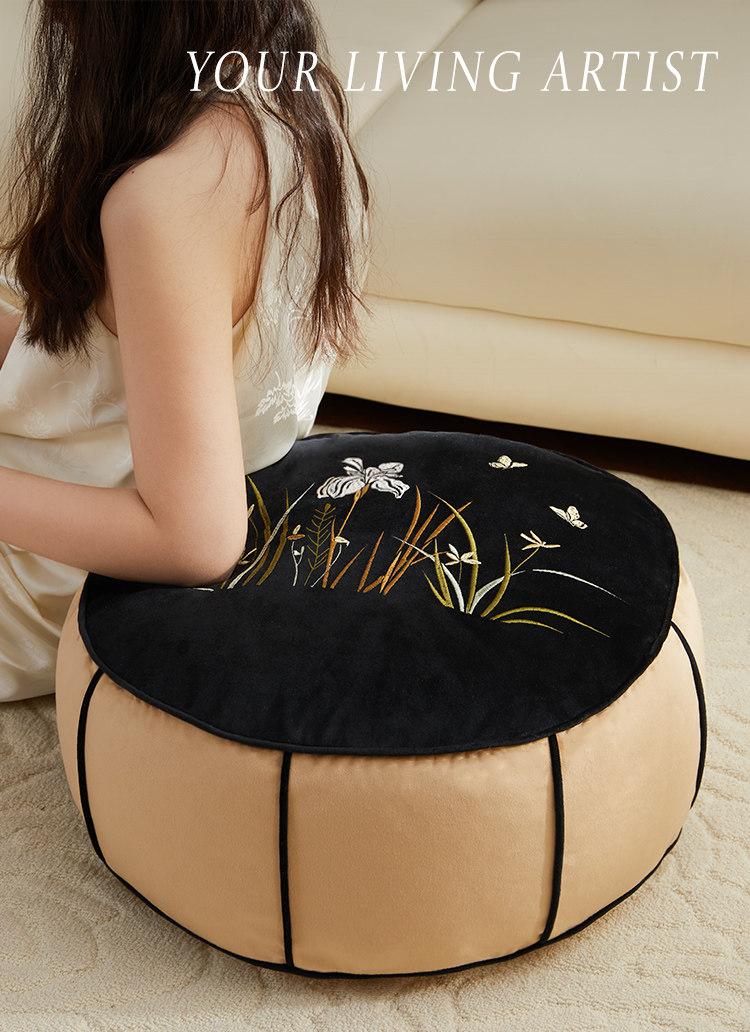 Elegant New Chinese Style Round Thick Cushions for Carpets – Vintage-Inspired Tatami Footstools and Window Seat Pads with High Aesthetic Appeal