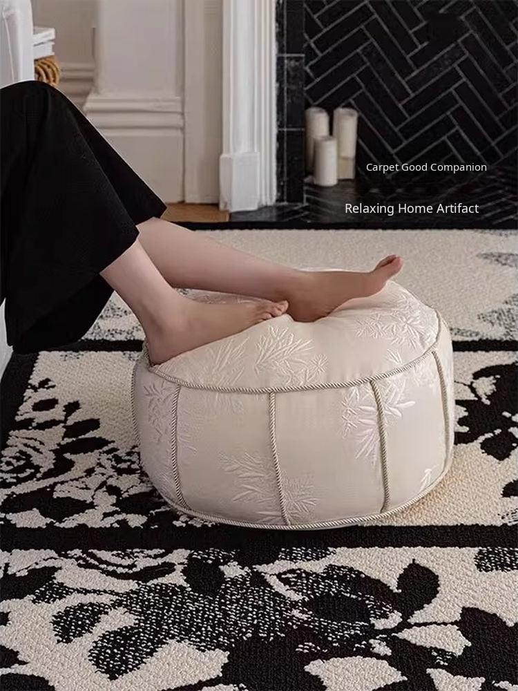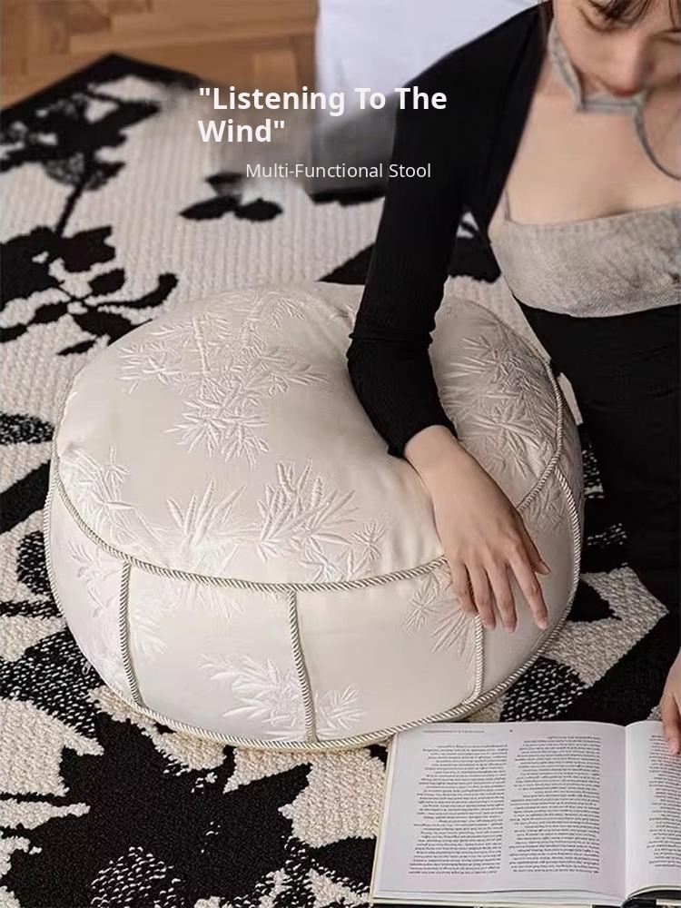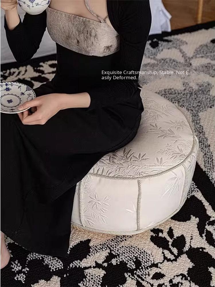 Elegant New Chinese Style Sofa Stool for Living Room - Luxurious and Removable Floor Cushion, Perfect for Lazy Days and French Tatami Decor.