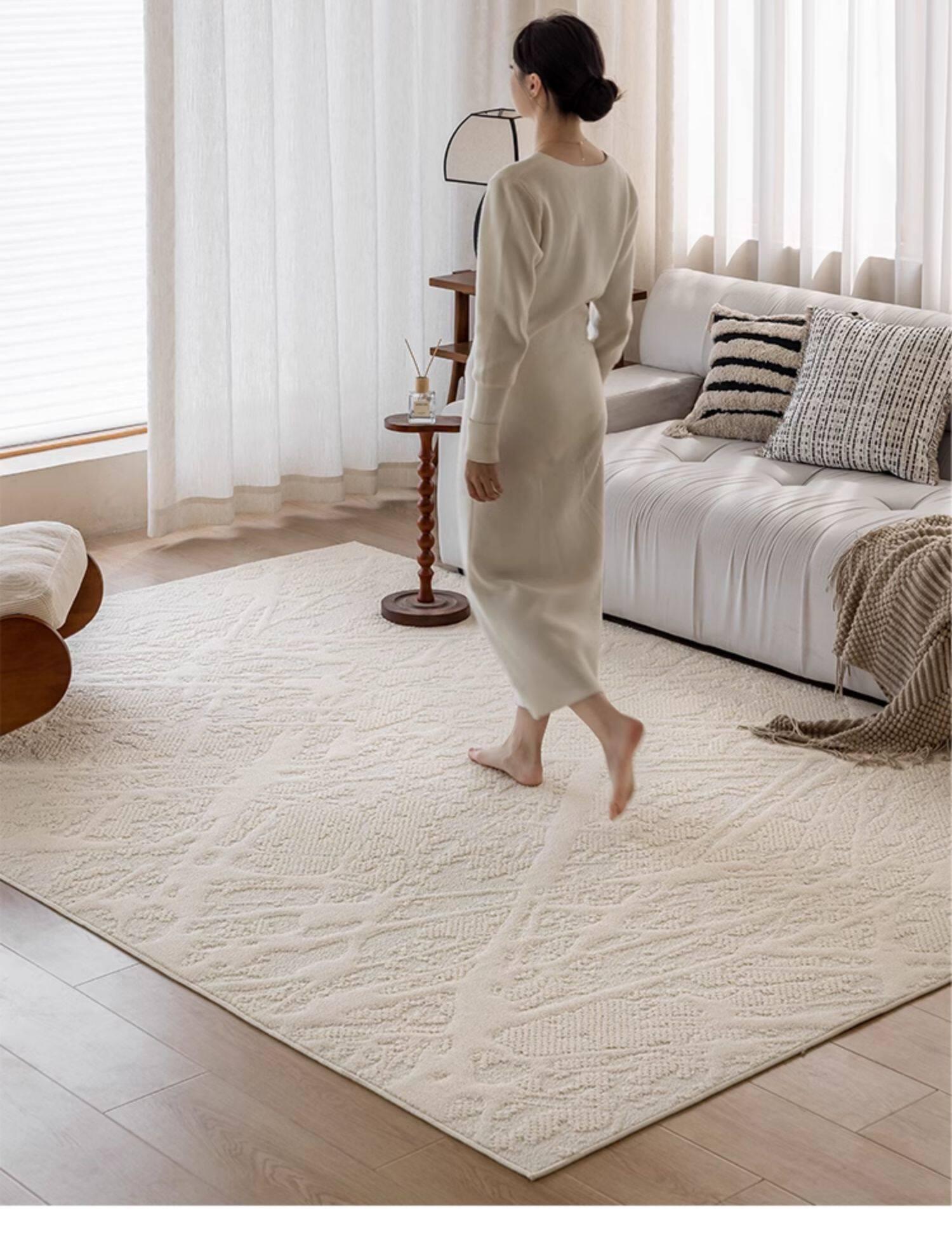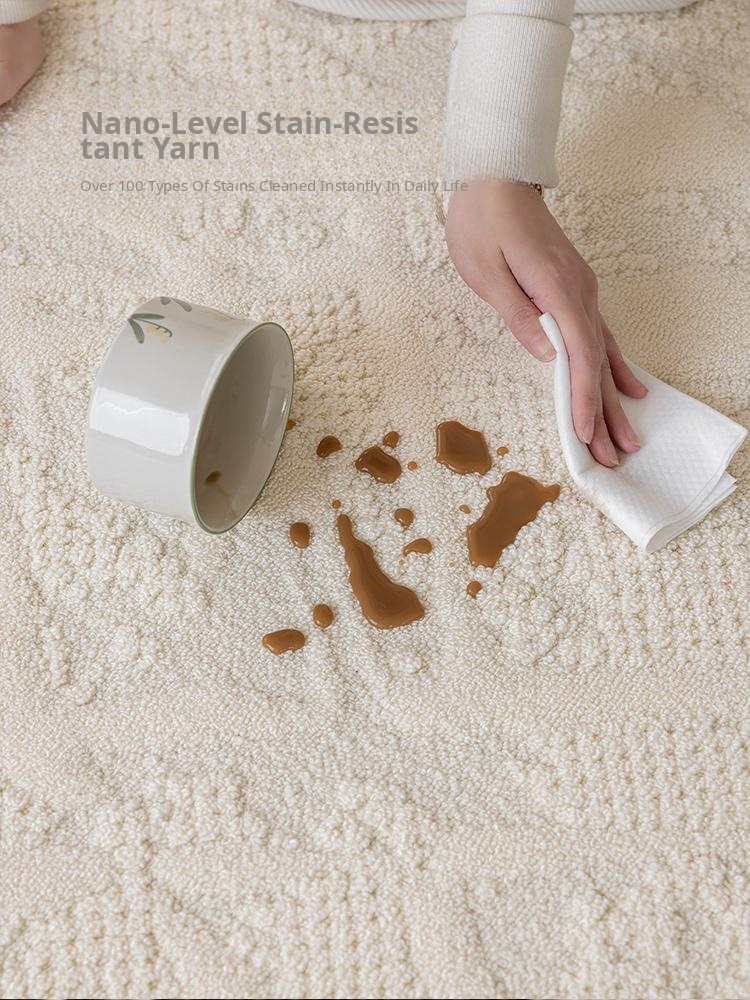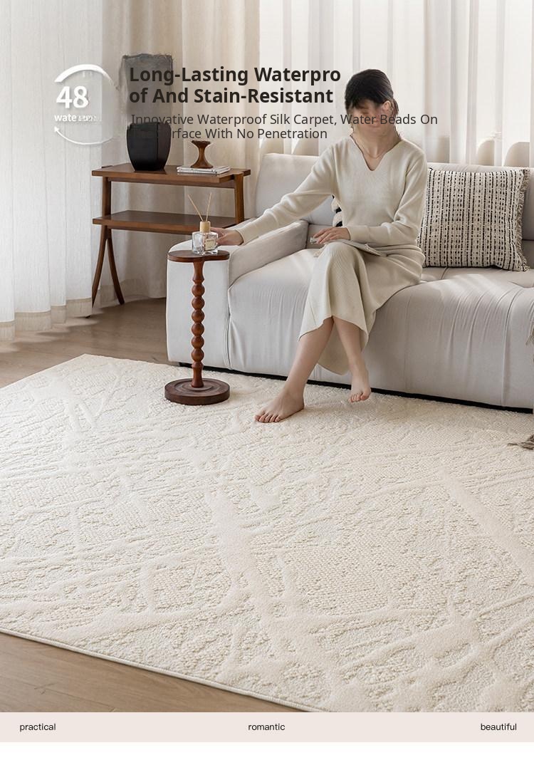 French Cream Style Living Room Rug - Waterproof, Stain-Resistant, and Easy to Clean. Thickened for Soundproofing, Perfect for Coffee Tables and Sofas, Adding a Touch of Elegance to Your Home Decor.