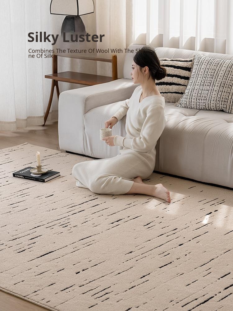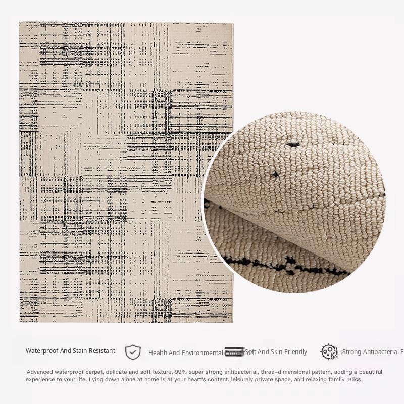 French Cream Style Waterproof and Stain-Resistant Living Room Carpet - No Maintenance Needed, Thickened Soundproof Area Rug for Sofa and Coffee Table, Perfect Bedroom Bedside Blanket