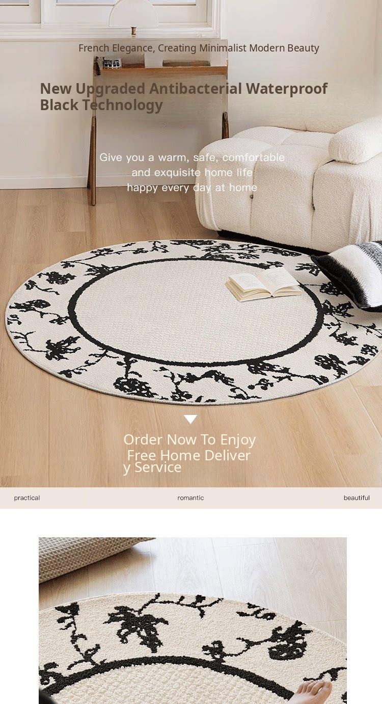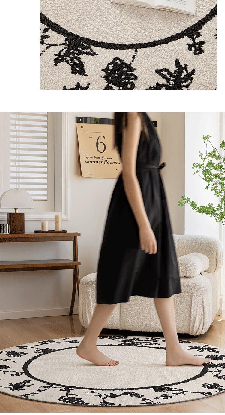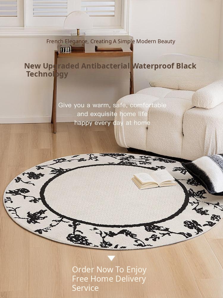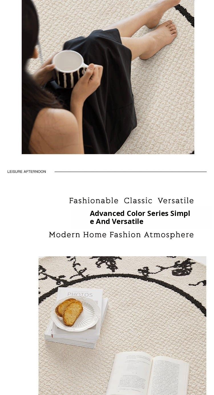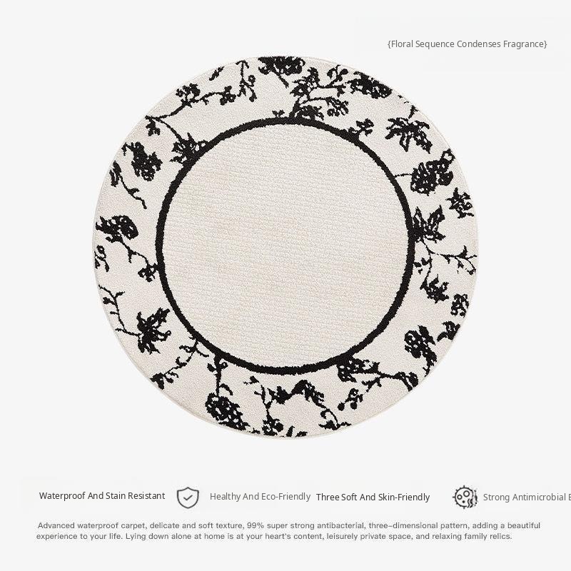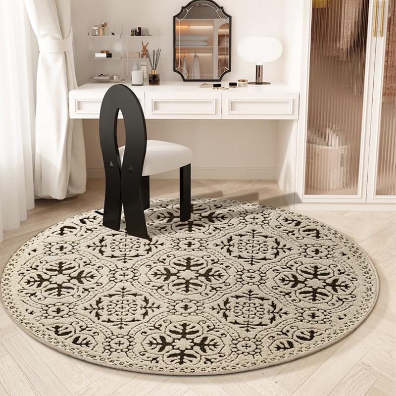French Cream-Style Round Rug - Waterproof and Stain-Resistant Area Mat for Bedroom, Closet, Computer Chair, Sofa, and Coffee Table. Perfect for Any Home Décor!