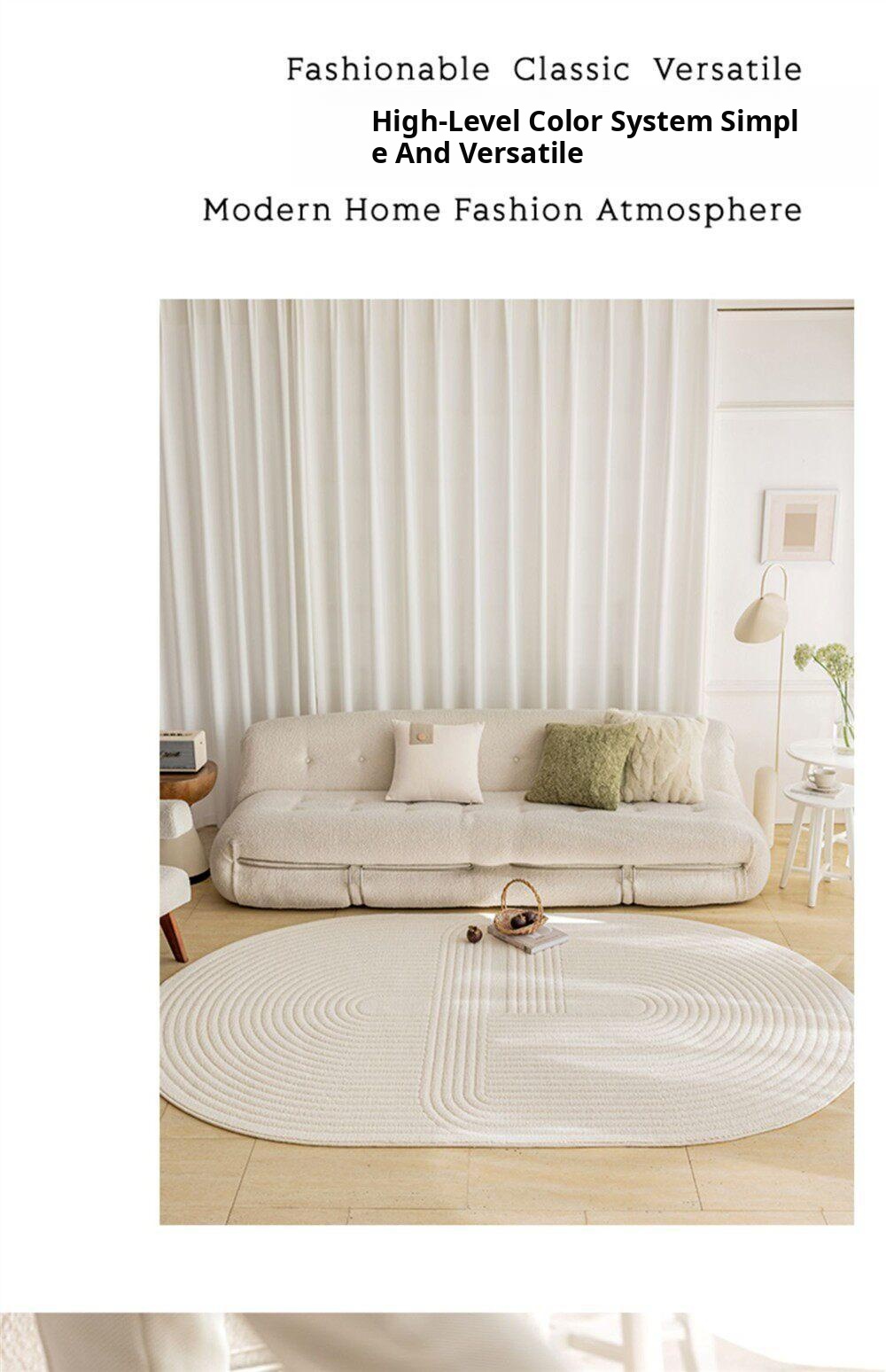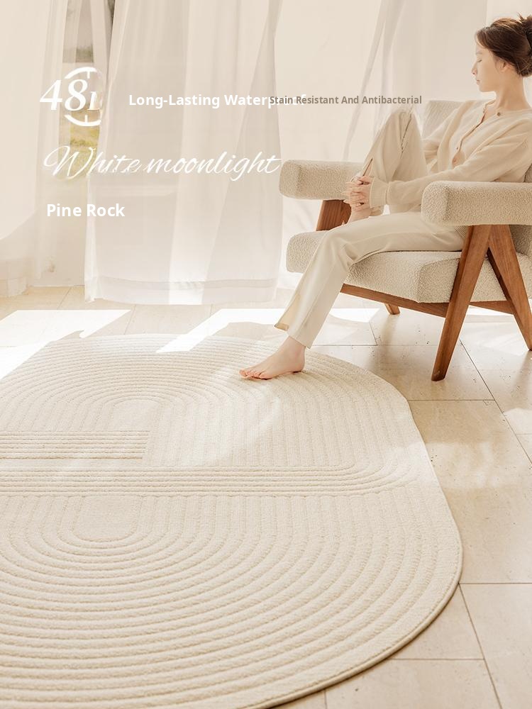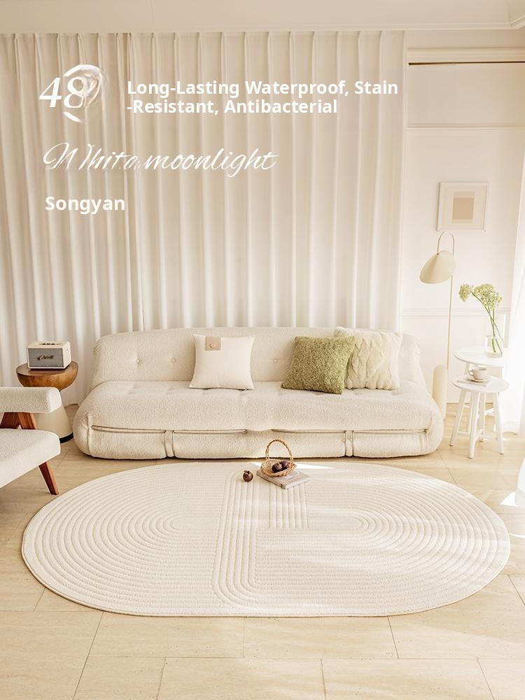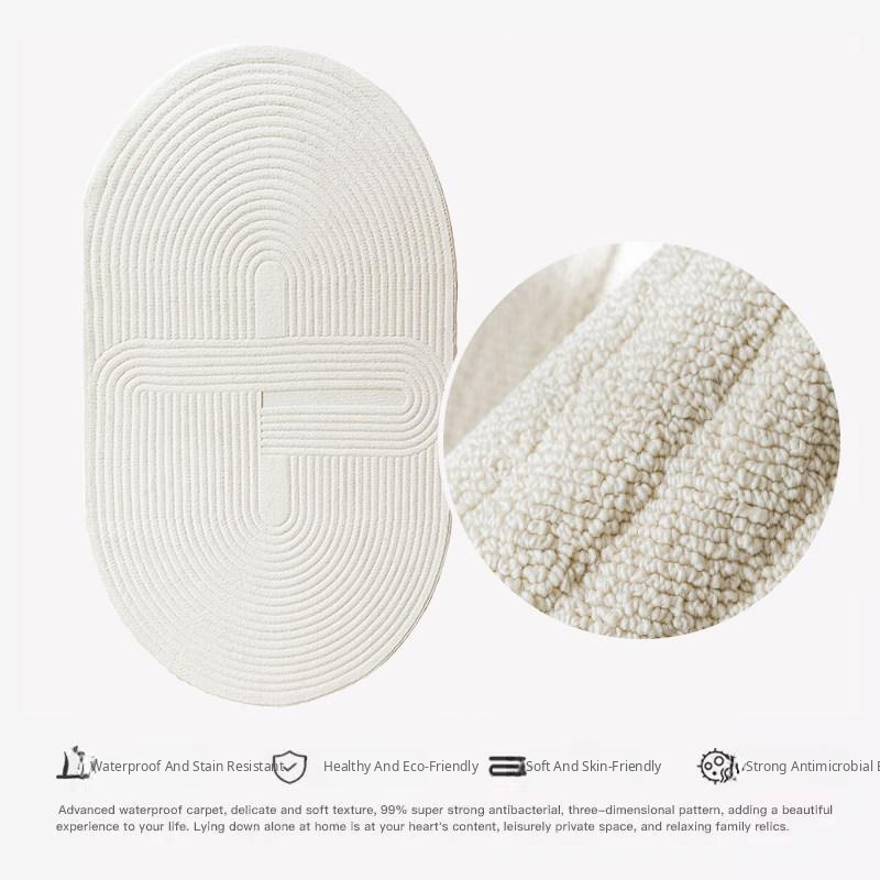 French Waterproof and Stain-Resistant Oval Living Room Carpet - Luxurious Creamy Irregular Design for Sofa and Coffee Table, Soundproof Bedside Mat