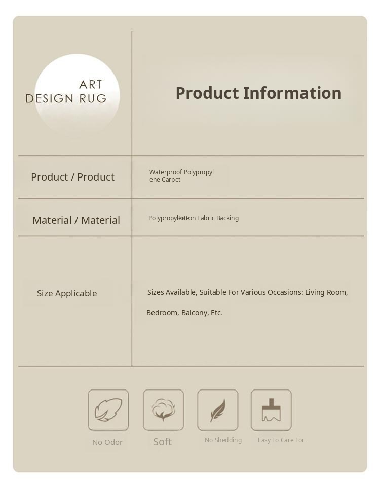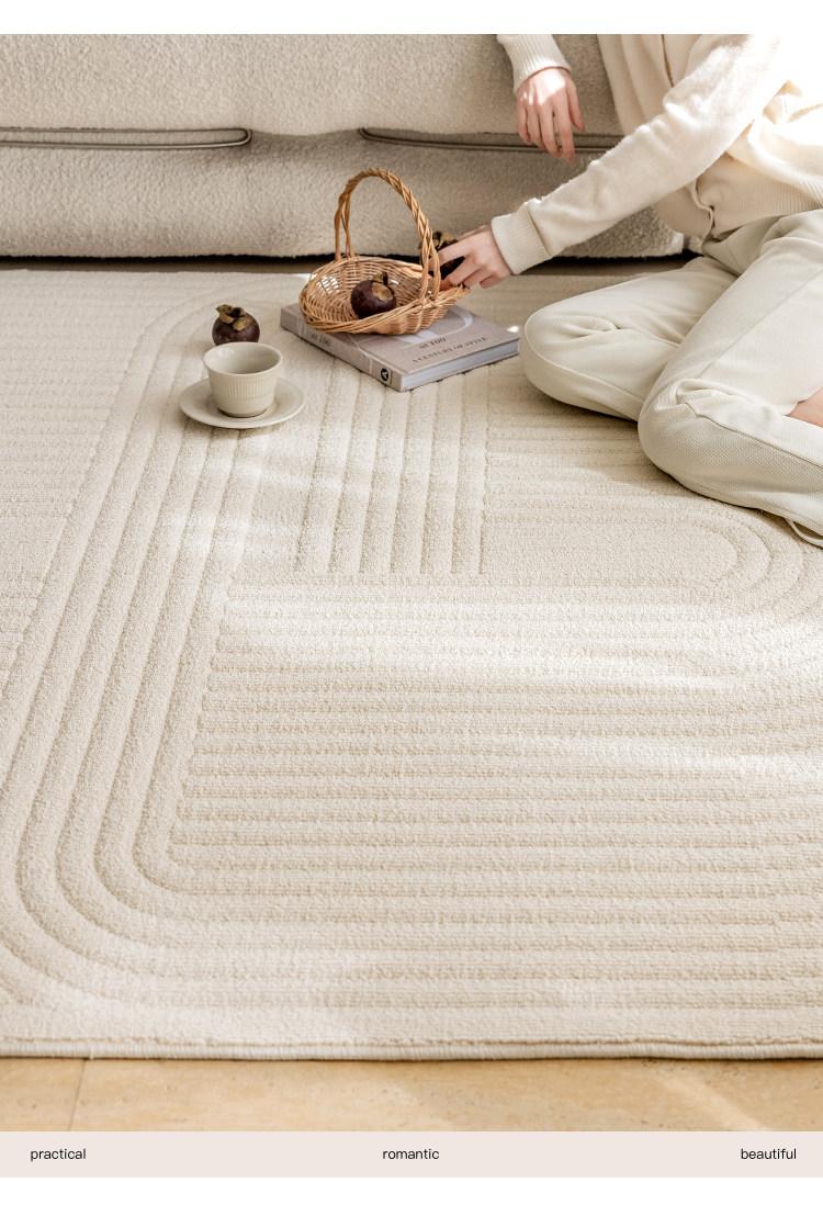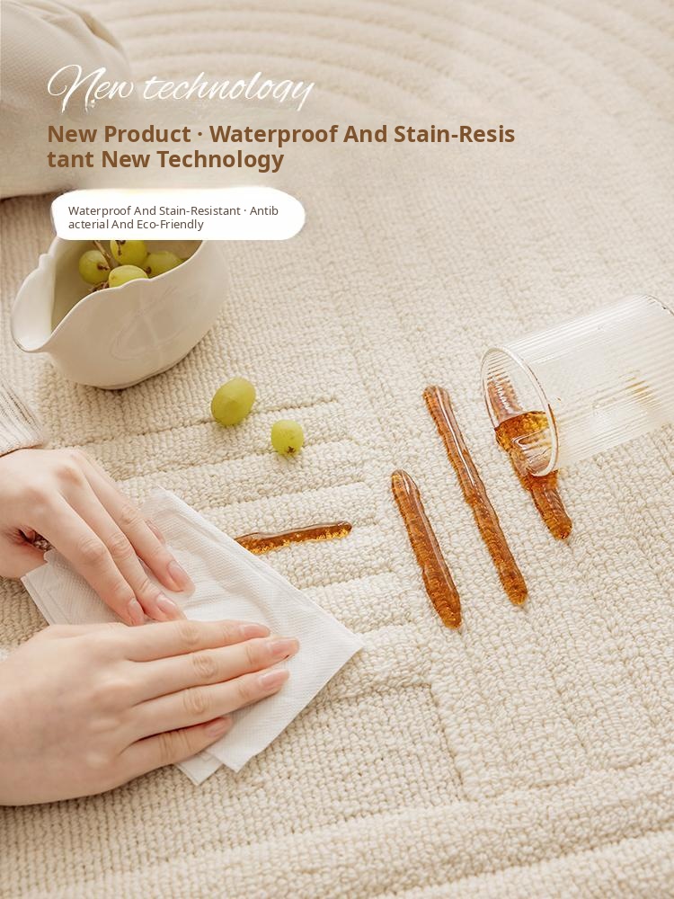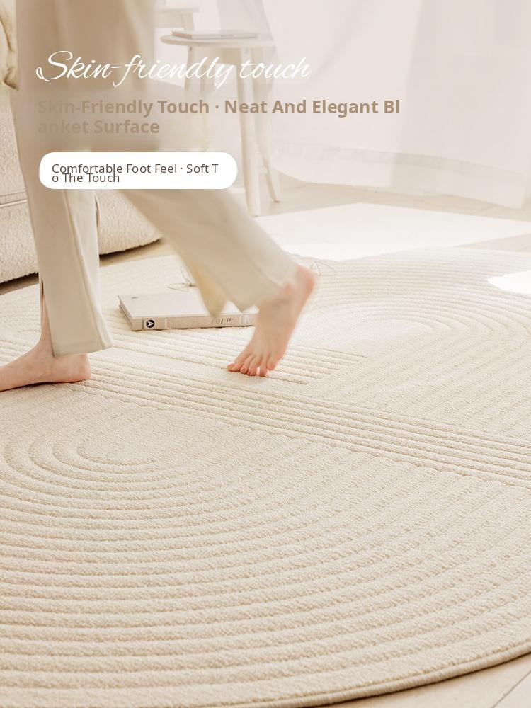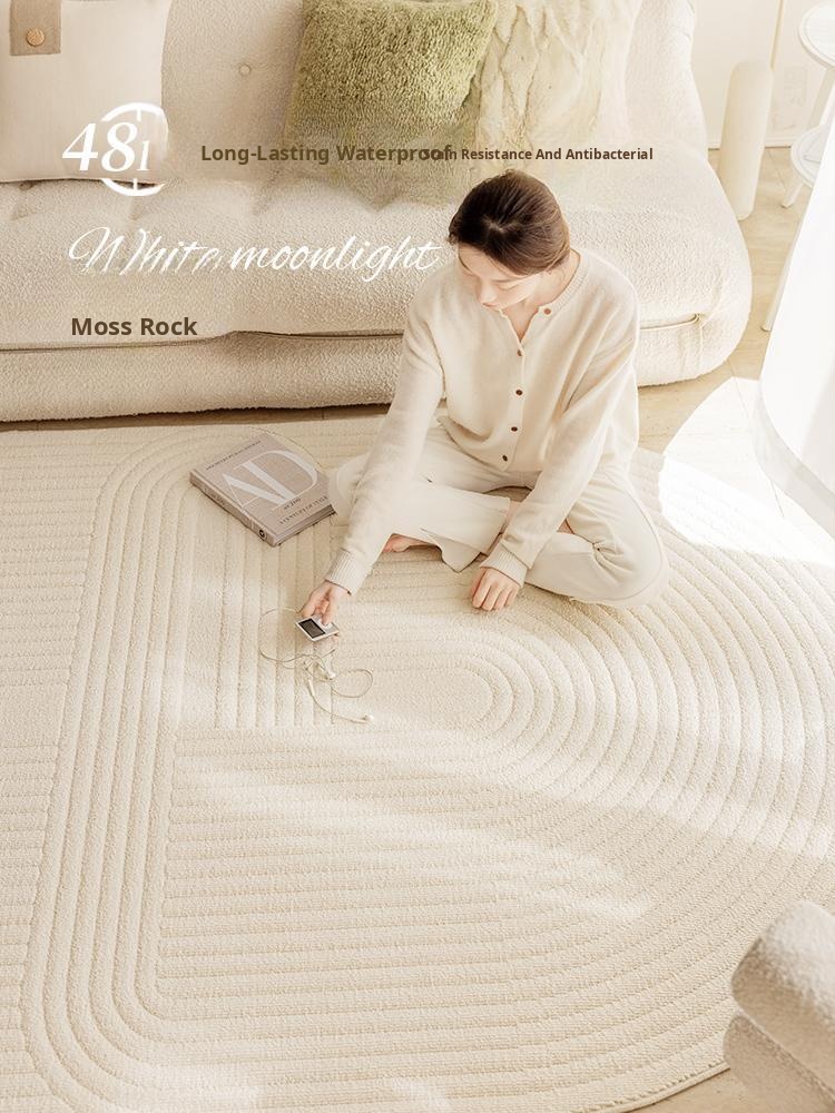 French Waterproof and Stain-Resistant Oval Living Room Carpet - Luxurious Creamy Irregular Design for Sofa and Coffee Table, Soundproof Bedside Mat
