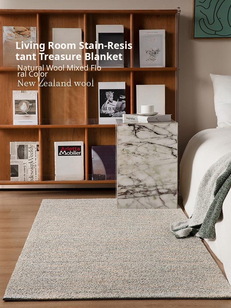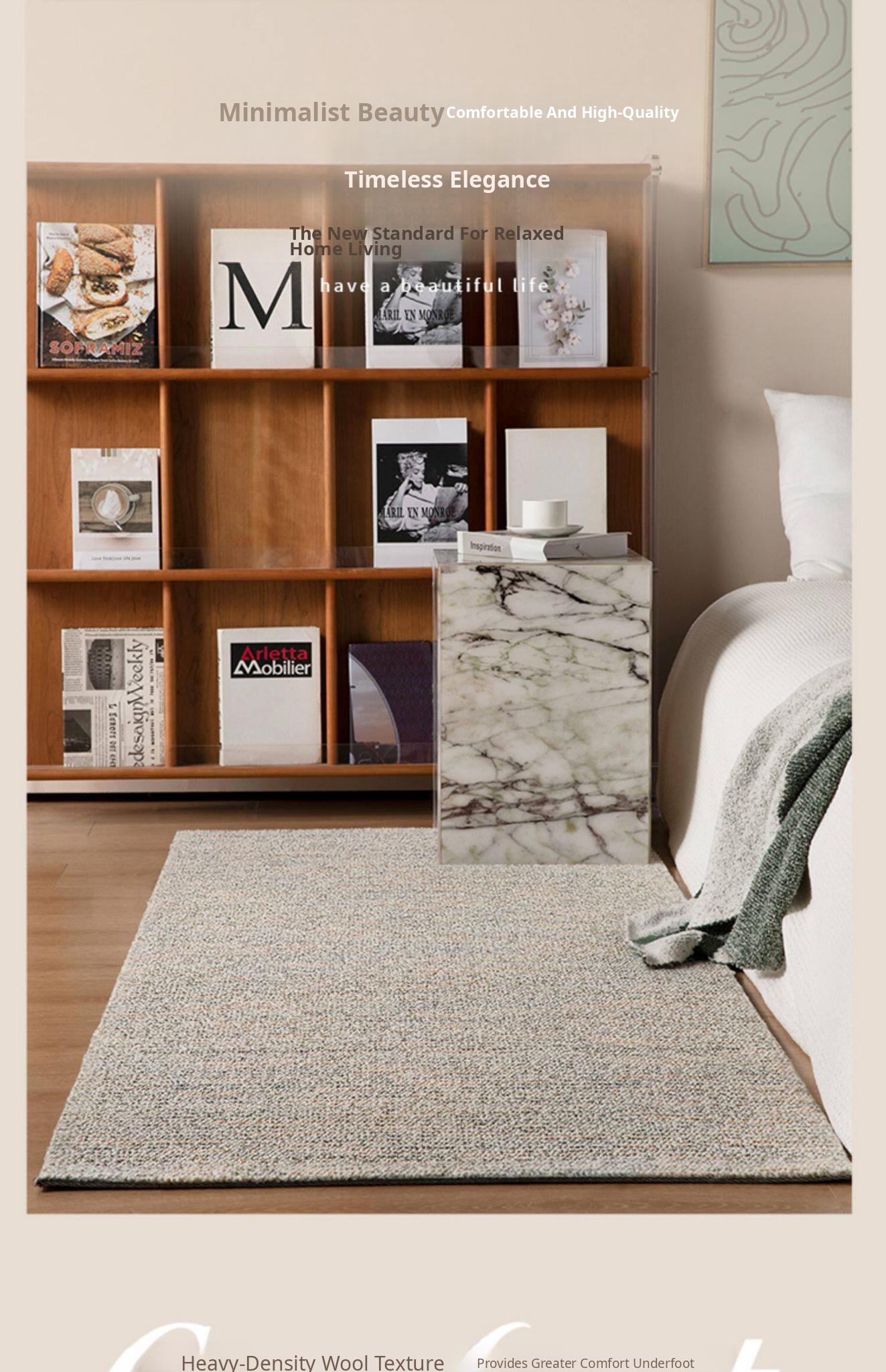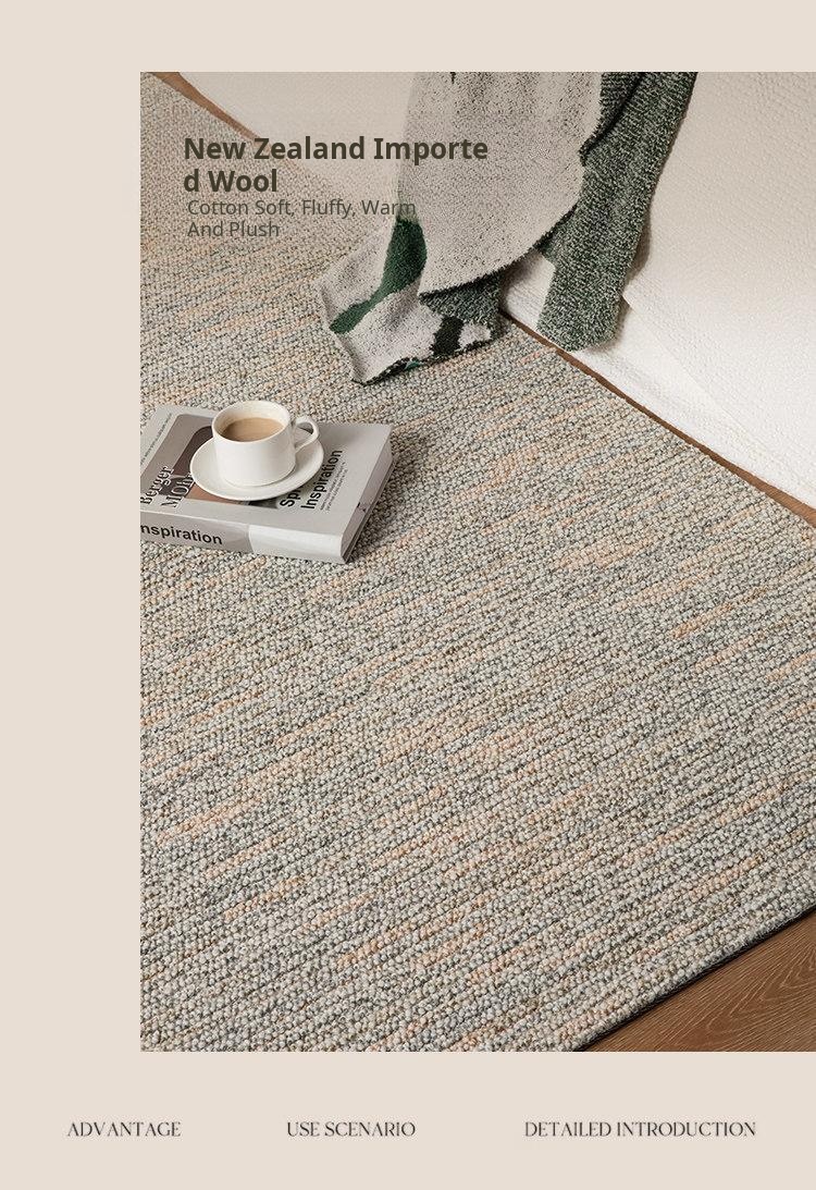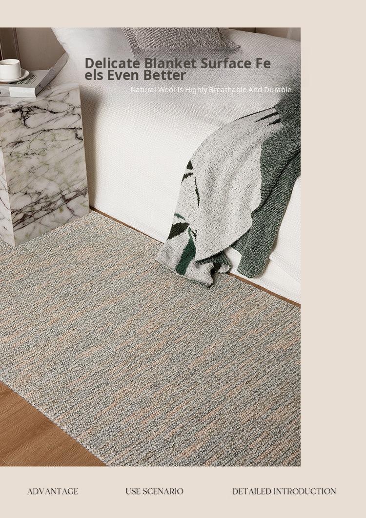 Imported New Zealand Wool Bedside Blanket - Modern Luxury Area Rug for Bedroom and Living Room, Elegant Bed End Mat and Floor Carpet