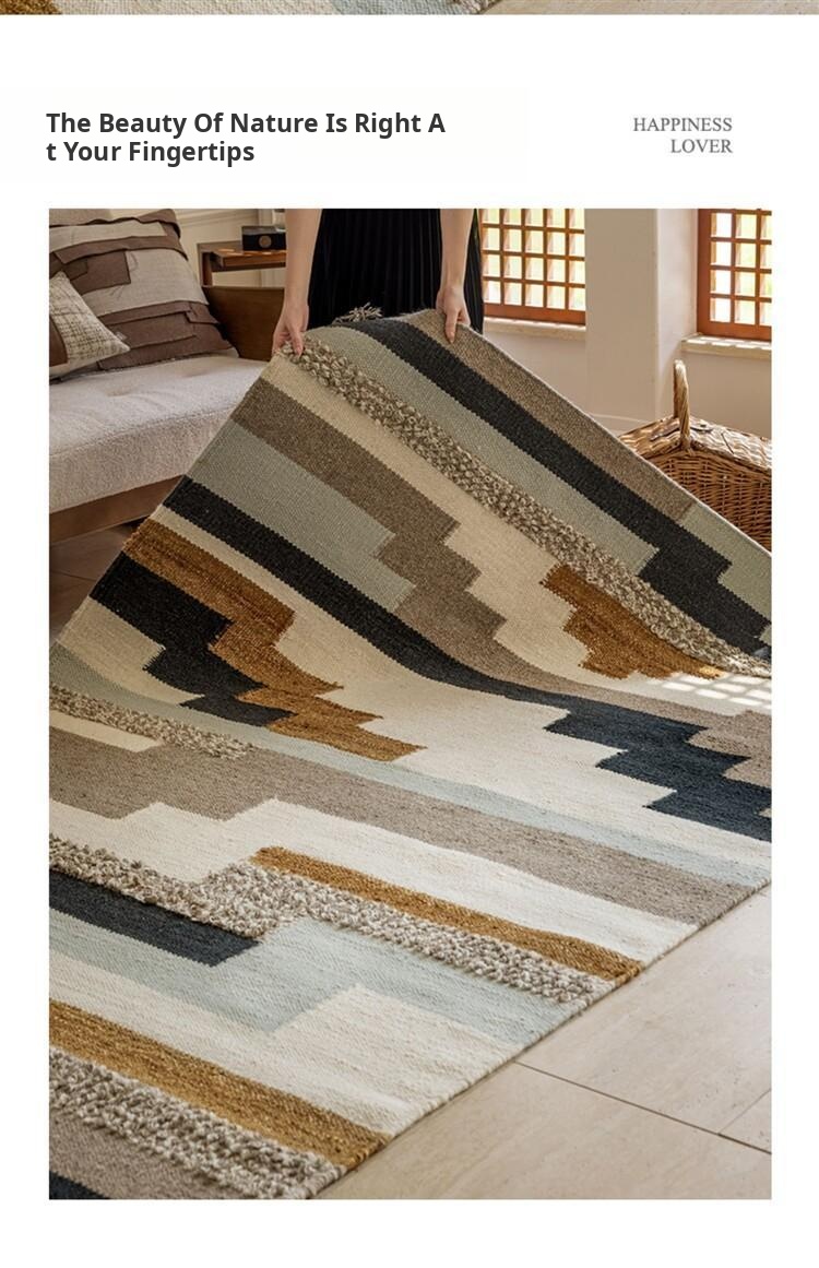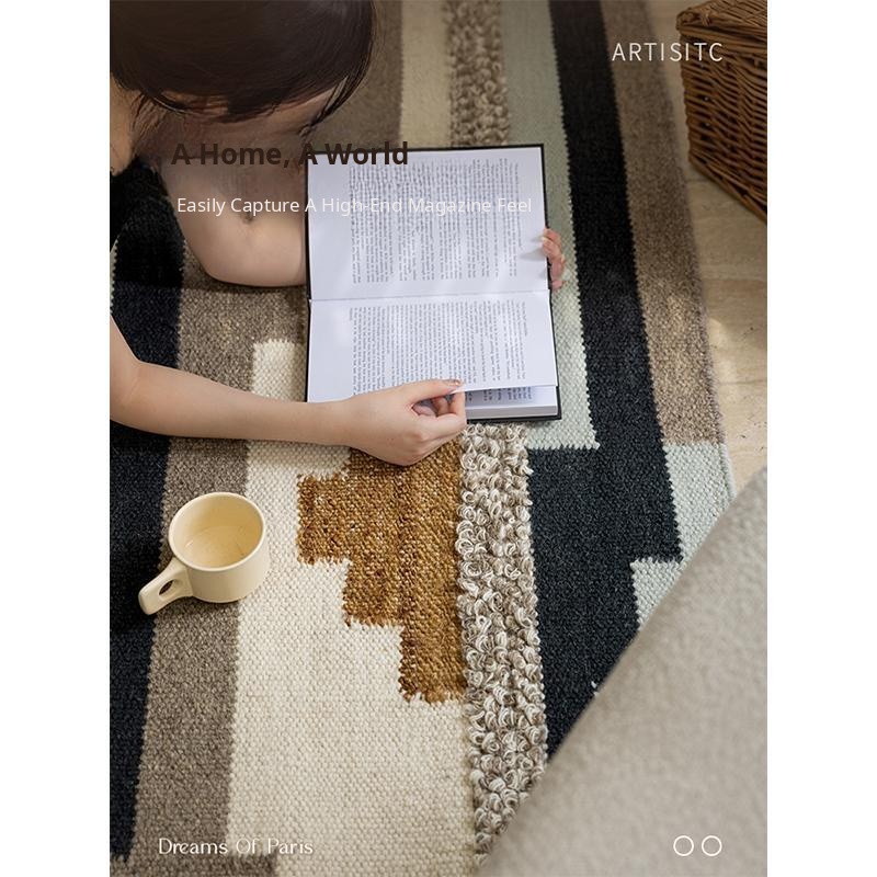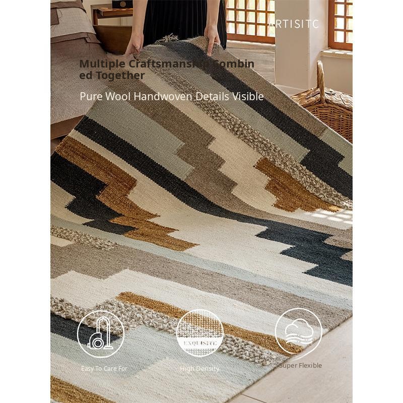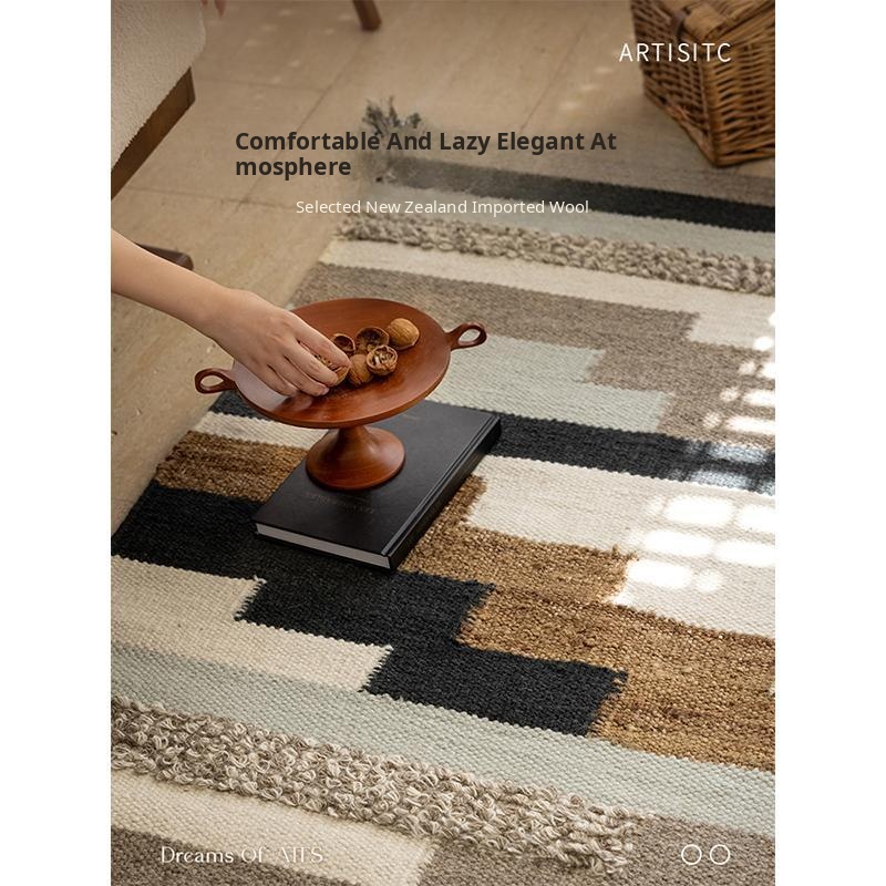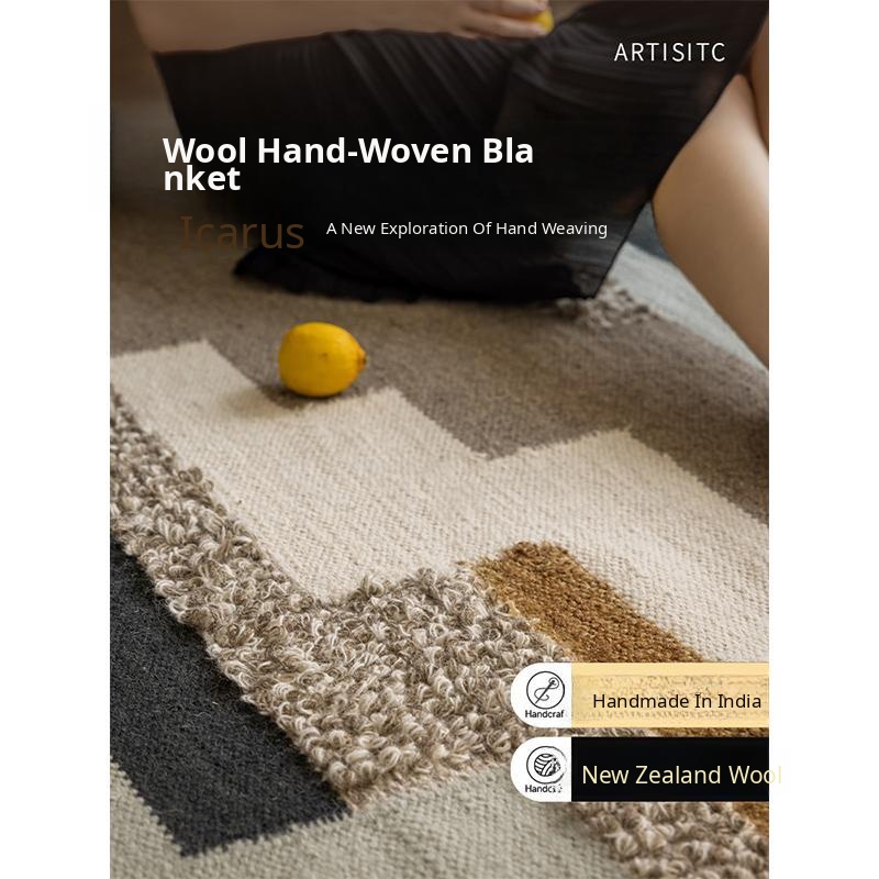 Imported New Zealand Wool Handwoven Glue-Free Rug - Nordic Light Luxury Style Living Room Mat & Bedroom Bedside Blanket