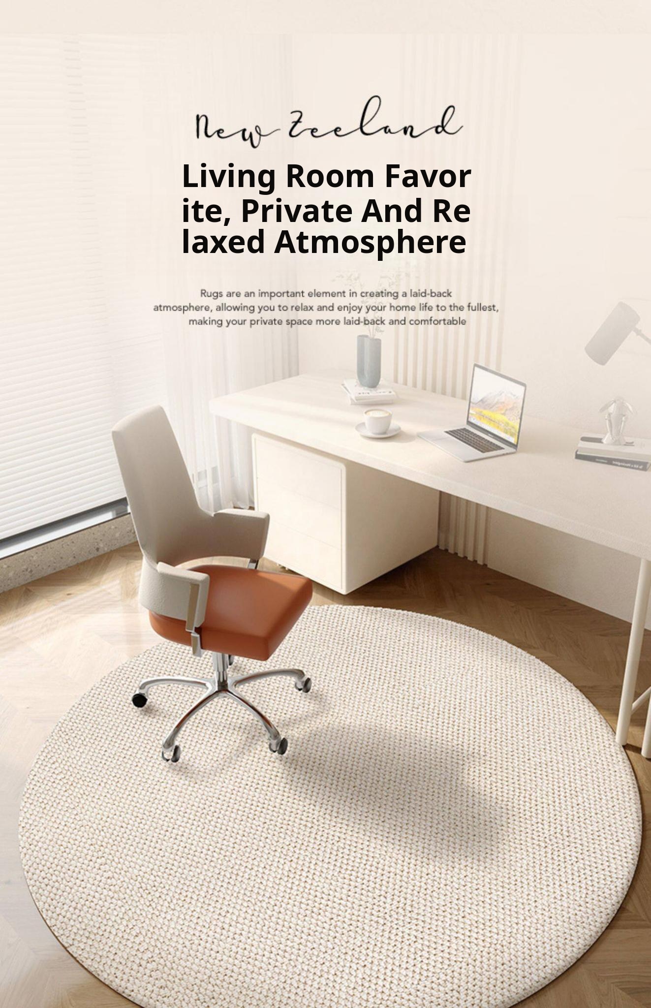 Imported New Zealand Wool Round Area Rug - Ideal for Study and Bedroom, Non-Slip and Soundproof Chair Mat, Perfect for Computer Chairs and Bedside Use.