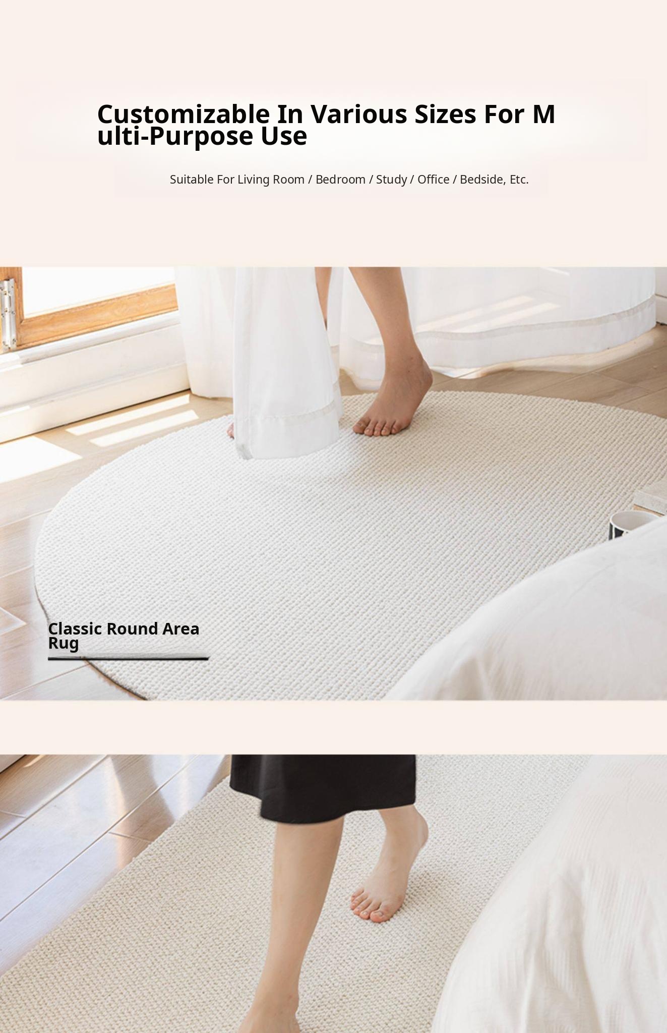 Muguang New Zealand Round Wool Rug - Off-White
