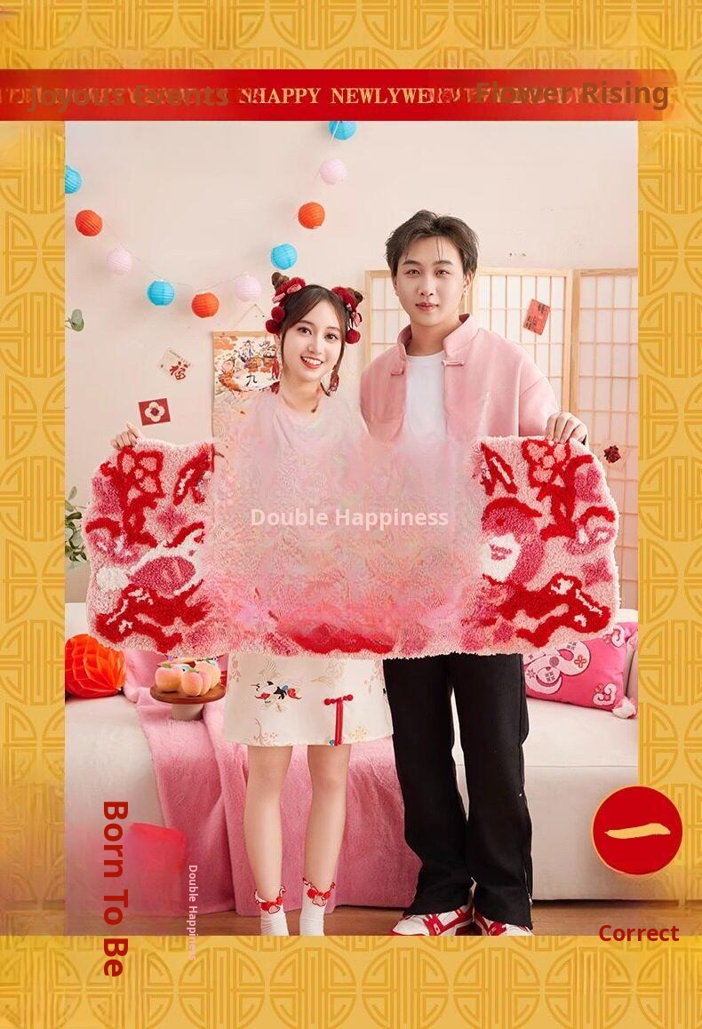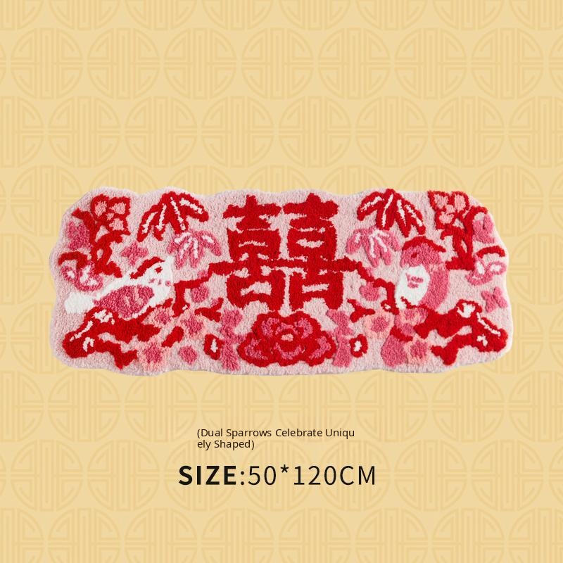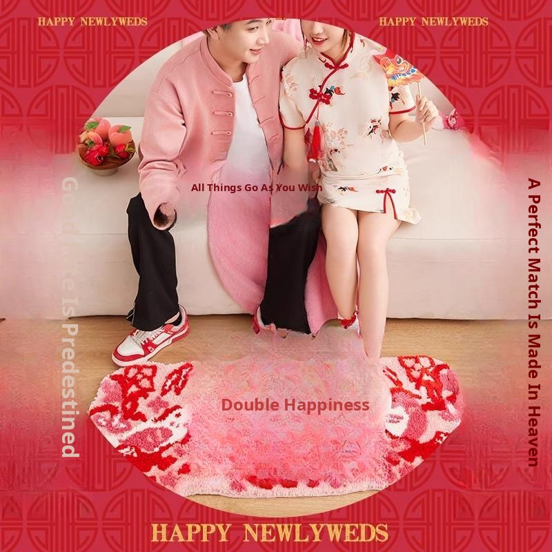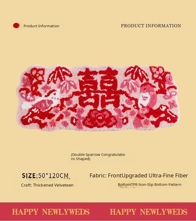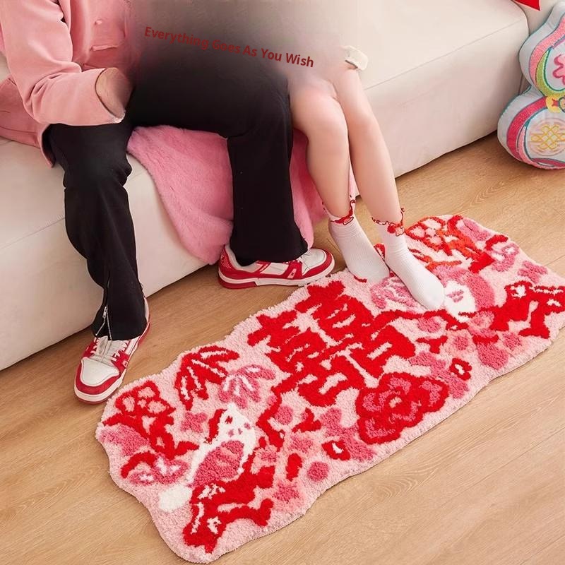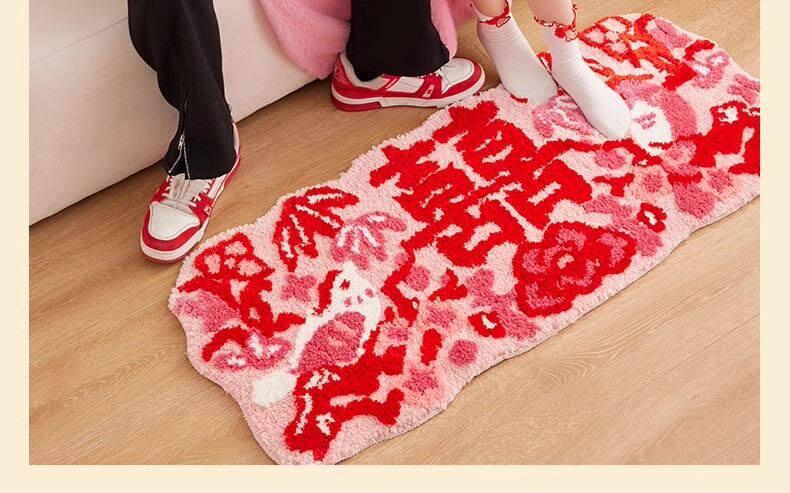 Kawosen Wedding Celebration Floor Mat - Unique Shaped Rug for Bedroom and Living Room, Perfect for Sofa and Home Decoration with Double Happiness Symbol