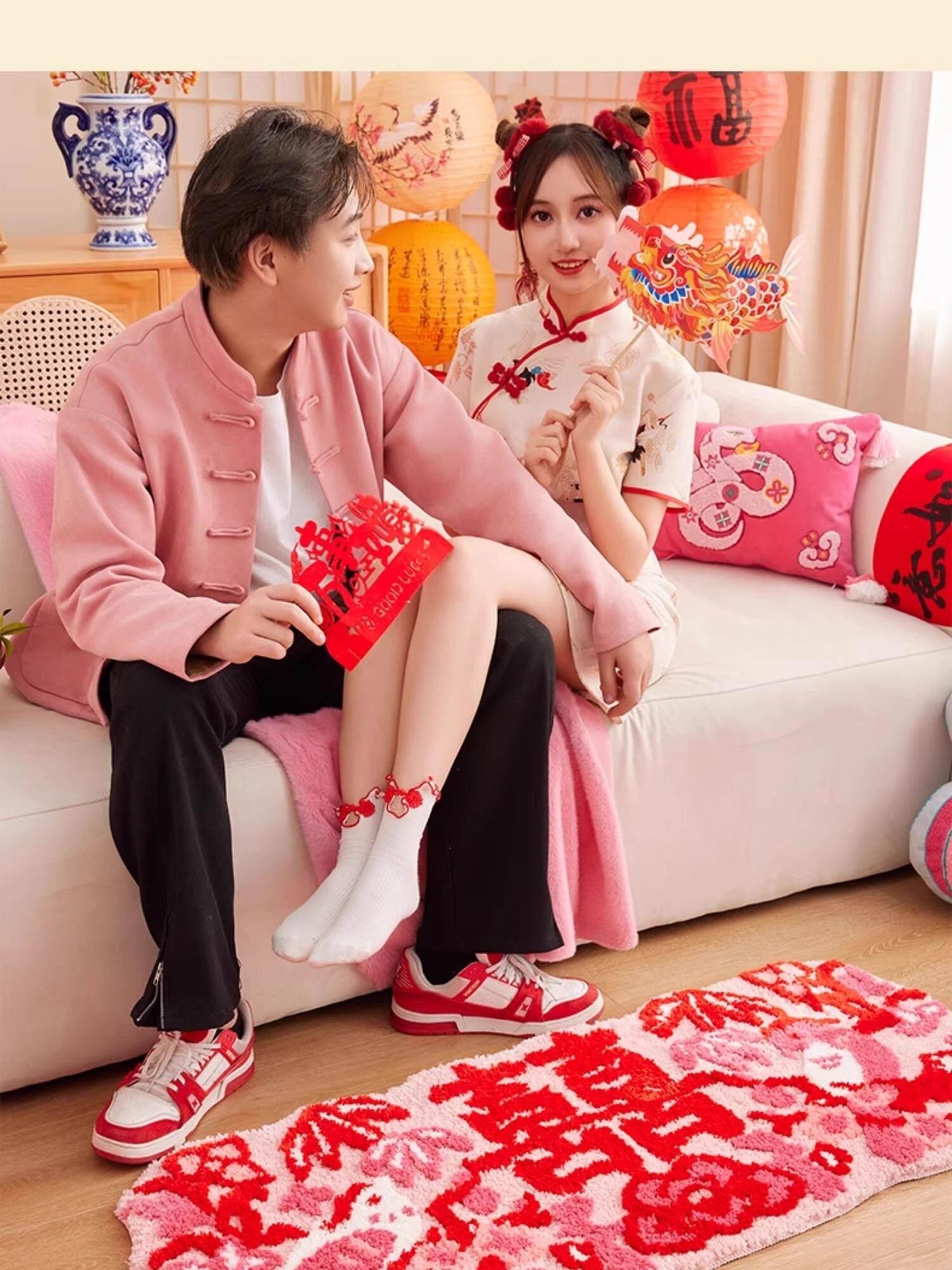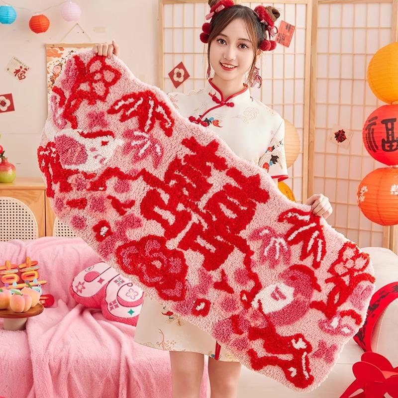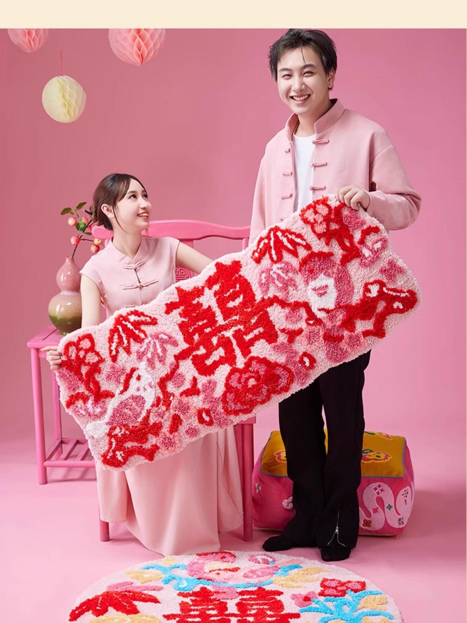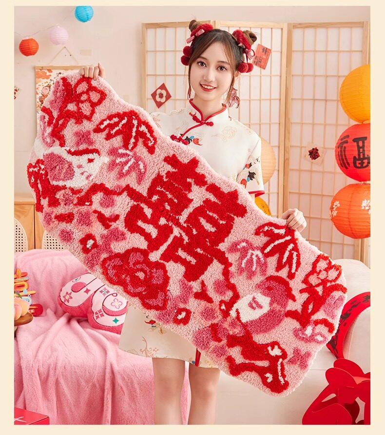 Kawosen Wedding Celebration Floor Mat - Unique Shaped Rug for Bedroom and Living Room, Perfect for Sofa and Home Decoration with Double Happiness Symbol