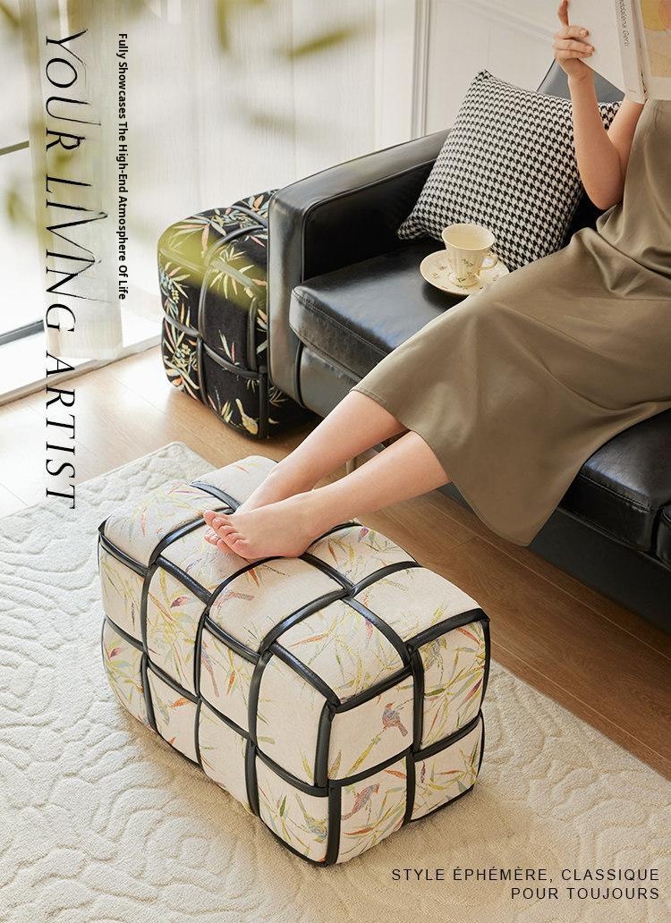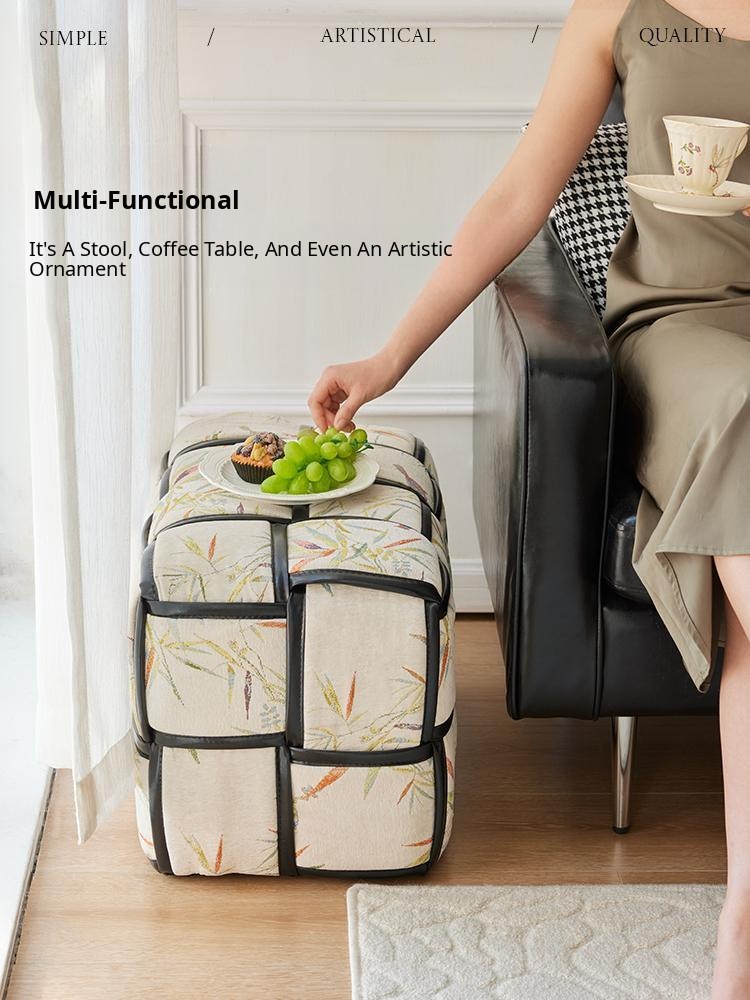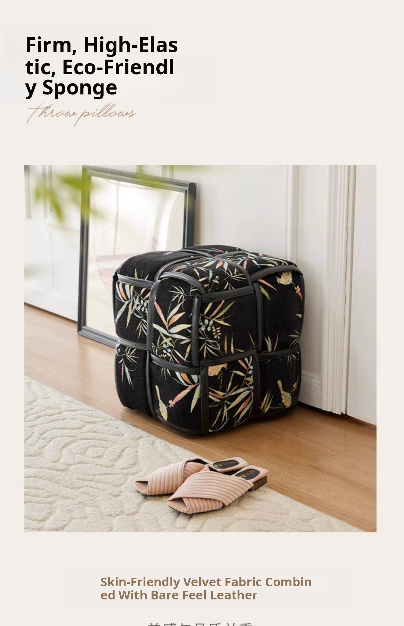 Chunzhan Multifunctional Square Pouf [Suede Leather Edge, Light Luxury and High-End]