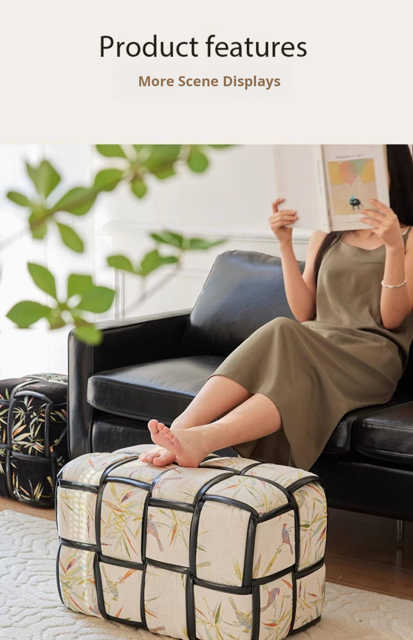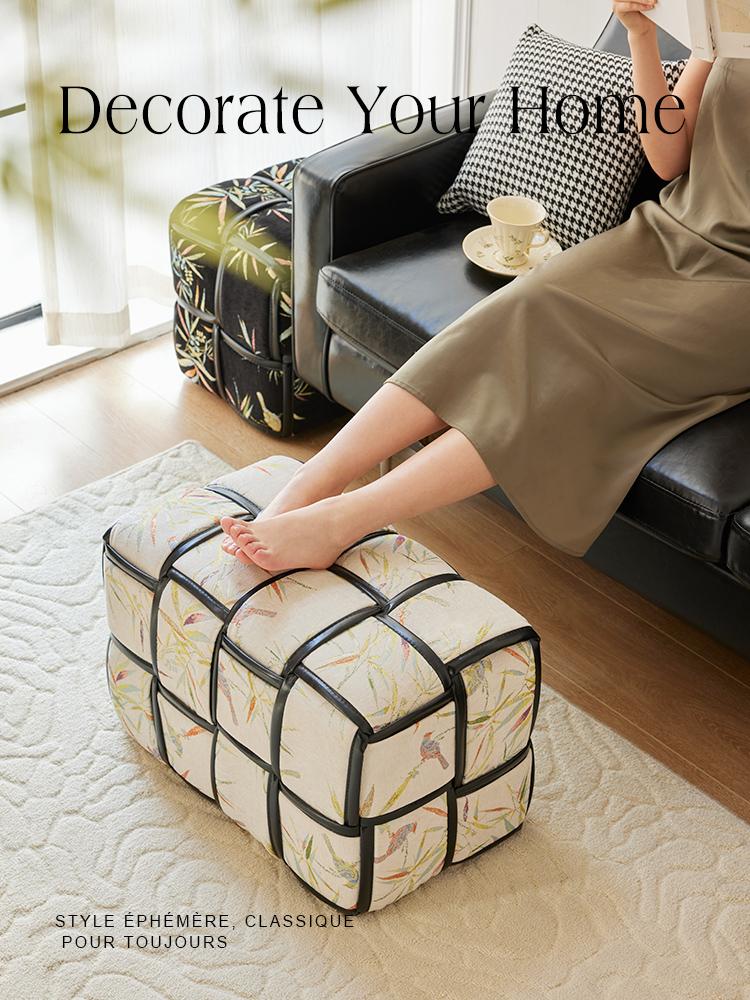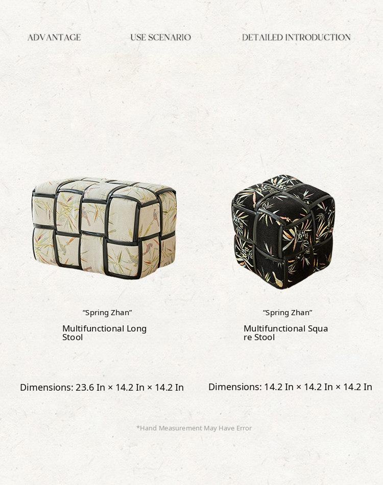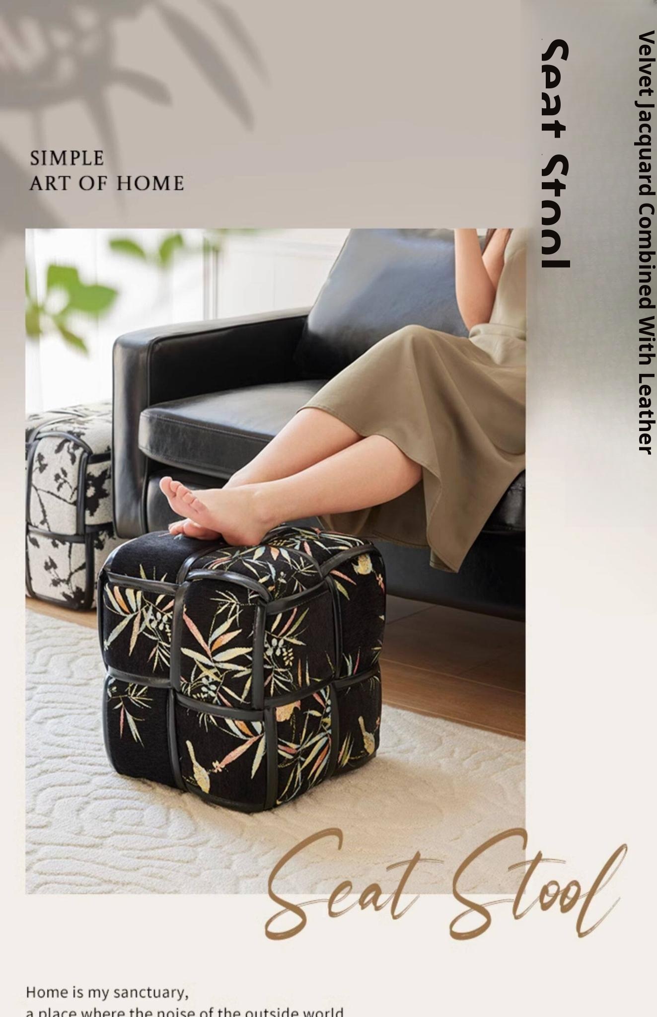 Chunzhan Multifunctional Square Pouf [Suede Leather Edge, Light Luxury and High-End]