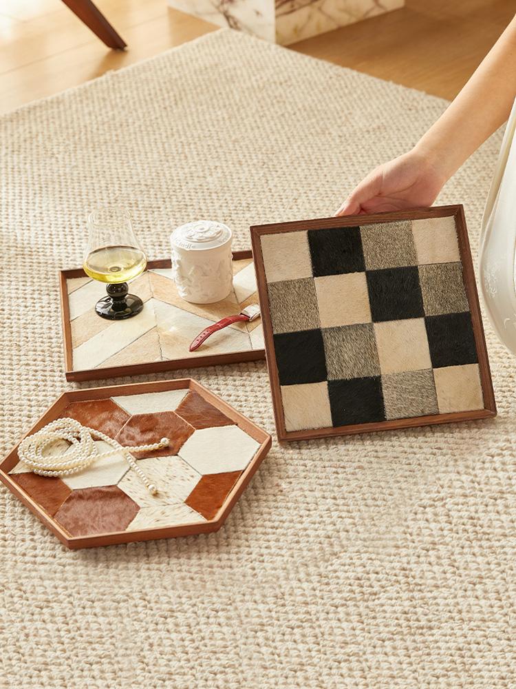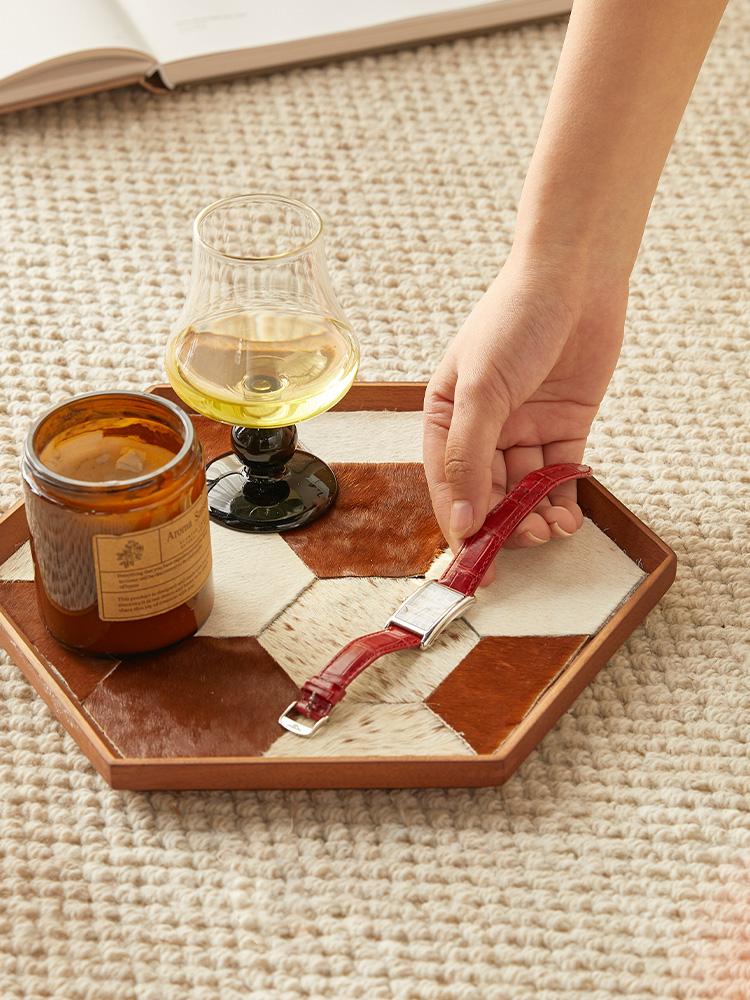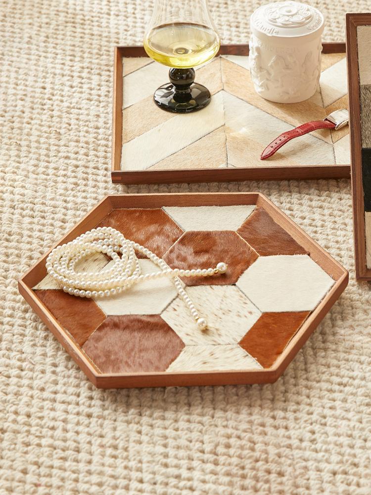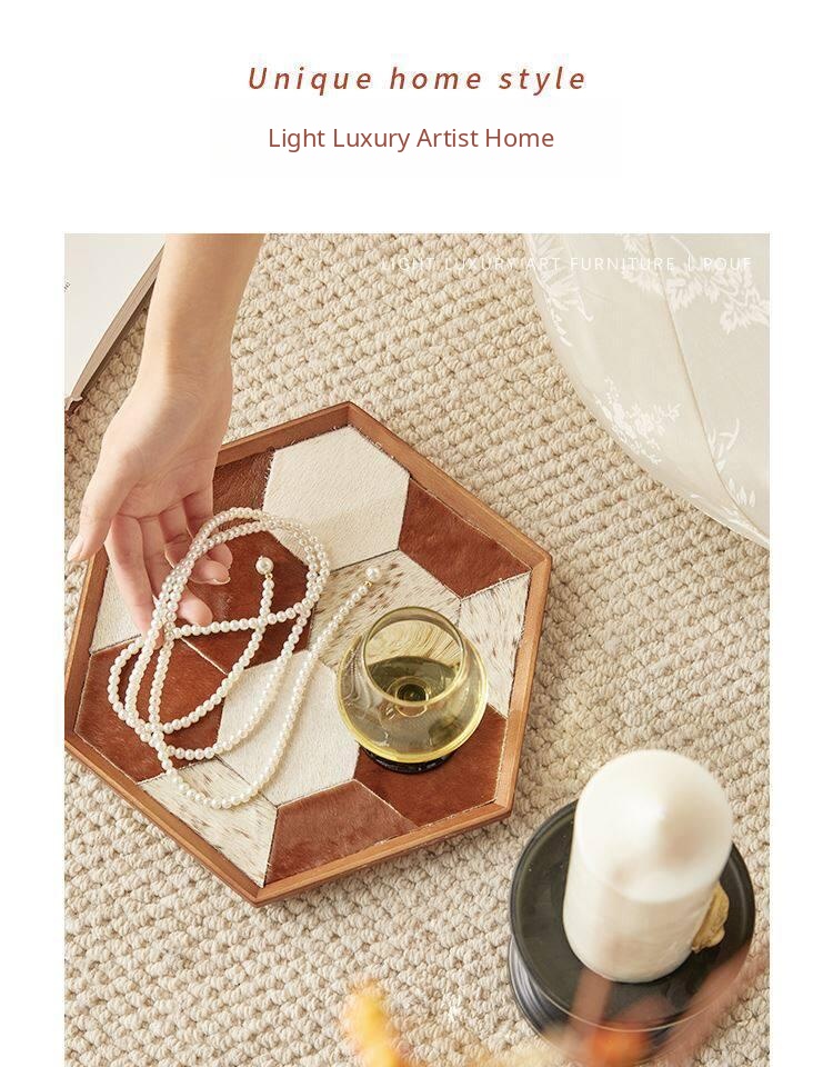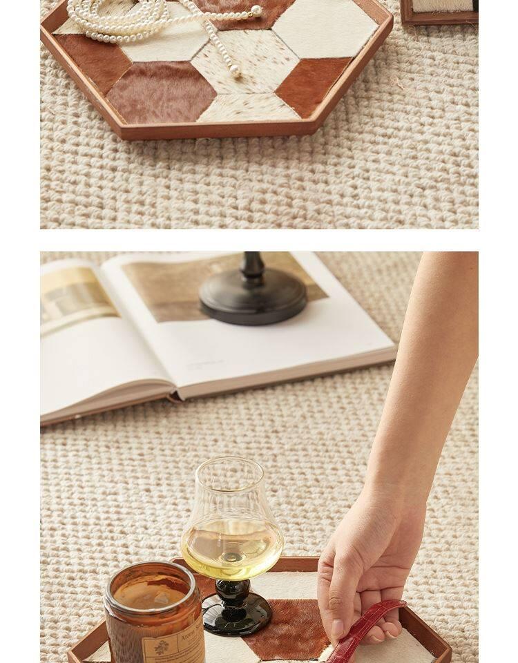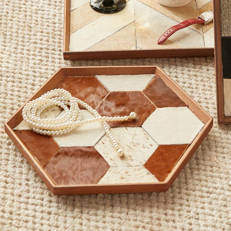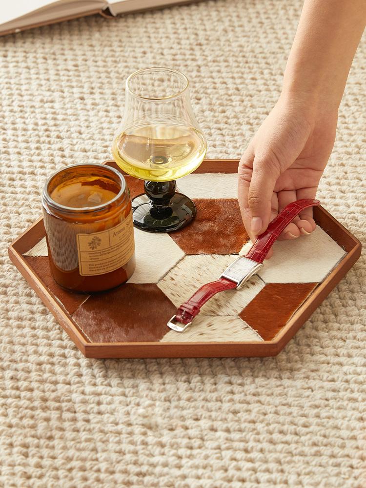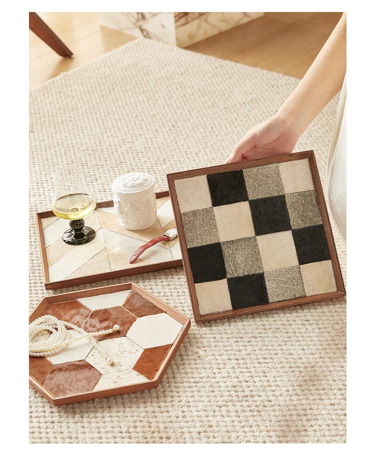Luxurious Black and White Checkerboard Leather Aroma Tray – Stylish Hairy Cowhide Key and Candle Holder, Perfect for Jewelry and Desktop Organization