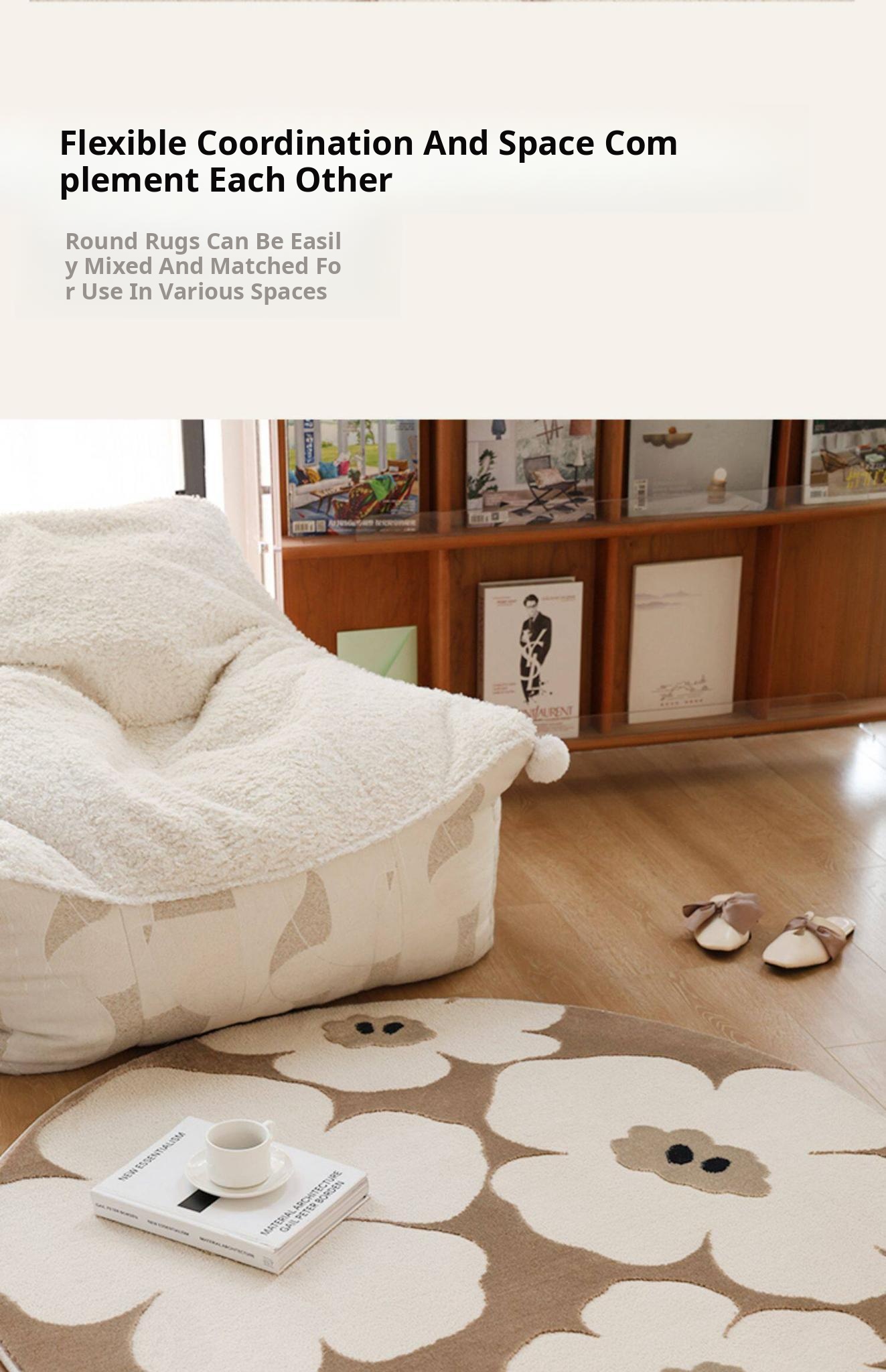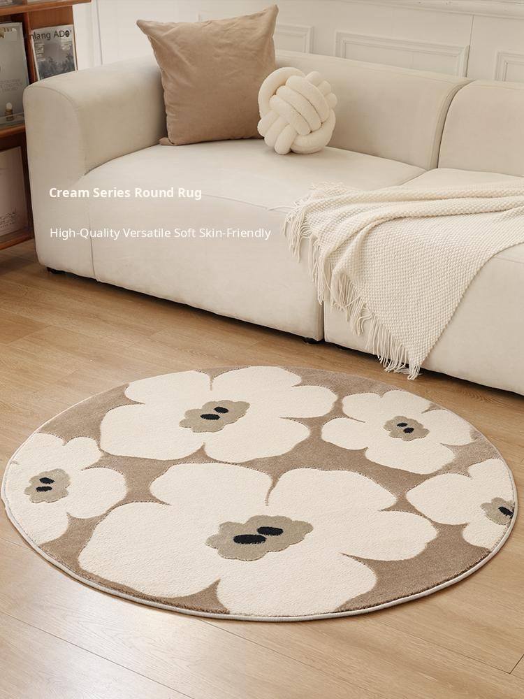 Luxurious Cream Round Rug - Easy Care, No Wash Needed! Perfect for Bedroom, Bedside, Dressing Table, and Chair Mat in Walk-in Closets. Elevate Your Space with Style and Comfort!