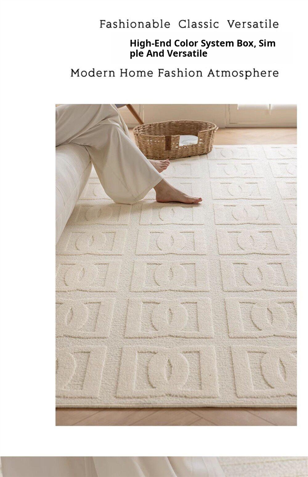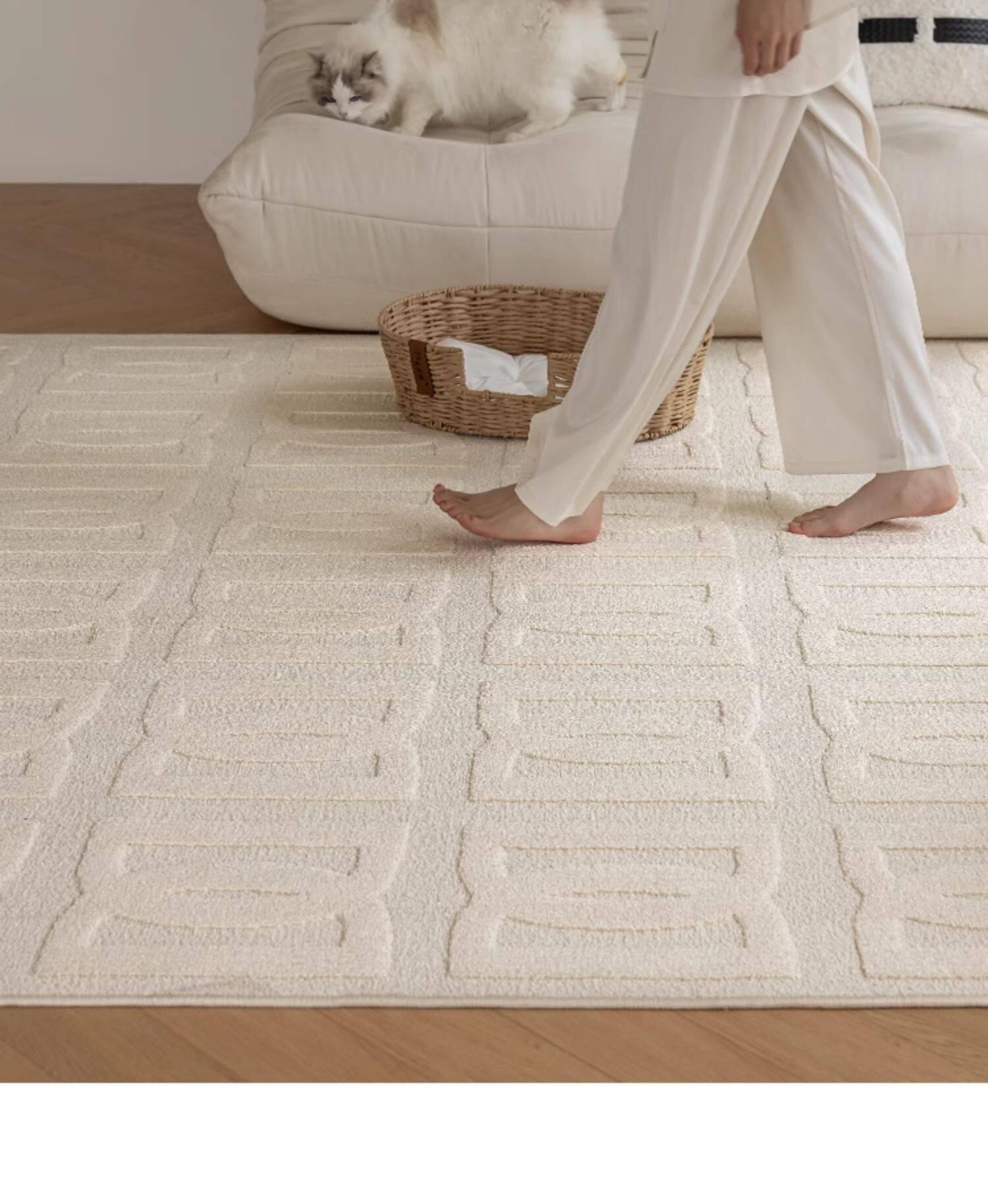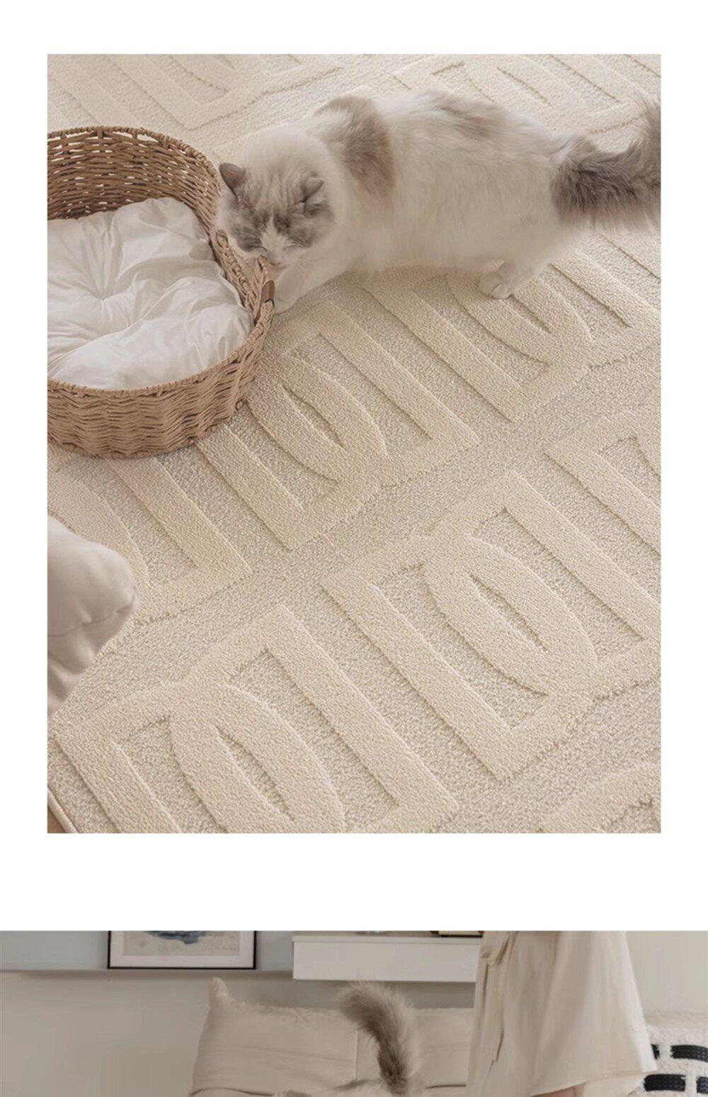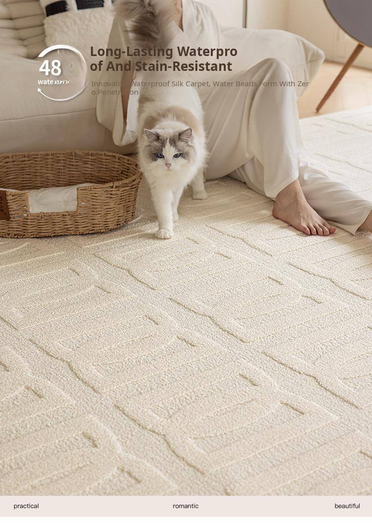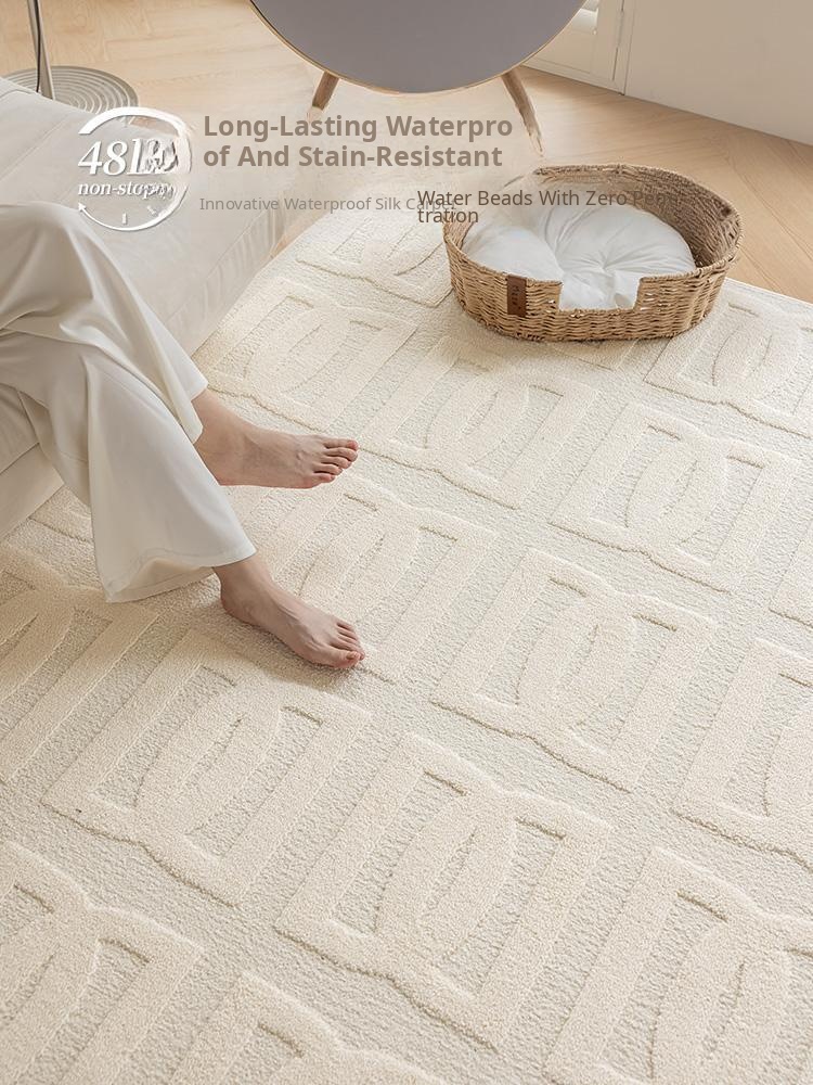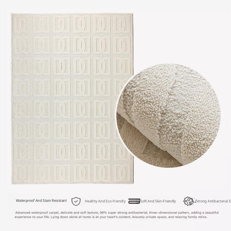 Luxurious French Cream Living Room Carpet - Elegant Waterproof and Stain-Resistant Throw for Study and Bedroom, Easy to Clean, Perfect for Sofa Use