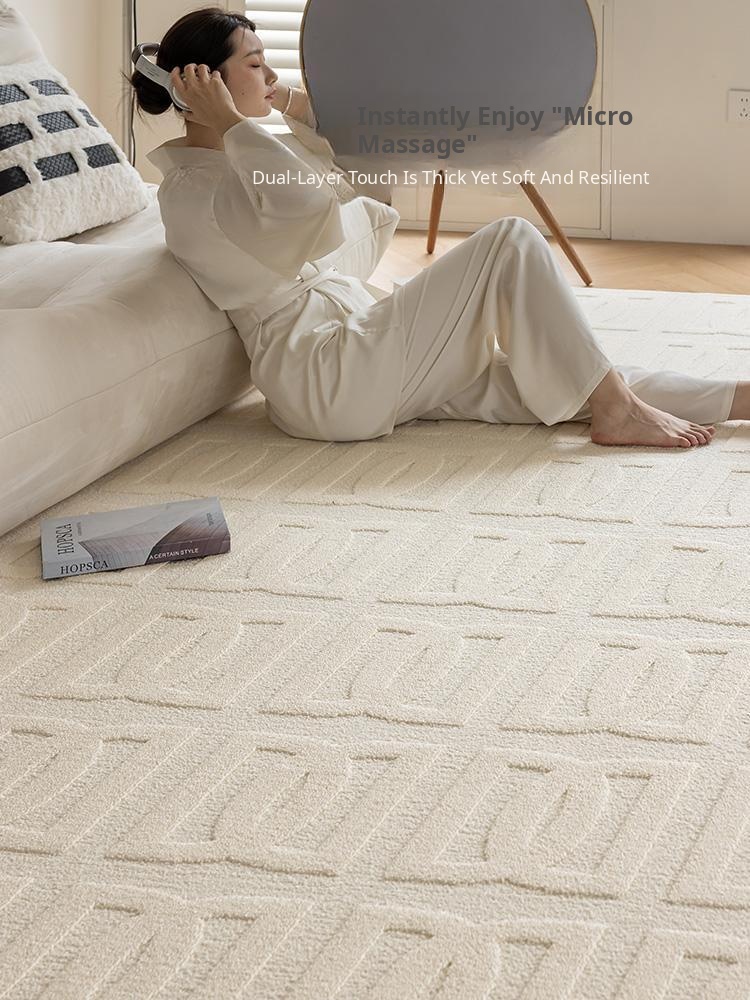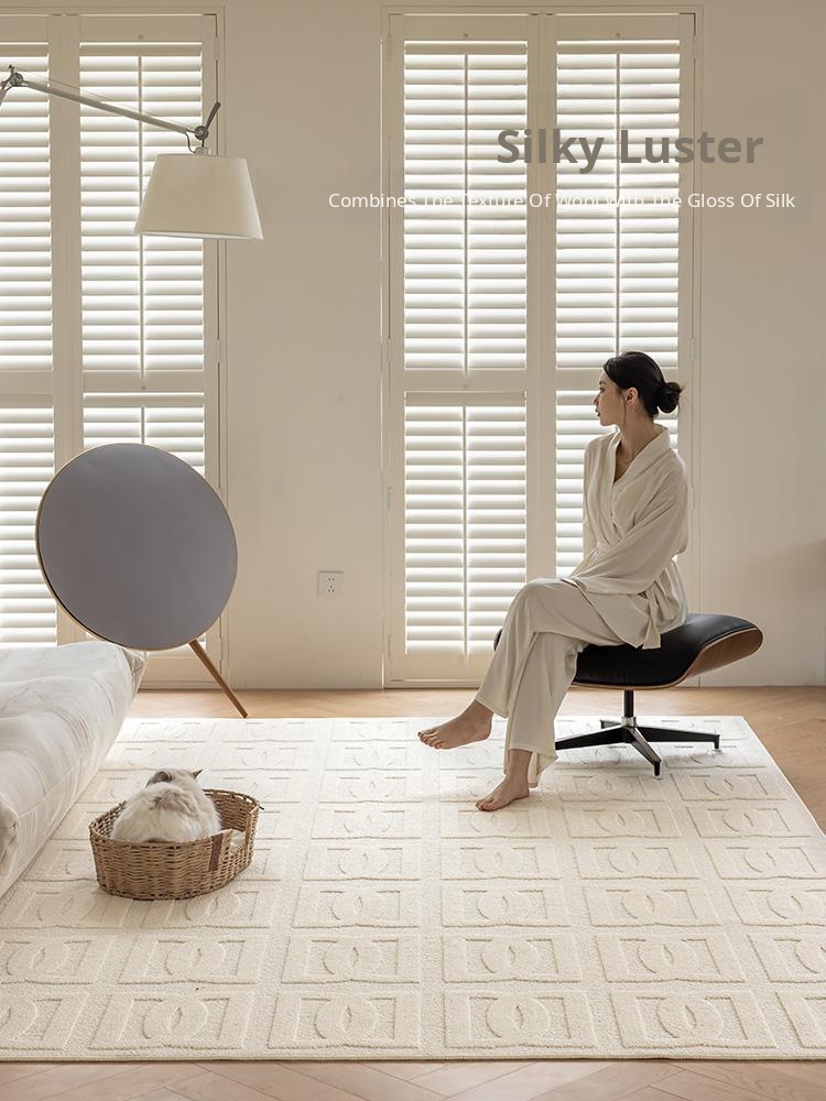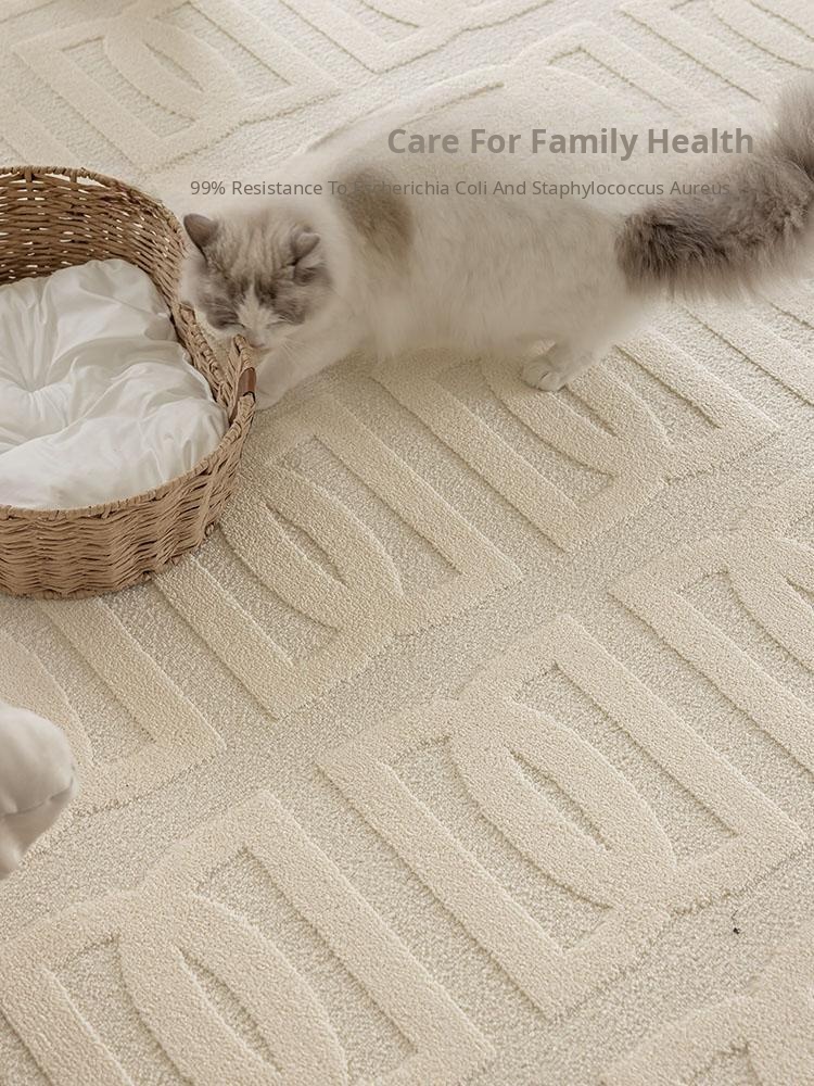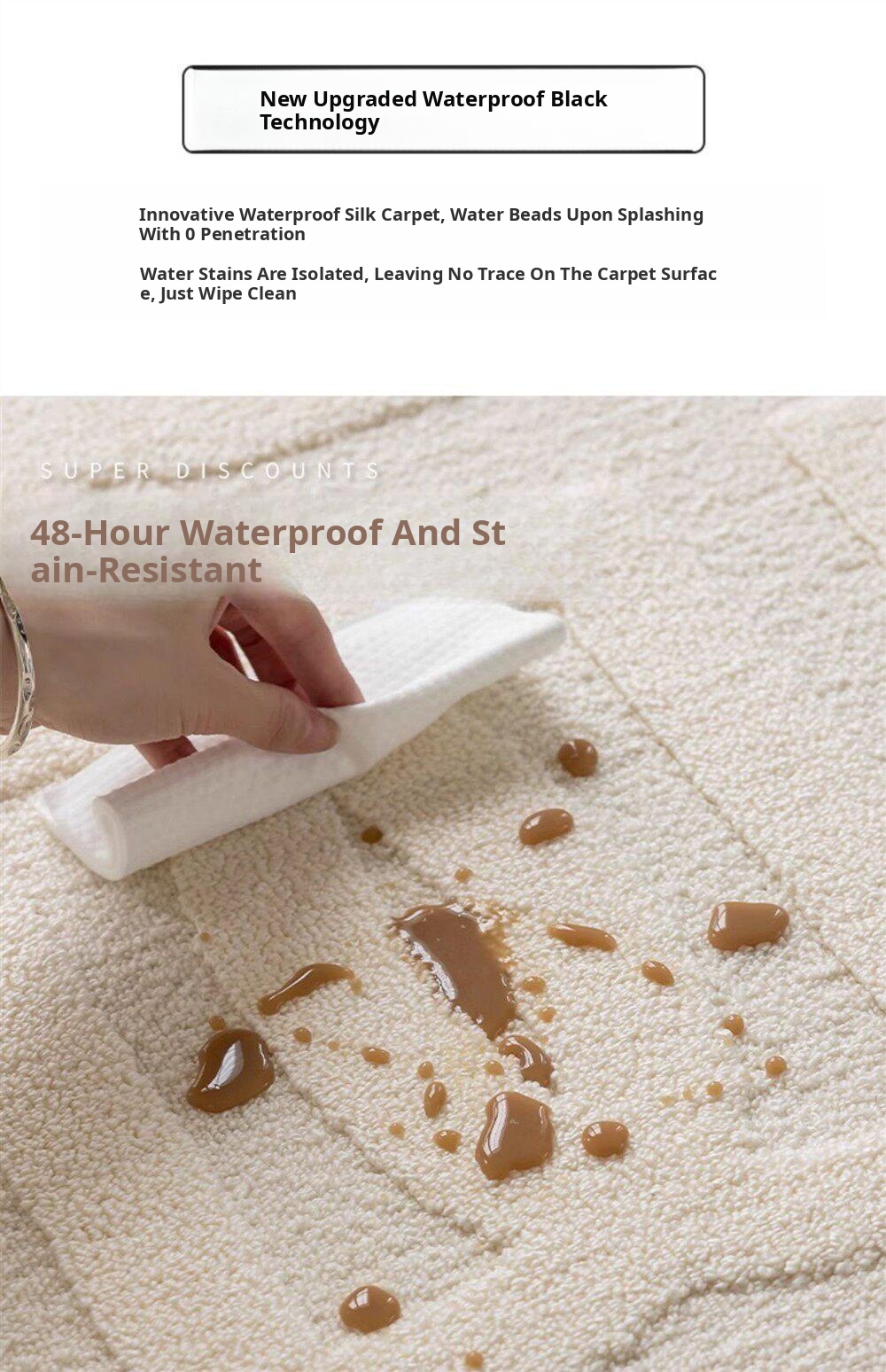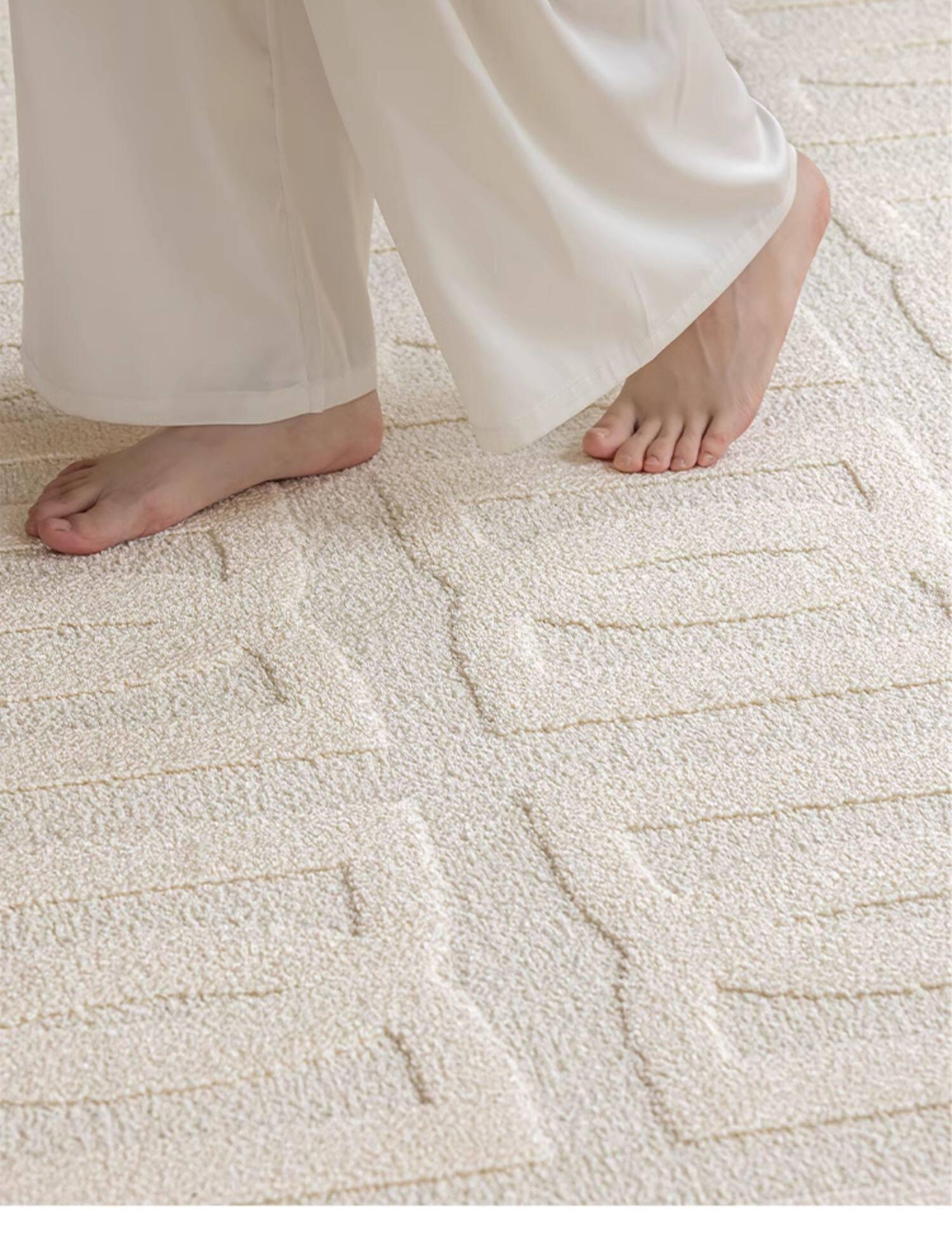 Luxurious French Cream Living Room Carpet - Elegant Waterproof and Stain-Resistant Throw for Study and Bedroom, Easy to Clean, Perfect for Sofa Use