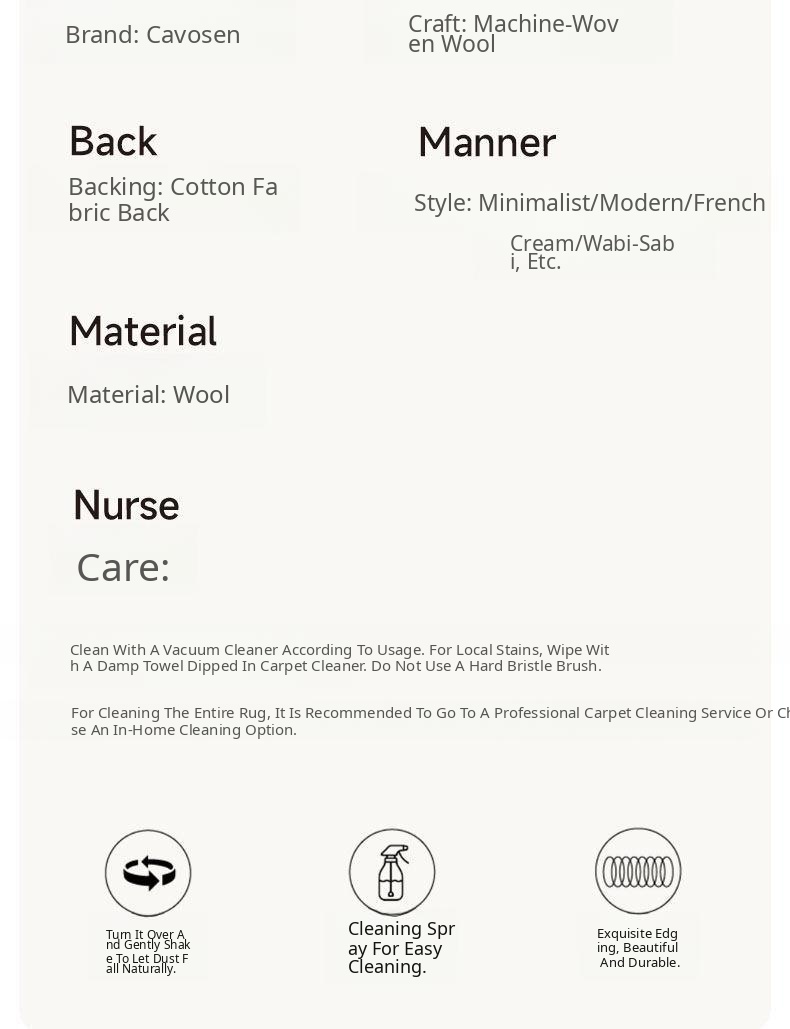 Luxurious New Zealand Imported Wool Carpet - Stain-Resistant, Ideal for Living Room Sofas and Coffee Tables, Elegant French Bedroom Bedside Mat