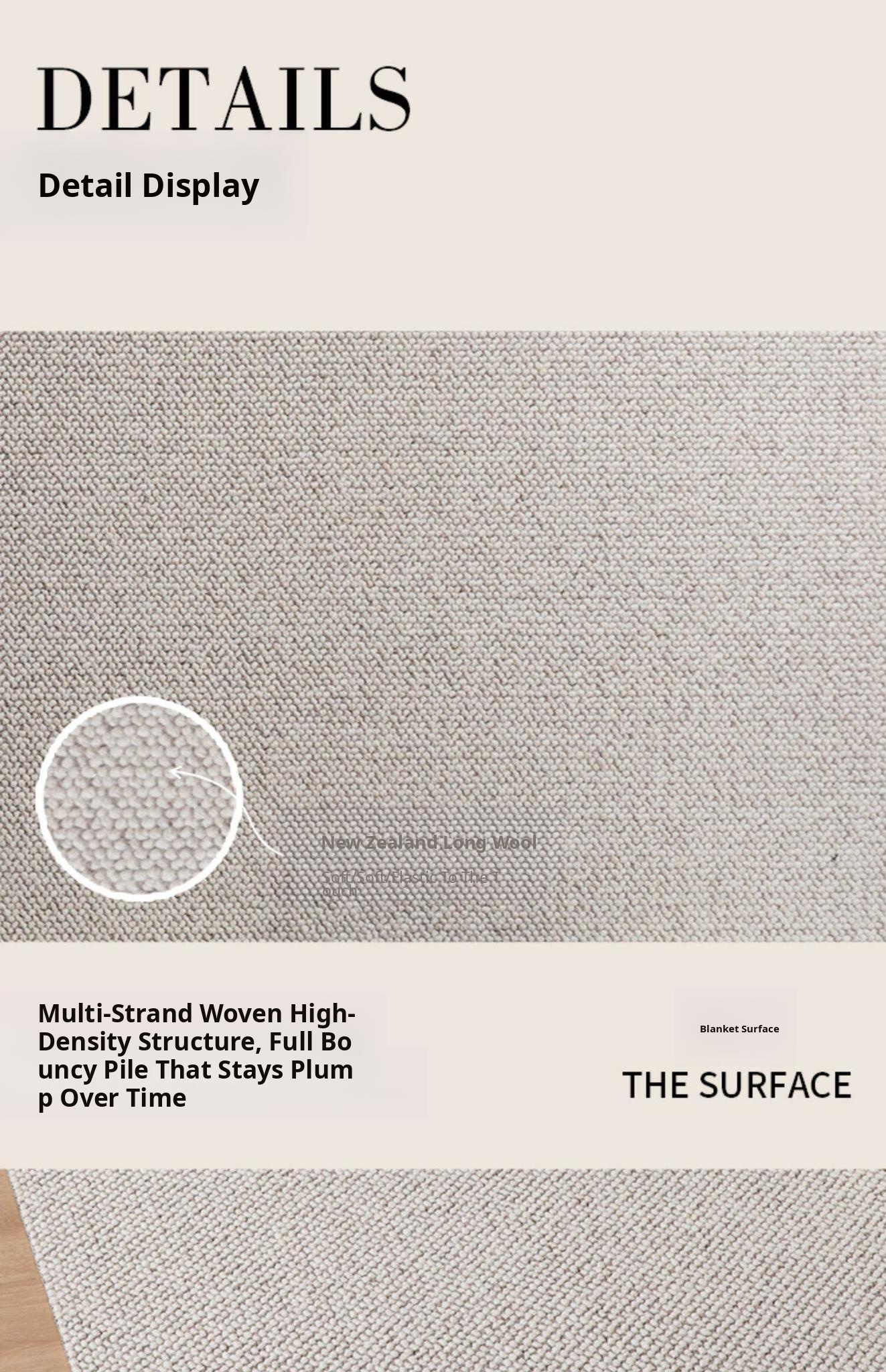 Luxury New Zealand Wool Carpet - Soft and Elegant Bedroom Area Rug, Living Room Sofa Mat, Perfect for Study and Coffee Table Décor
