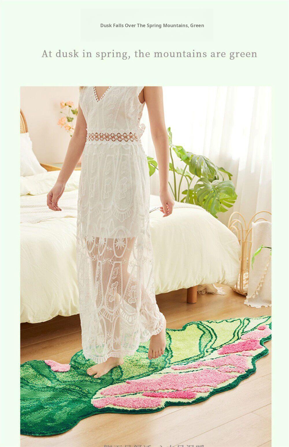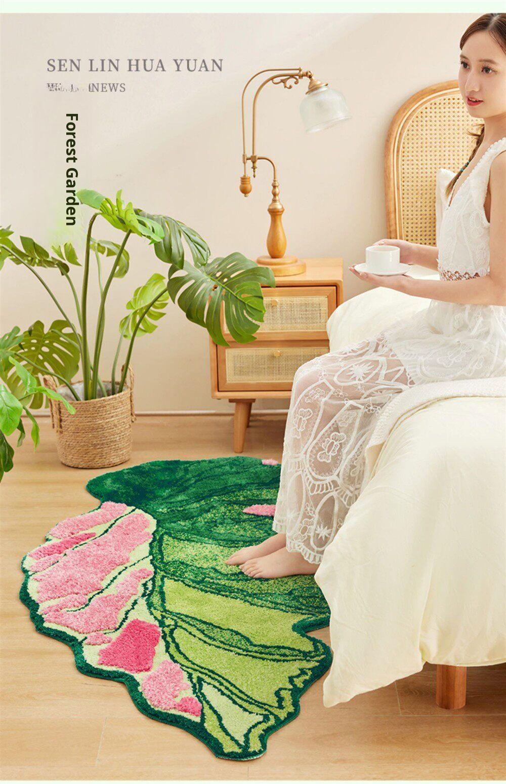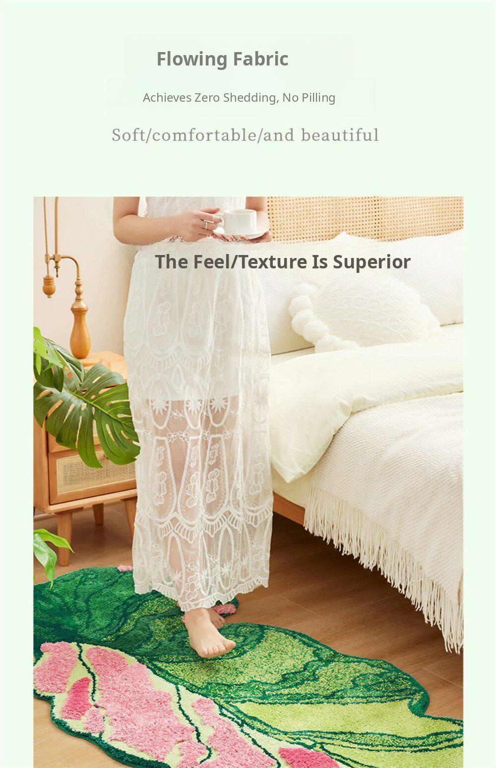 Luxury Velvet Bedside Rug - Non-Slip Irregular Shaped Mat with Fresh Leaf Design for Bedroom & Living Room - Perfect for Adding Elegance and Comfort!