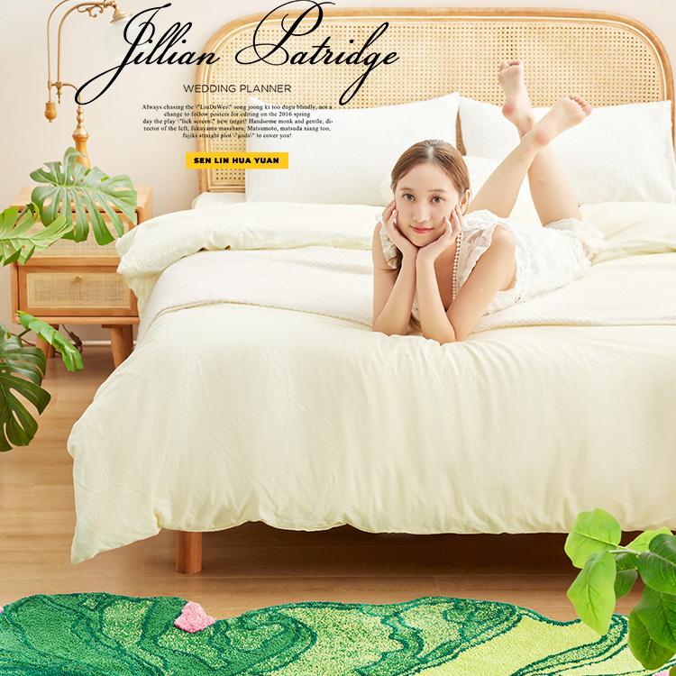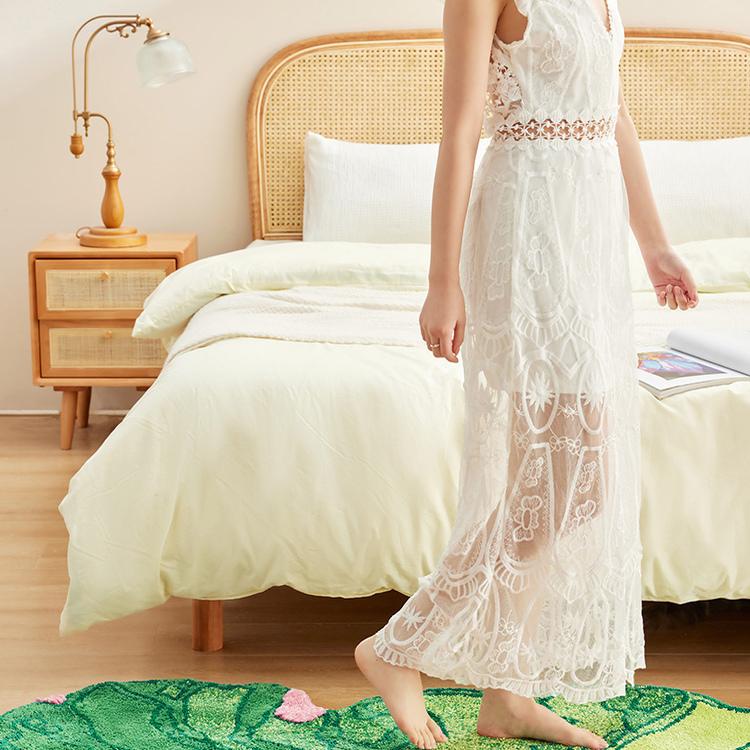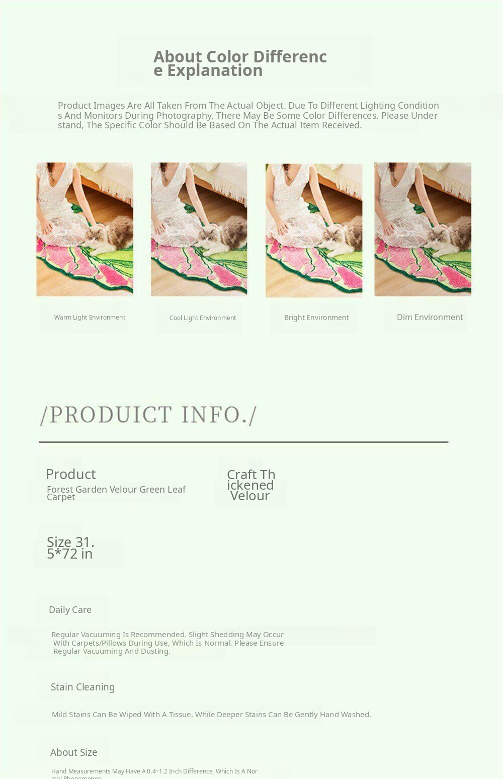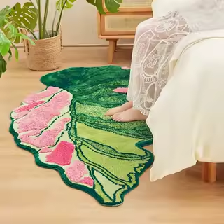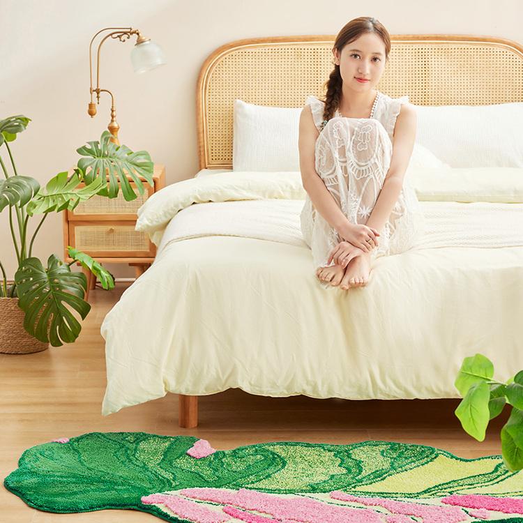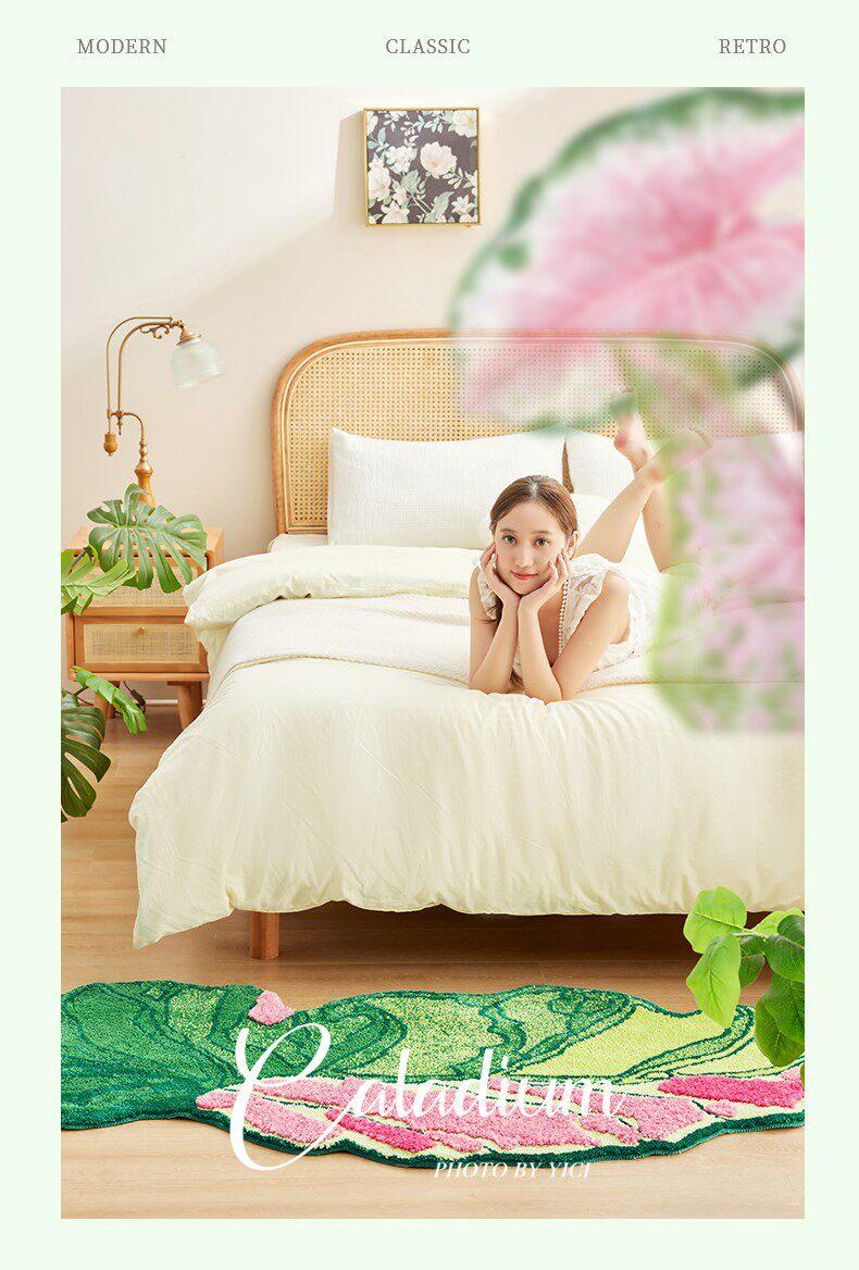 Luxury Velvet Bedside Rug - Non-Slip Irregular Shaped Mat with Fresh Leaf Design for Bedroom & Living Room - Perfect for Adding Elegance and Comfort!
