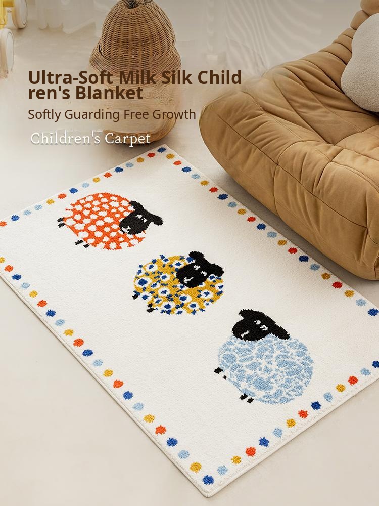 Milk Silk Machine-Woven Children's Carpet - Cozy and Thick Reading Area Rug for Bedrooms, Non-Slip Floor Mat for Boys and Girls, Perfect for Bedside Use, Simple and Stylish Design