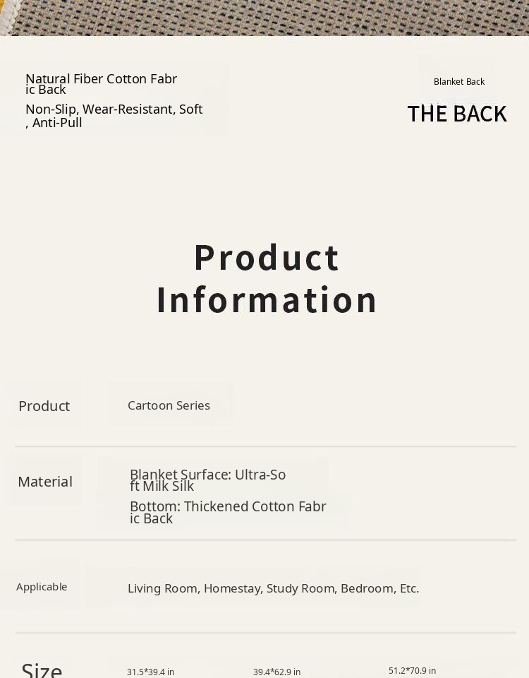 100 X 62.99 in([Cotton Bottom Back Is Non-Slip and Wear-Resistant])