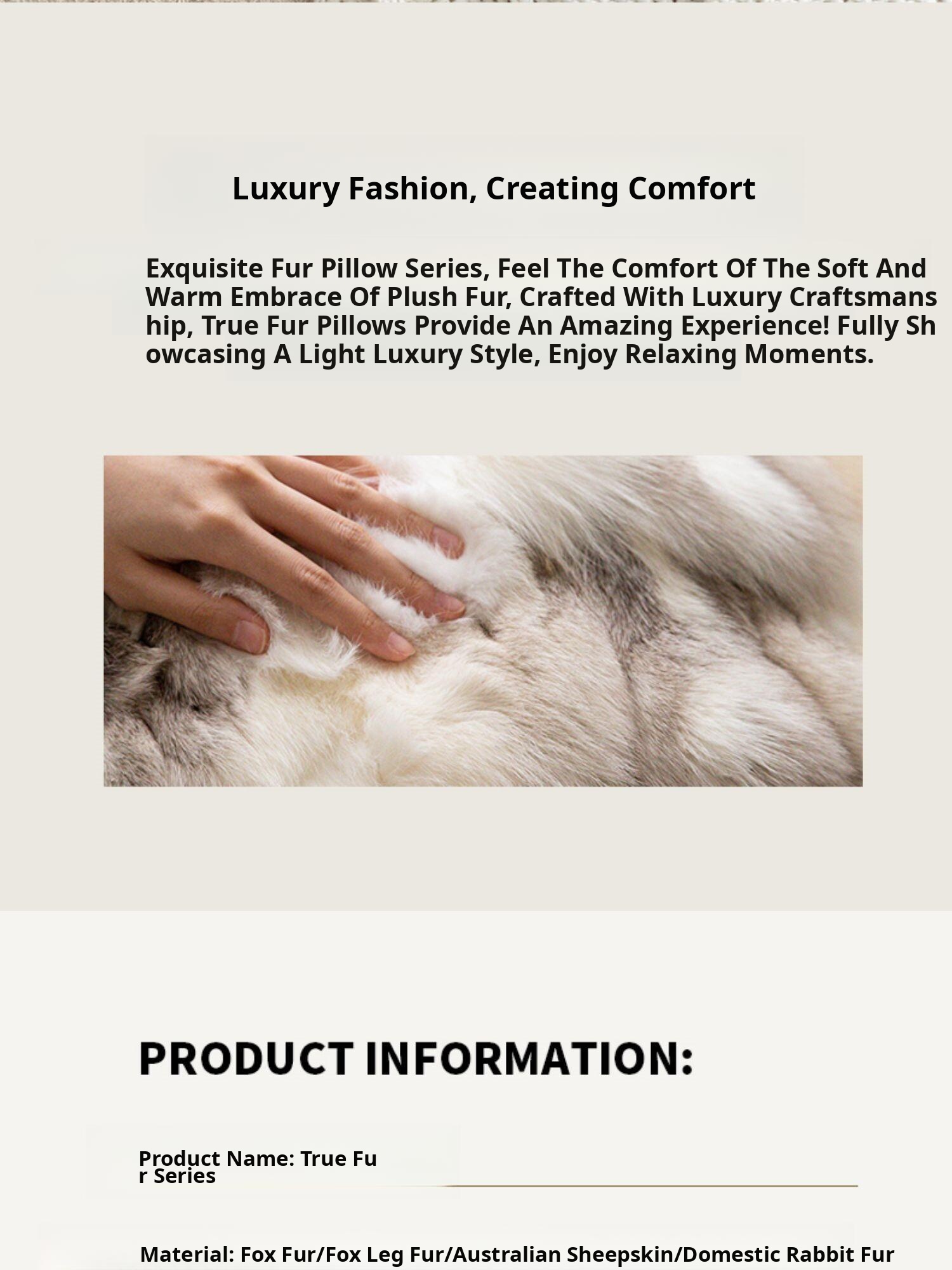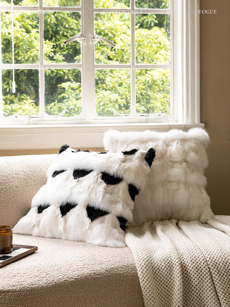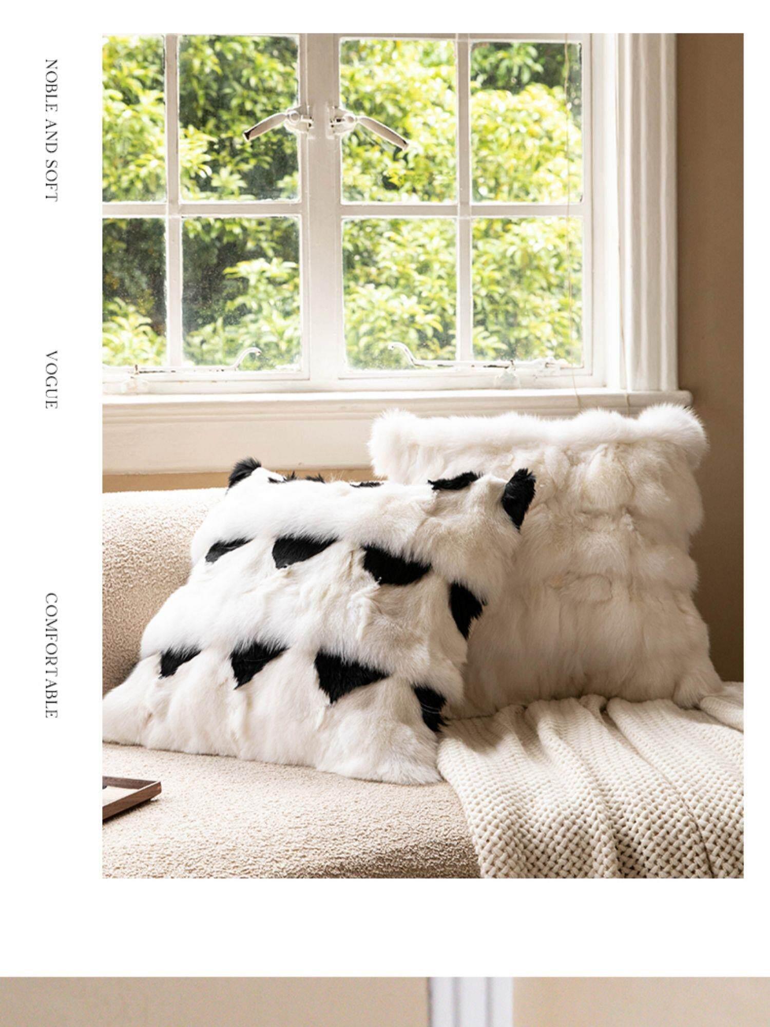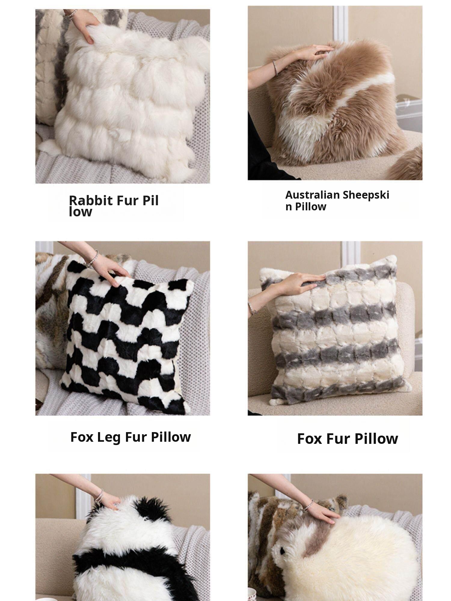 Minimalist Real Fox Fur Cushion - Luxurious Touch for Your Living Room Sofa, Chic Faux Fur Pillow for Bedside, Bay Window, and Lumbar Support