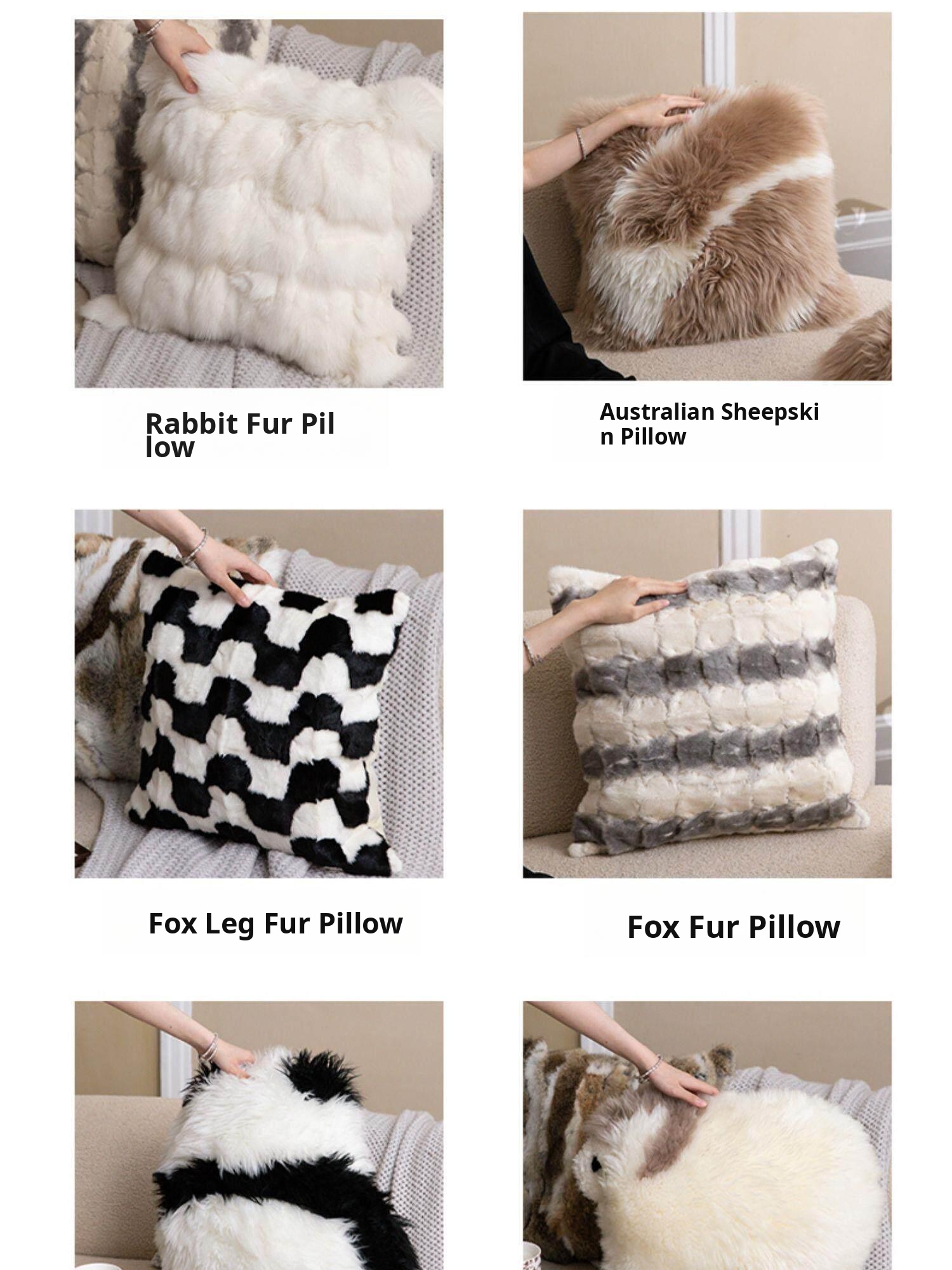 Modern Fox Fur Pillowcase - Luxurious Faux Fur Cushion Cover for Living Room Sofa, Elegant Bedroom Accent, Perfect for Master Suite and Showroom Decor.