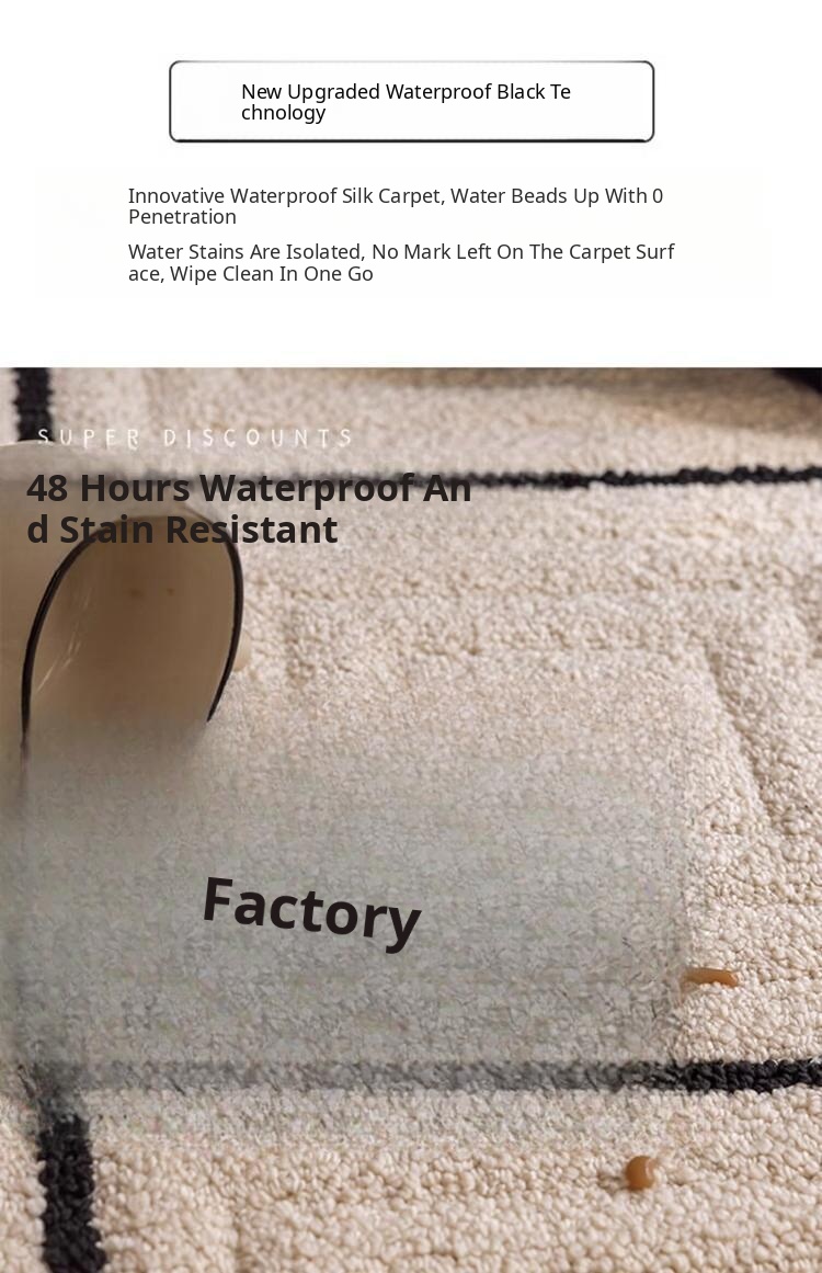 Modern Minimalist Living Room Carpet - Waterproof, Stain-Resistant, Thickened Soundproof Area Rug for Sofa, Coffee Table, Bedroom, and Walk-in Closet