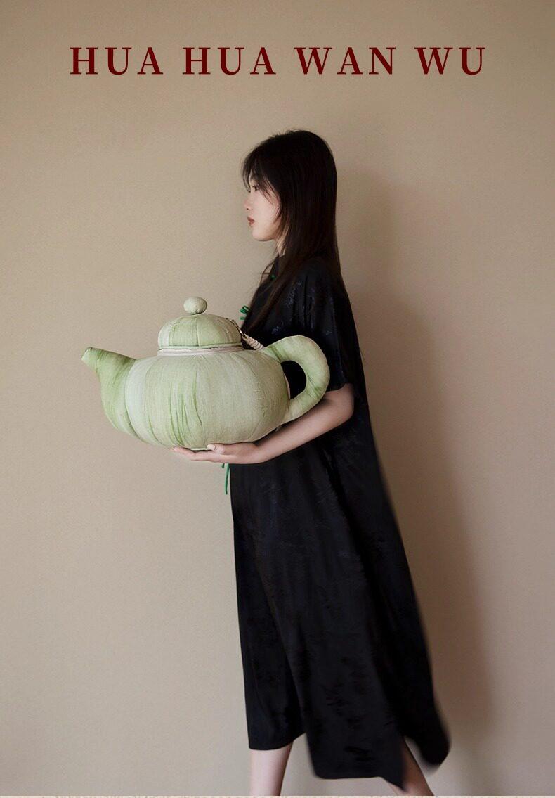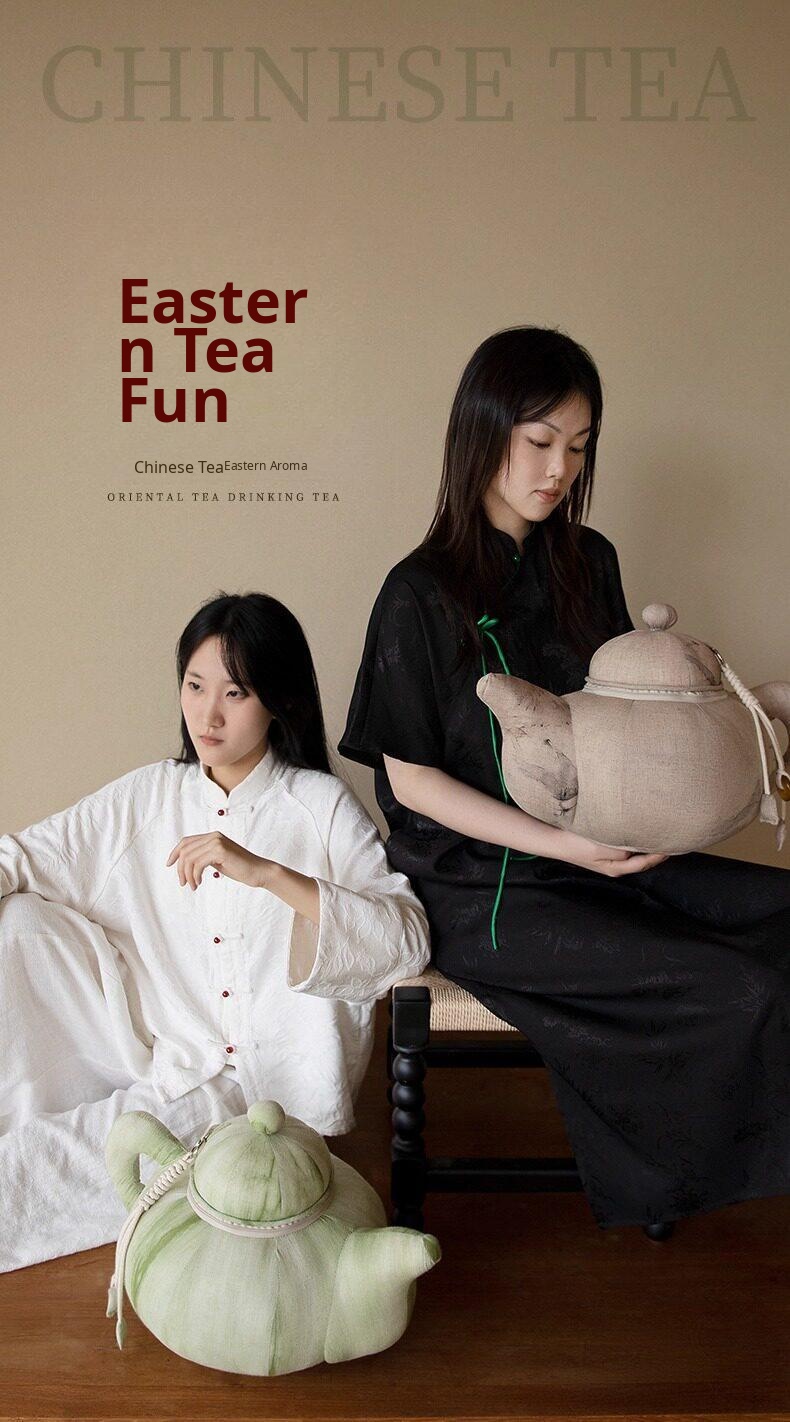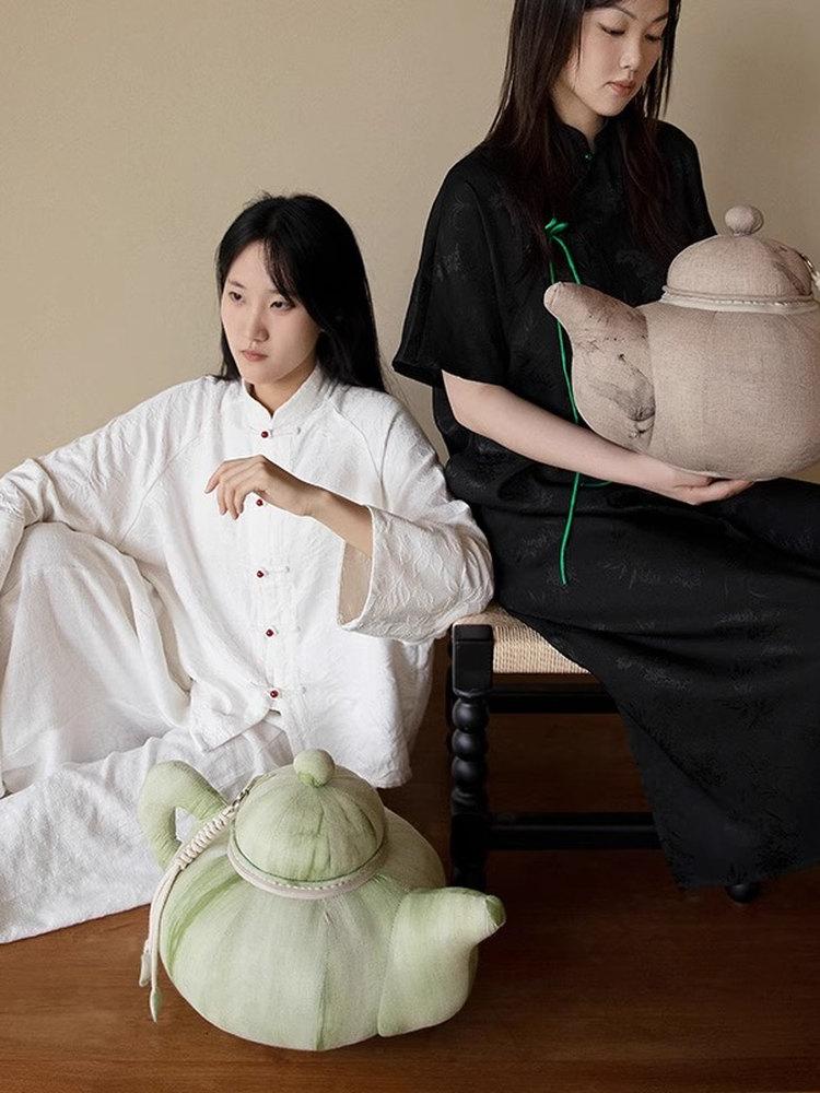 New Chinese Style Small Teapot Pillow - Decorative Cushion for Living Room Sofa, Featuring Song Dynasty Eastern Aesthetics, Unique Shaped Accent Pillow, Perfect for Home Decor