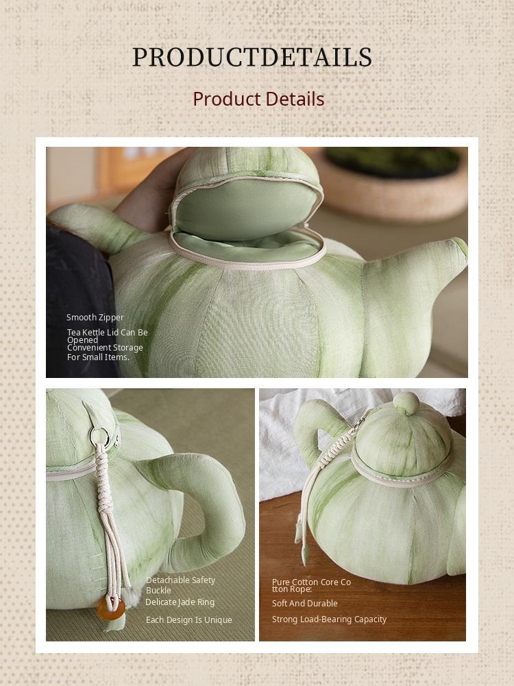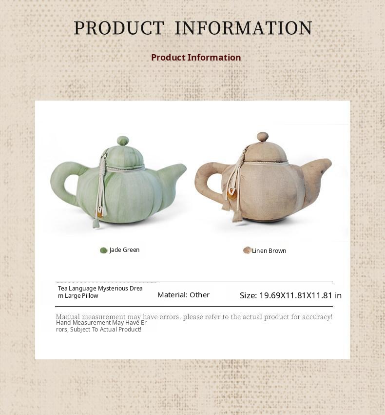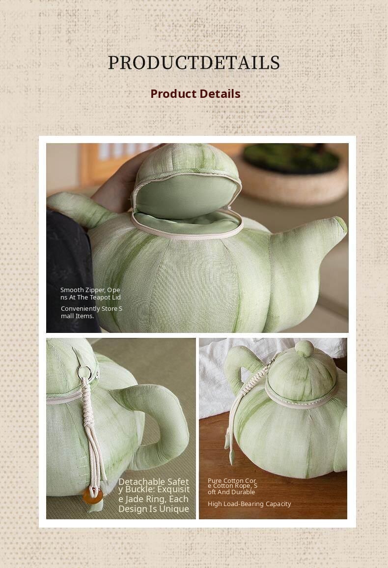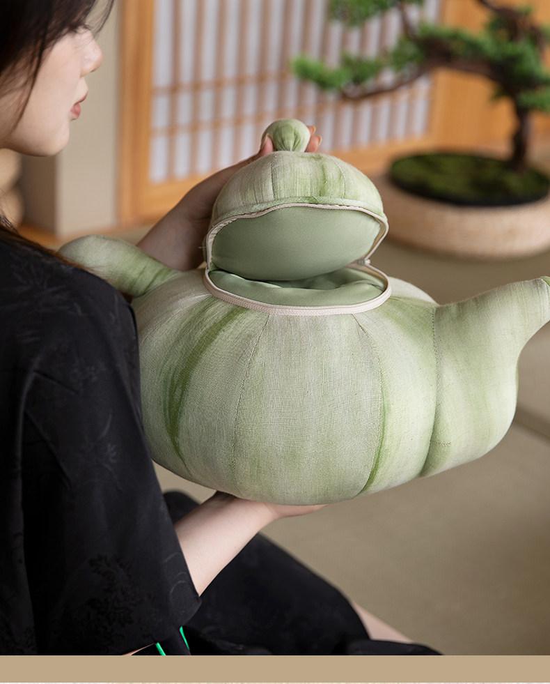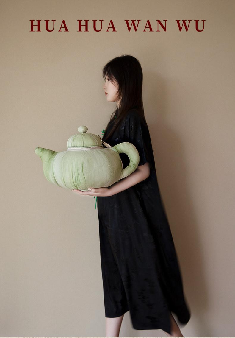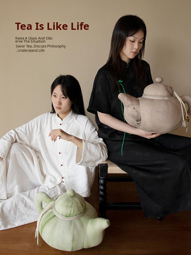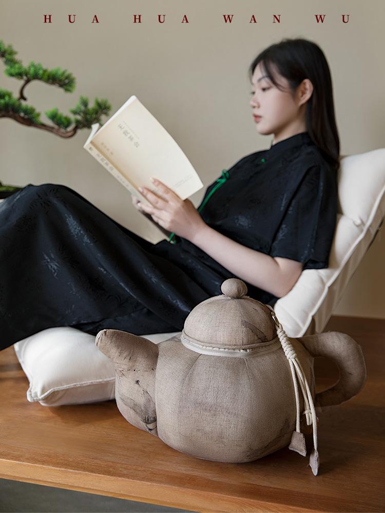 New Chinese Style Teapot Pillow - Elegant Sofa Decoration for Tea Culture, Unique Shaped Cushion Inspired by Song Dynasty Aesthetics, Perfect for Living Room Ambiance