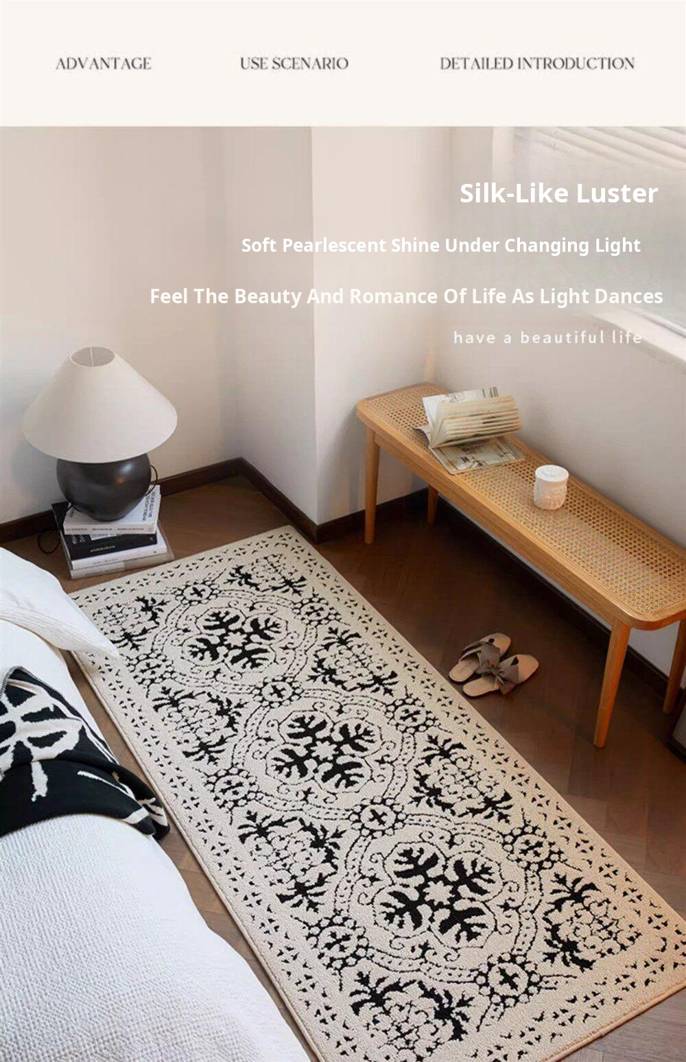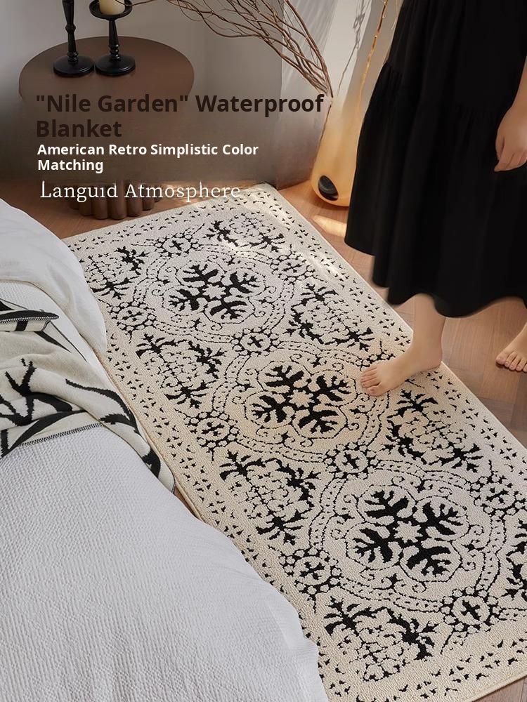 New Waterproof and Stain-Resistant Bedroom Bedside Rug - Vintage American Style Washable End-of-Bed Carpet, Perfect for Master Bedroom, Easy to Clean and Durable Mat.