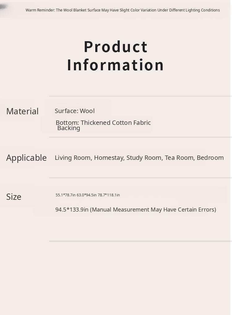 New Zealand Imported Wool Antibacterial Carpet - Modern Minimalist Sofa Throw for Living Room, Luxurious Area Rug for Bedroom and Cloakroom