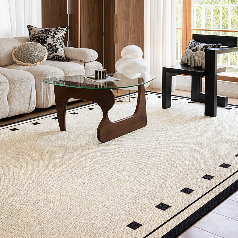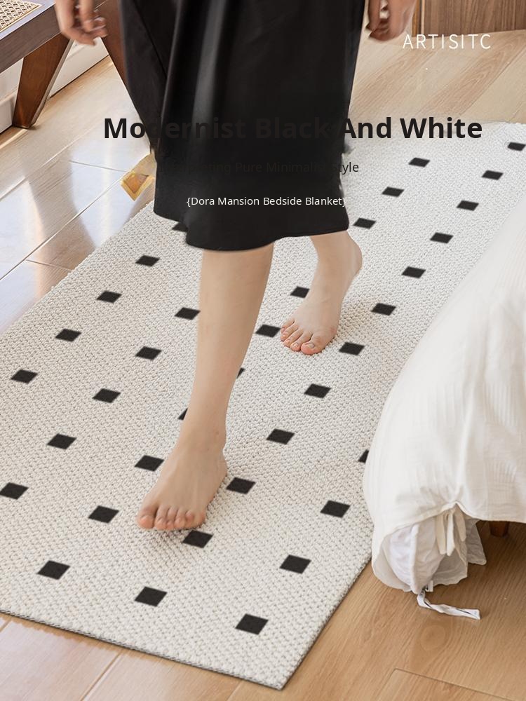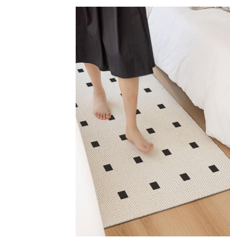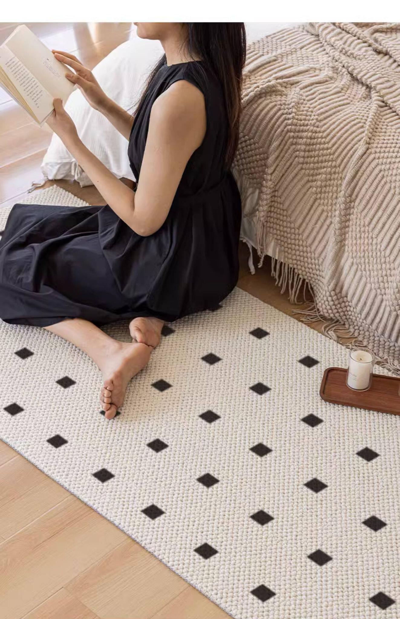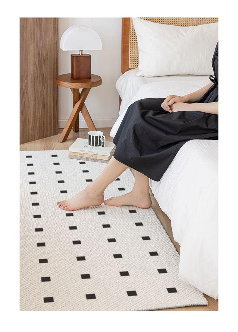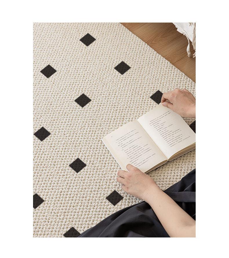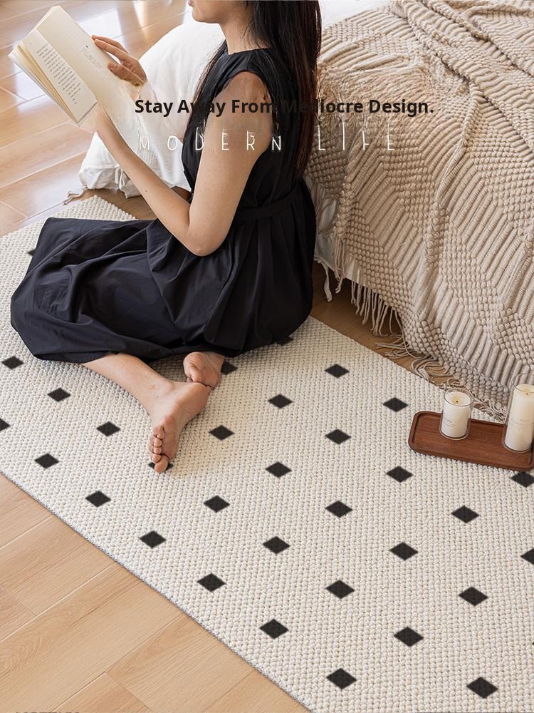 New Zealand Imported Wool Bedside Carpet - French Cream Style Luxury Area Rug for Bedroom - Elegant Throw Blanket for Bed End