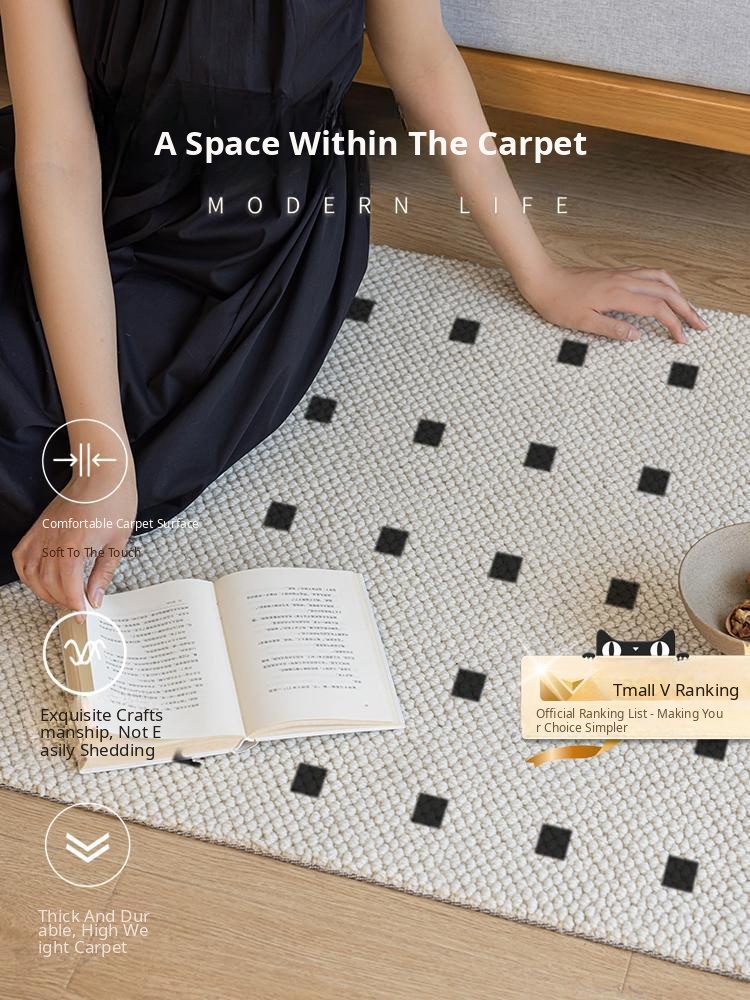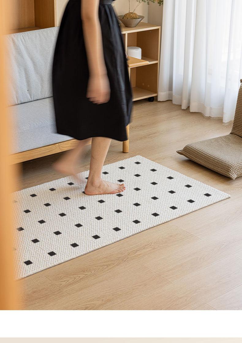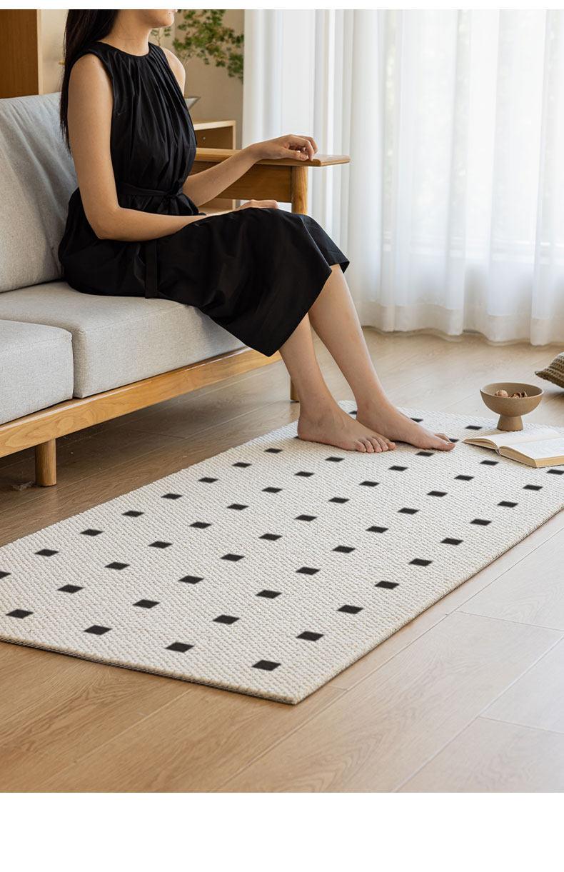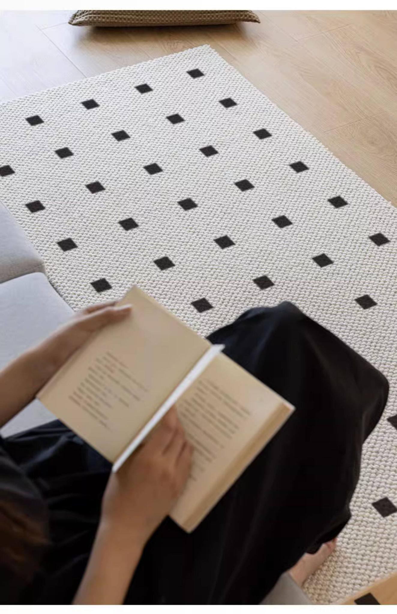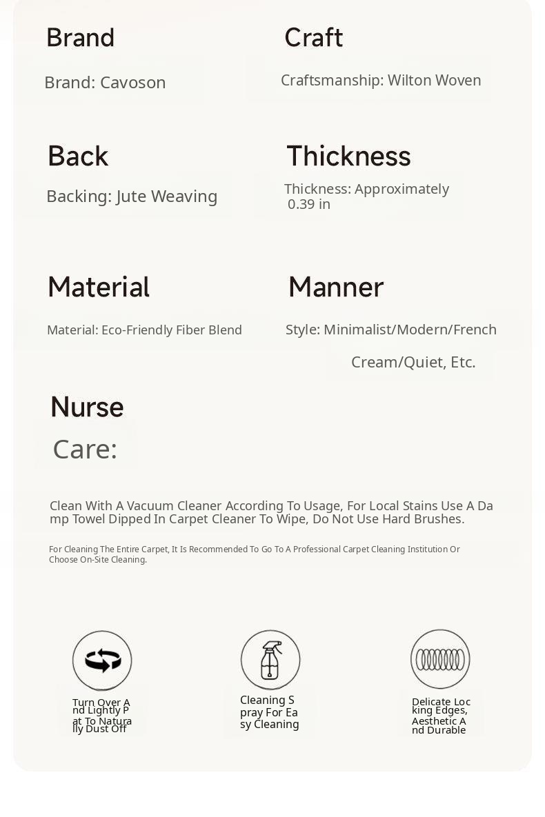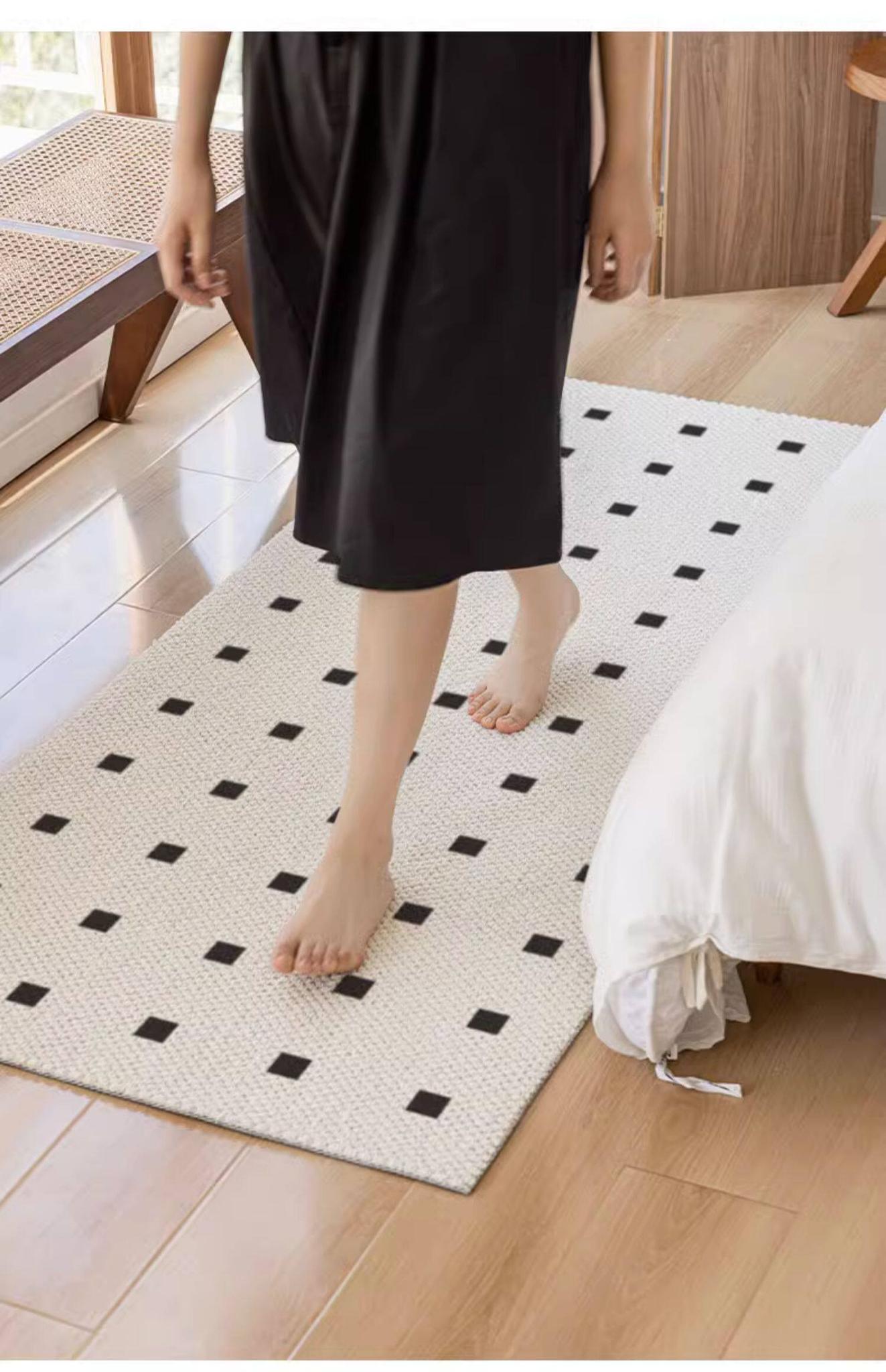New Zealand Imported Wool Bedside Carpet - French Cream Style Luxury Area Rug for Bedroom - Elegant Throw Blanket for Bed End