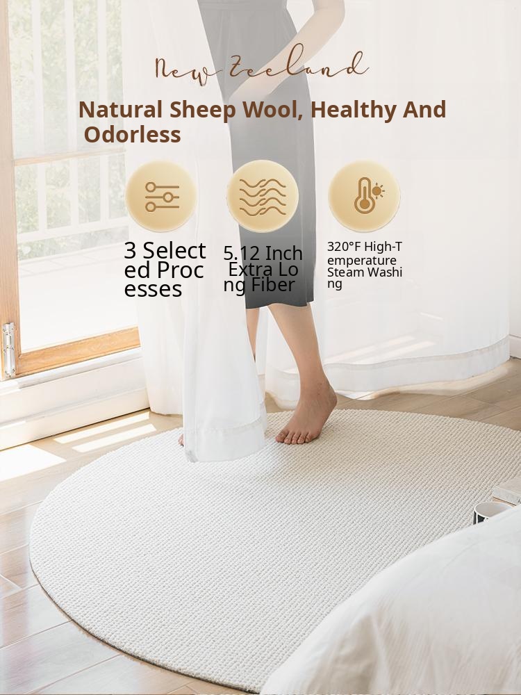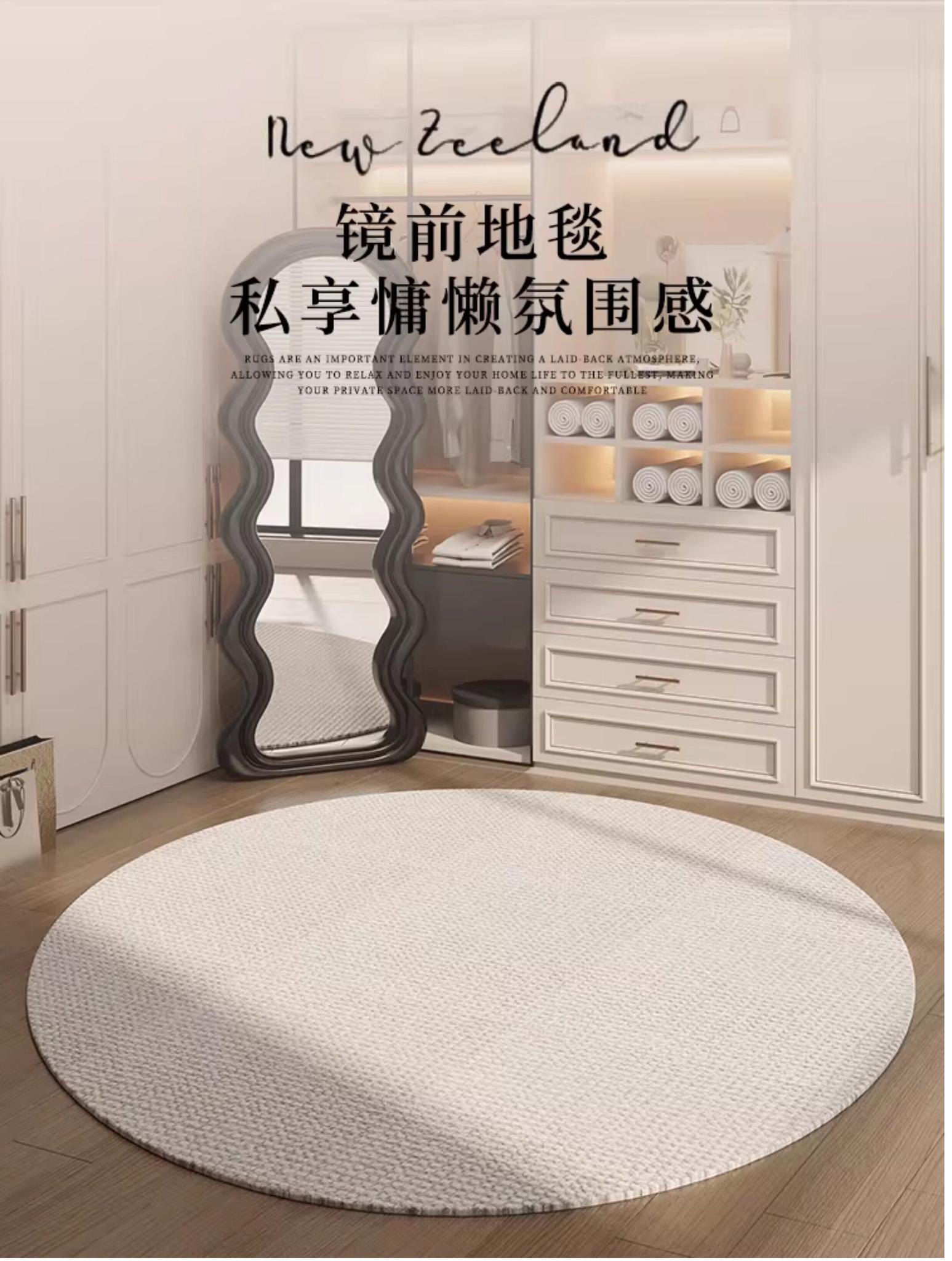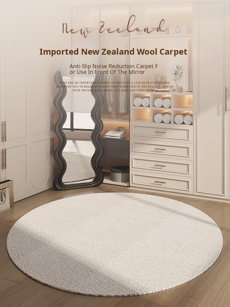 New Zealand Imported Wool Cream Round Area Rug - Perfect for Your Bedroom, Living Room, or Dressing Room, Ideal for Full-Length Mirror and Cozy Atmosphere
