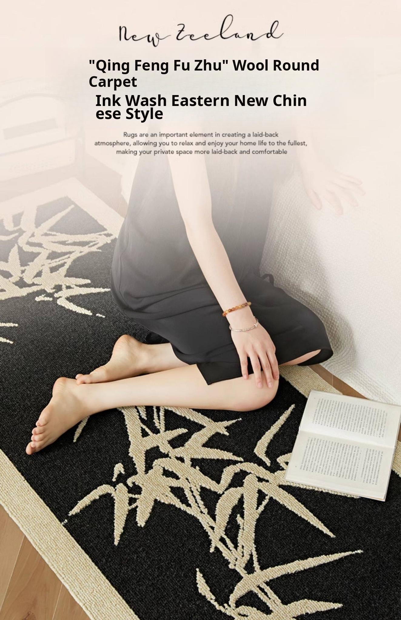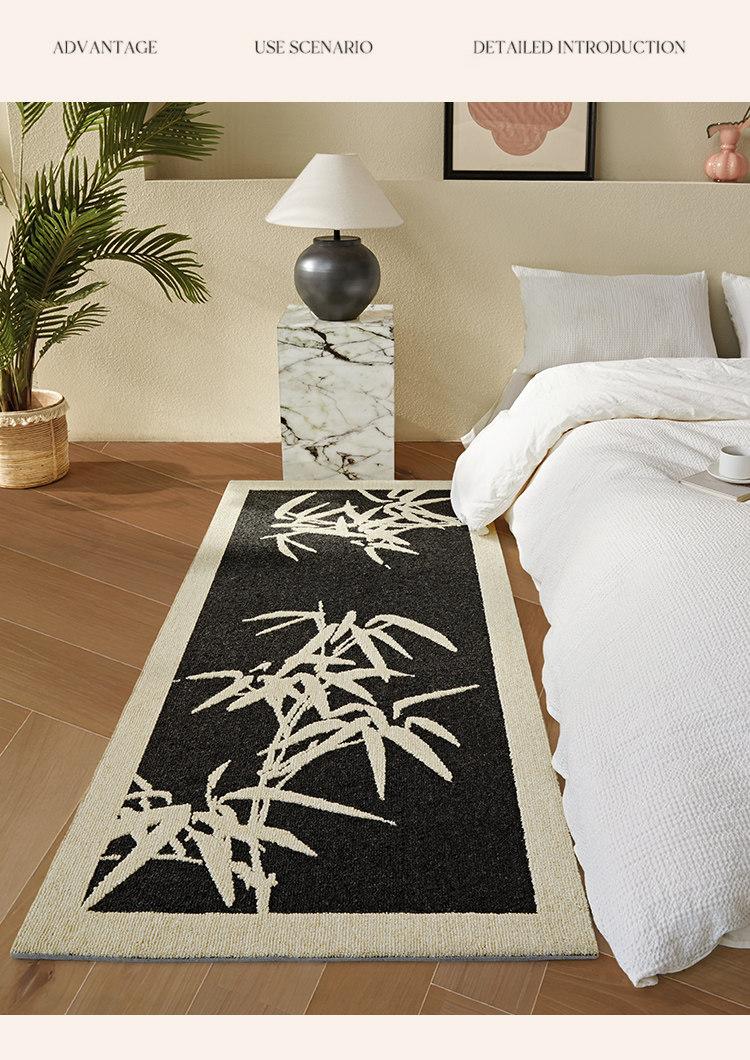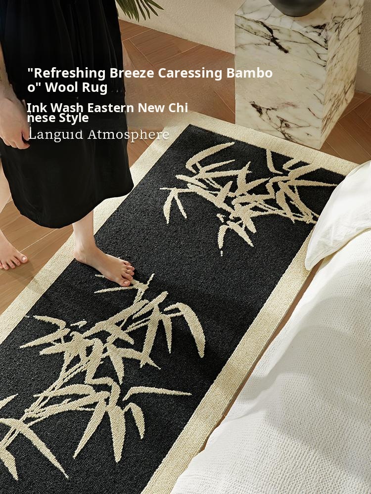 New Zealand Imported Wool Rug - Chinese Style Long Bedroom Runner, Ideal for Living Room & Master Bedroom, Stain-Resistant Floor Mat for Sofa & Bedside