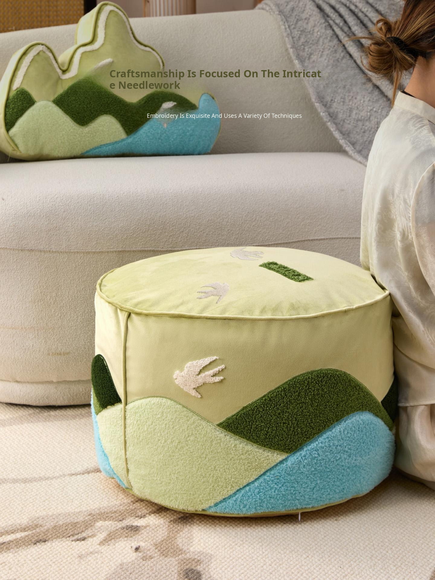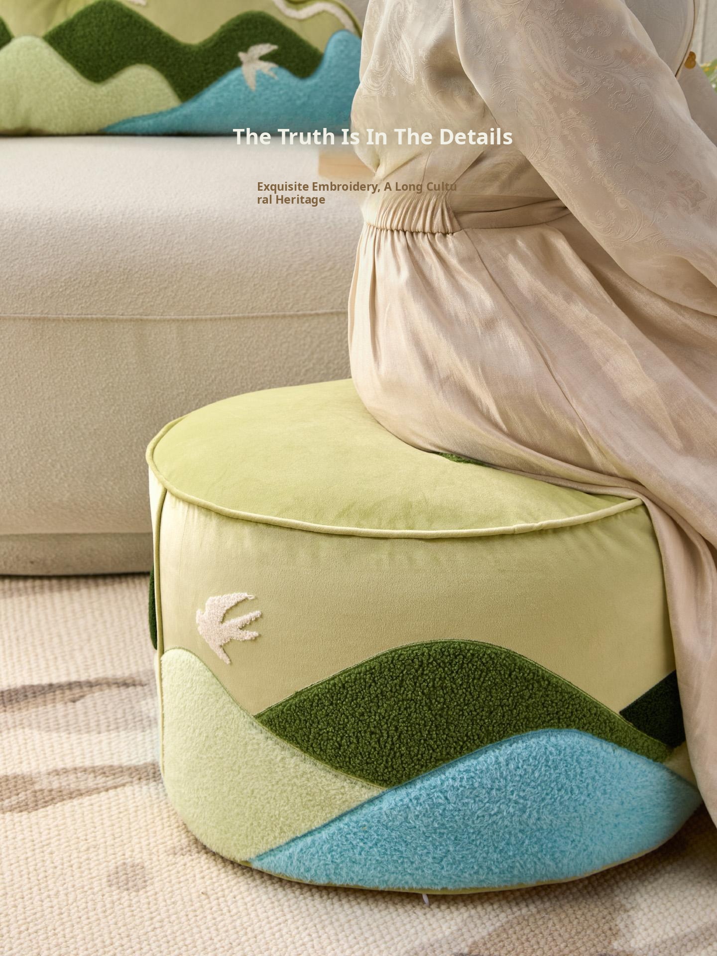 Premium Cultural Creative Floor Cushion Pillow Set – Versatile Embroidered Throw Pillows for Living Room Sofa, Lazy Lounge, and Tatami Style; Removable and Washable for Easy Care.