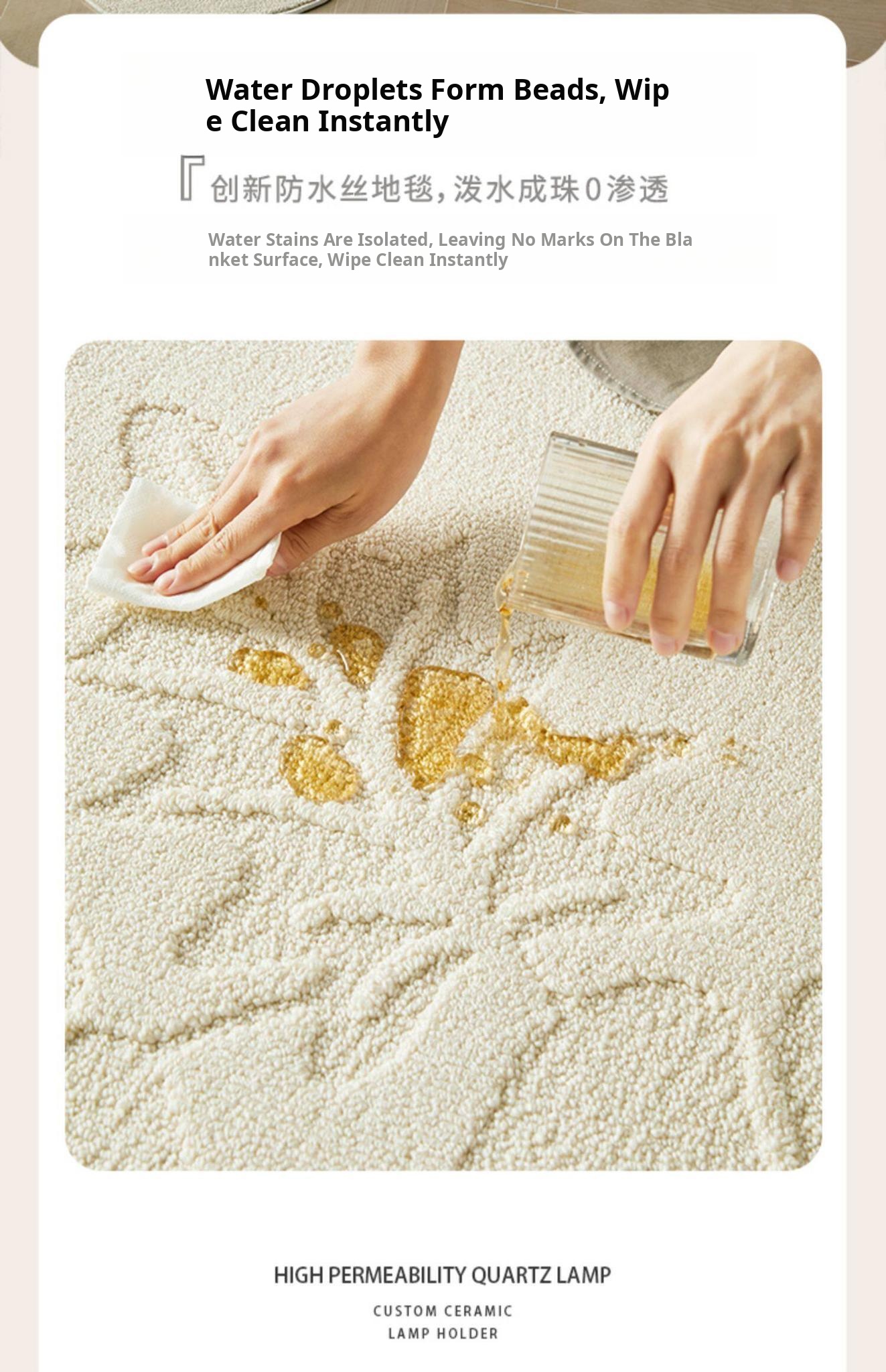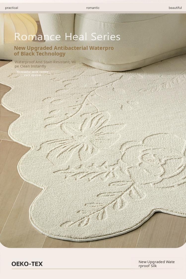 Stain-Resistant, No-Wipe, Waterproof Carpet for Bedroom and Living Room - Unique French Vintage Style, Antibacterial and Dirt-Repellent Sofa Mat