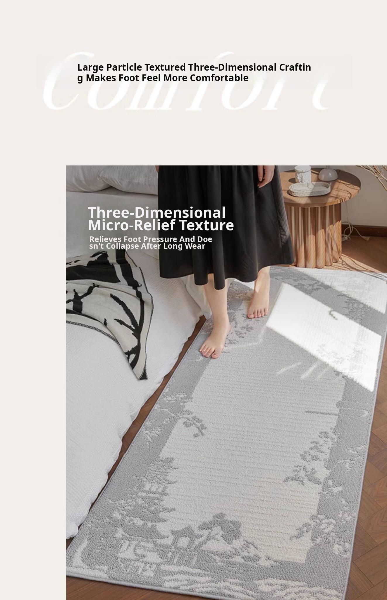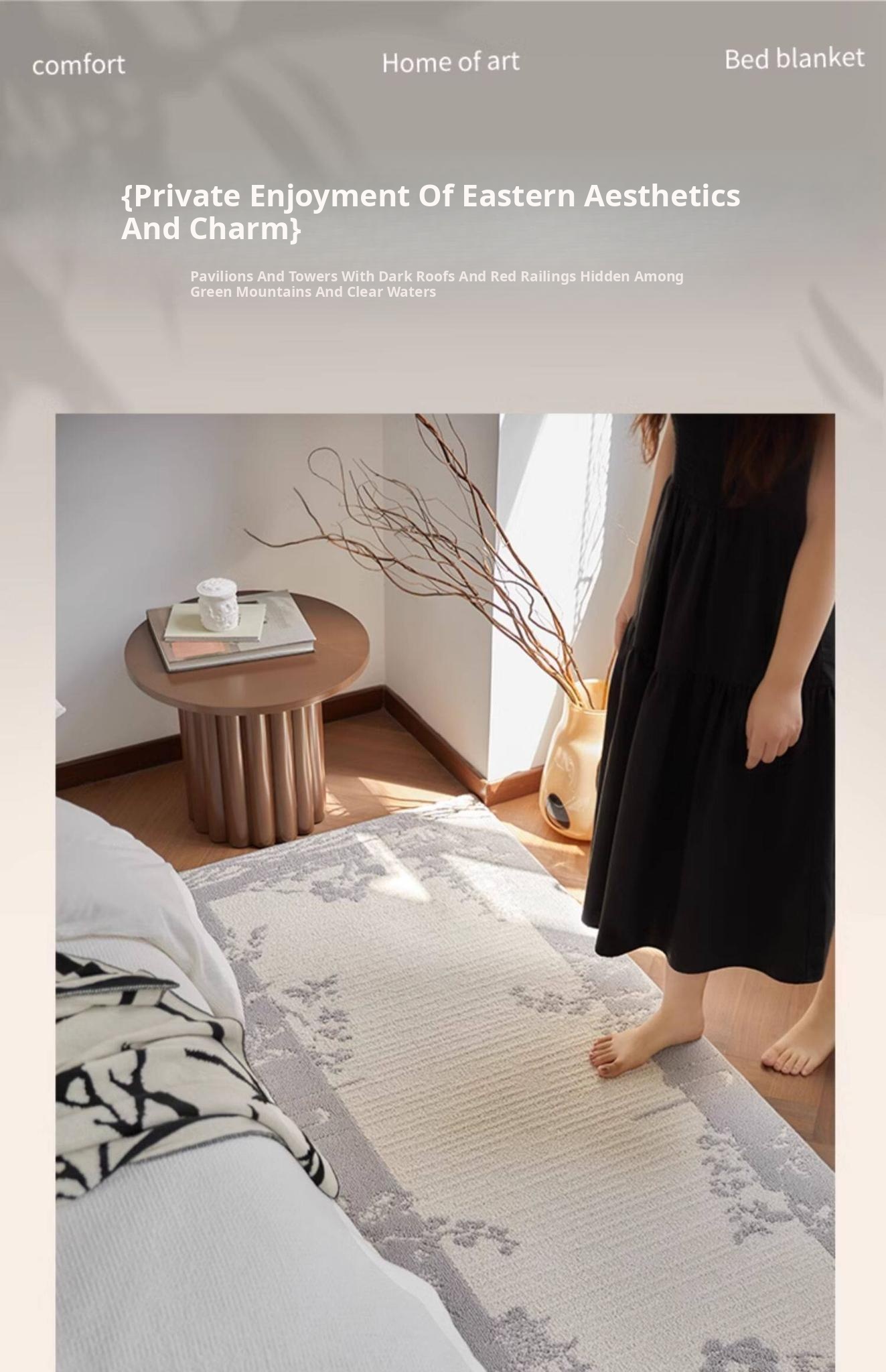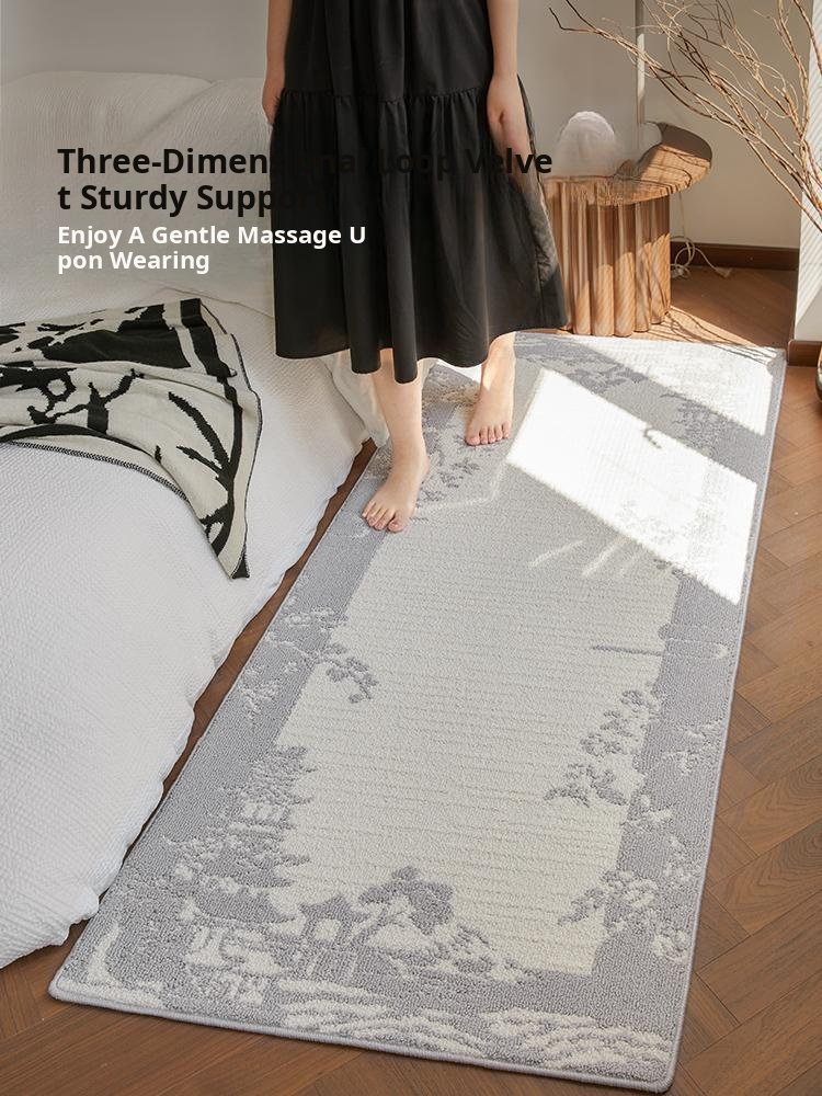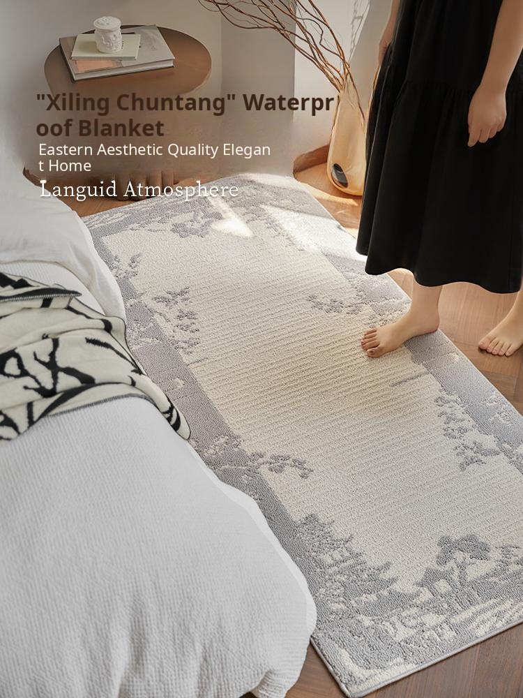 Stylish and Easy-Clean Chinese Minimalist Bedside Runner Rug - Stain-Resistant, No-Wash Sofa Mat for Bedroom Décor