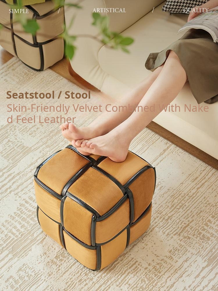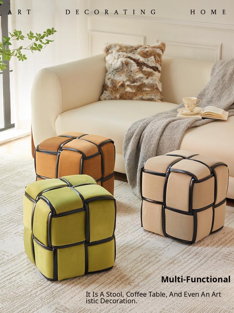 Stylish French-Style Floor Cushion - Versatile Sofa Pouf for Living Room, Lazy Chair, Tatami Square Stool, Perfect for Shoe Changing and Relaxation