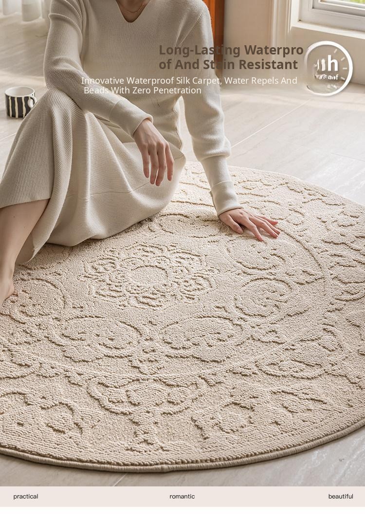 Wabi-Sabi Inspired Round Living Room Rug - Waterproof and Stain-Resistant Coffee Table & Sofa Blanket - Luxurious Yet Affordable Bedside Mat for Your Bedroom