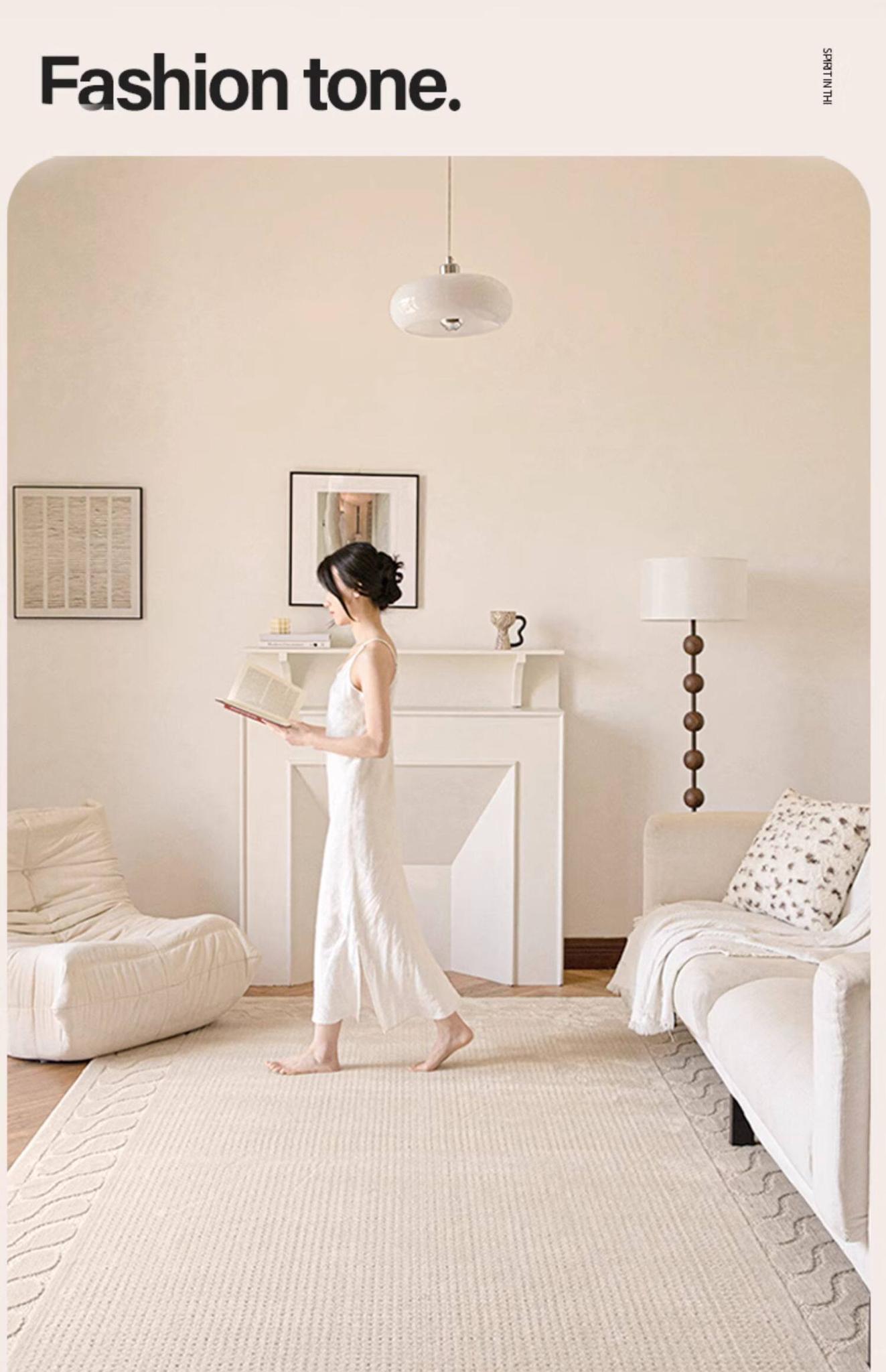 Waterproof and Stain-Resistant Living Room Carpet - Easy-Clean Wabi-Sabi Style Luxury Area Rug for Sofa - Minimalist Home Mat for Bedroom