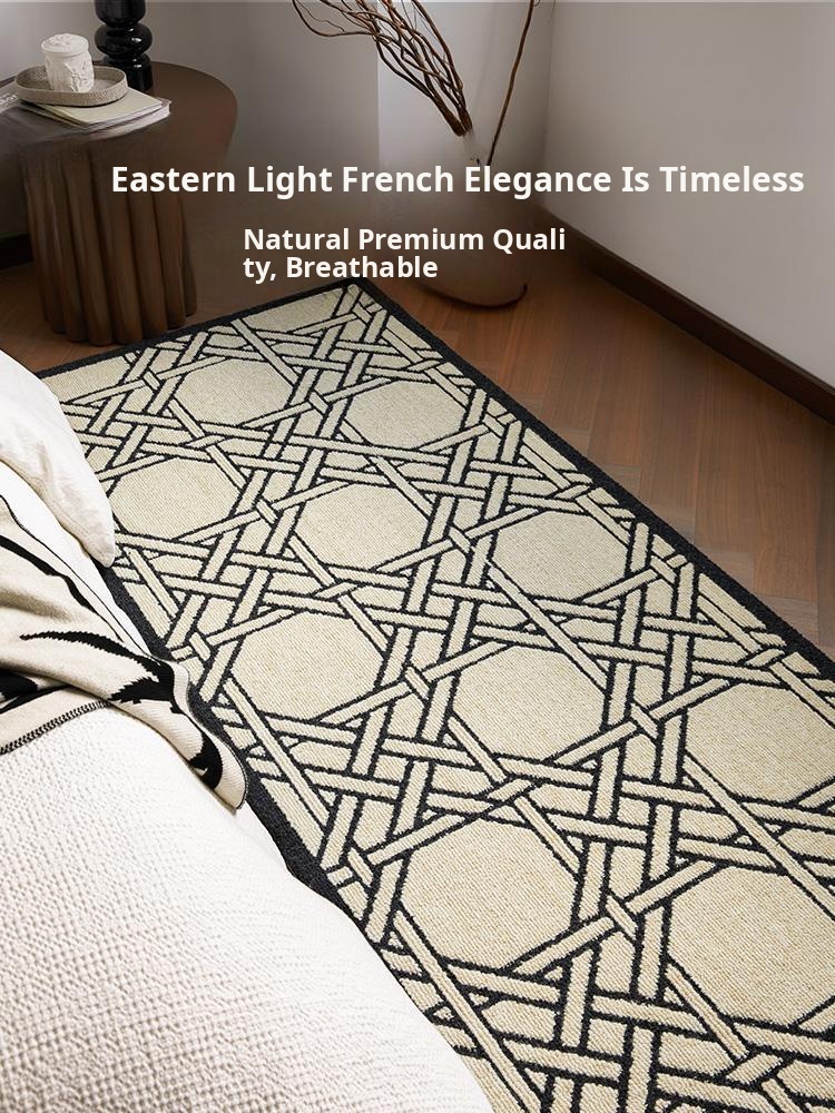 Stylish and Easy-Clean Chinese Minimalist Bedside Runner Rug - Stain-Resistant, No-Wash Sofa Mat for Bedroom Décor