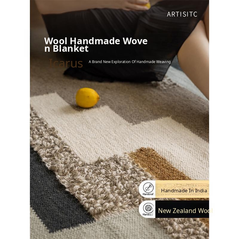 Imported New Zealand Wool Handwoven Glue-Free Rug - Nordic Light Luxury Style Living Room Mat & Bedroom Bedside Blanket