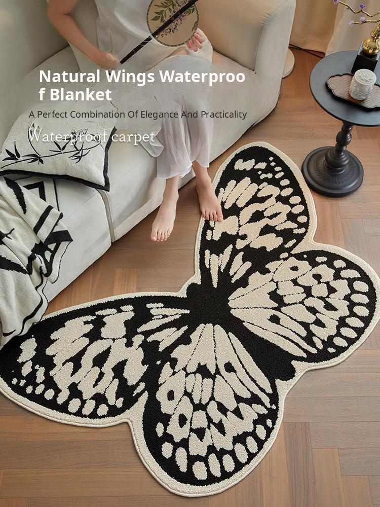 Elegant Black and White Butterfly Shaped Area Rug - Creamy Style, Waterproof and Stain-Resistant Carpet for Living Room and Bedroom, Perfect for Chairs and Floors