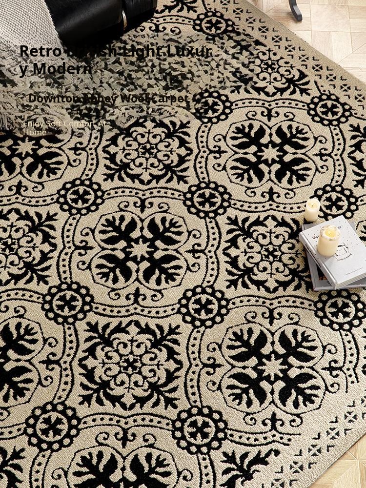 Luxury French Wool Area Rug - Chic Full Coverage for Living Room, Vintage American Style Bedroom, Wabi-Sabi Coffee Table Mat, Cozy Bedside Carpet