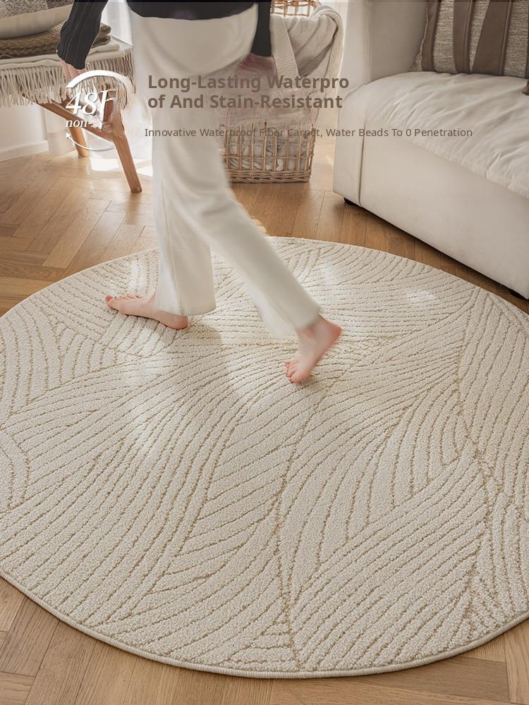 French Cream Style Living Room Rug - Round High-End Sofa Blanket with Water and Stain Resistance, Effortless Maintenance, Perfect for Tea Tables, Embracing Wabi-Sabi Aesthetics.