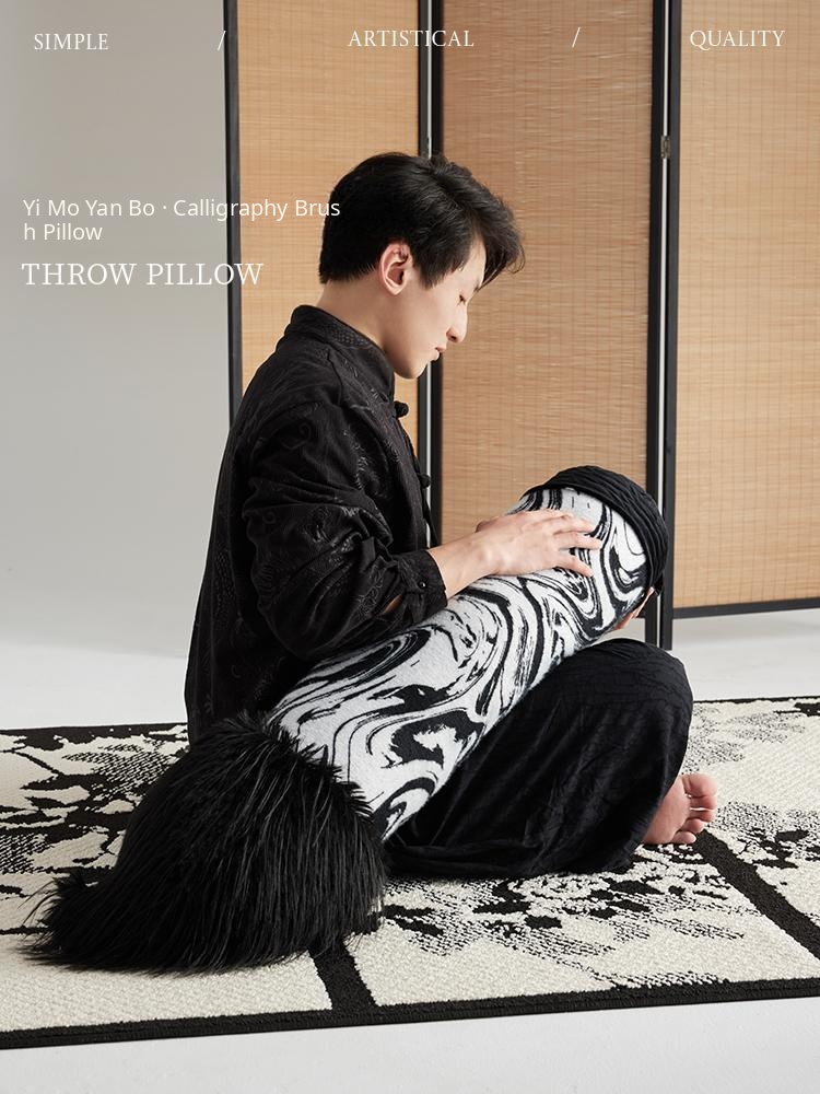 Vintage-Style Calligraphy Brush Pillow - Luxurious and Creative Cushion for Living Room, Bedroom, and Balcony - Elegant Long Sofa Throw Pillow for a Touch of Sophistication